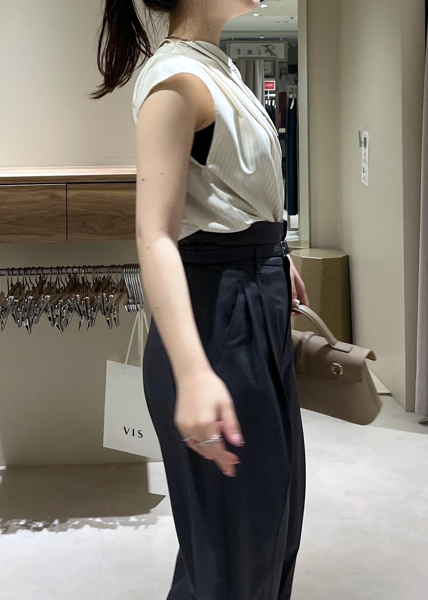 VIS【新色追加】【防シワ/接触冷感】ベルトディテールタックワイドスラックスパンツチャコール / SS¥6,589レビューワイドなシルエットが特徴なボトムス!
