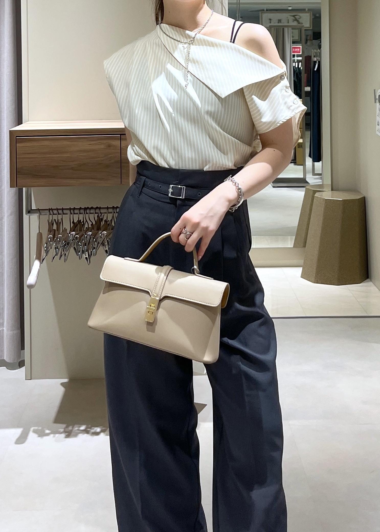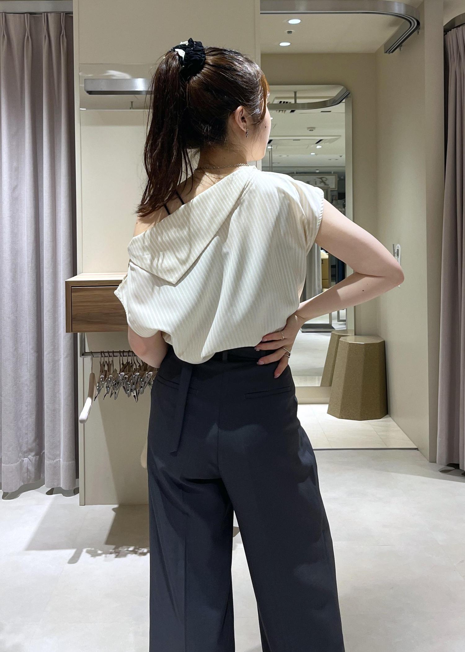 紐部分がアシンメトリーなデザインになるので、デコルテ周りがあいているトップスを着ても可愛いなと思いました☺︎ -
