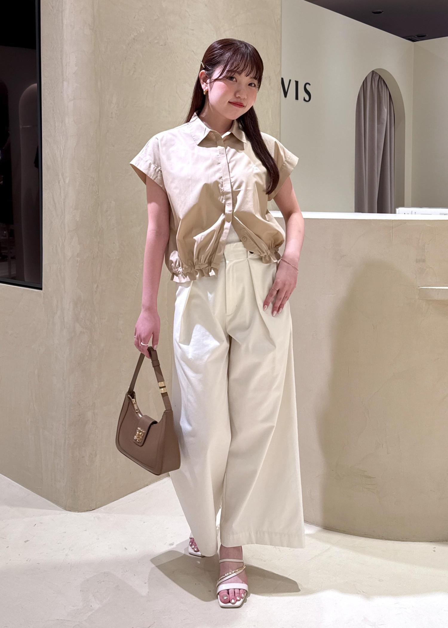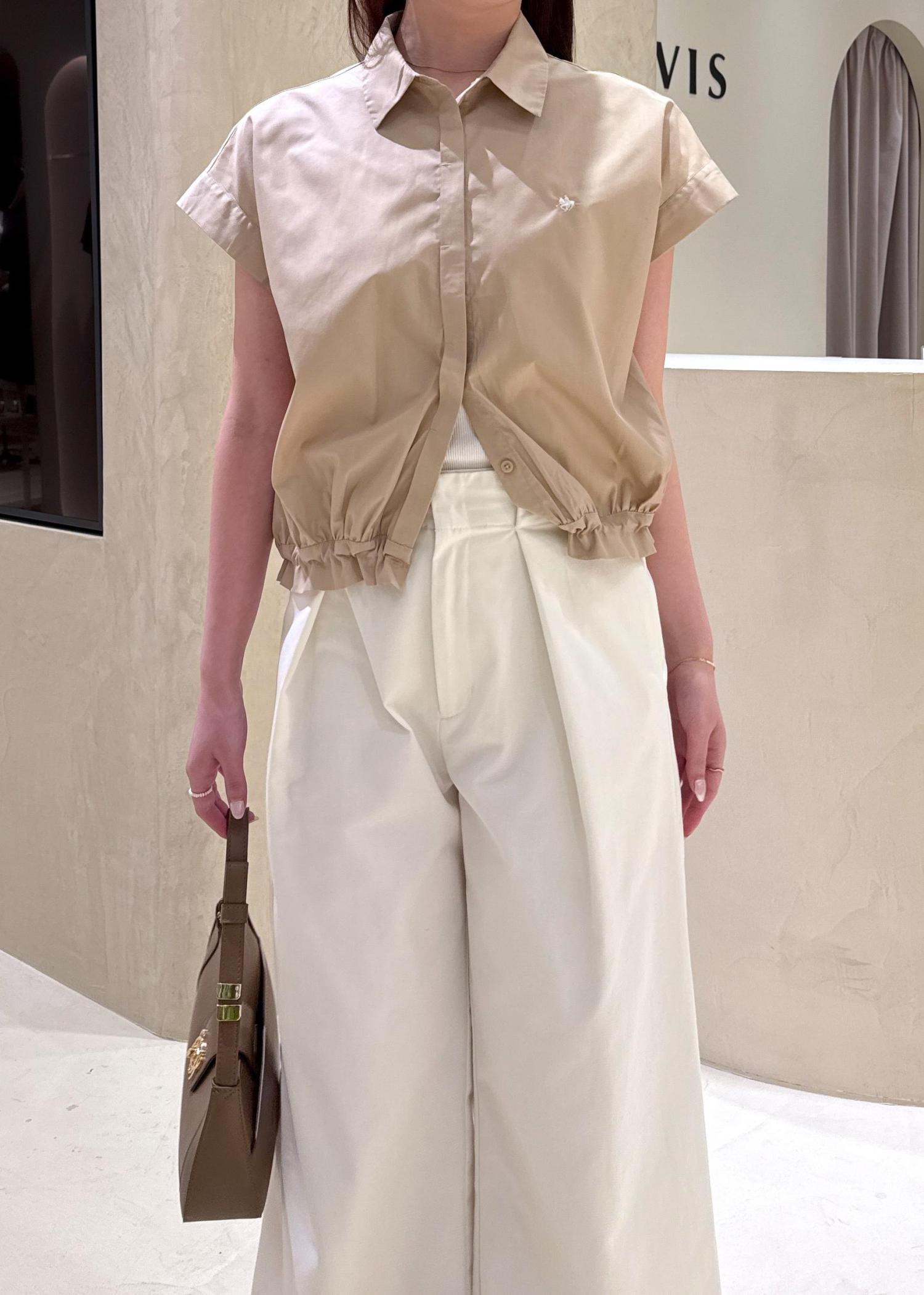 サラッとした素材感と袖周りにゆとりがあるので、通気性も良く夏にぴったりなフレンチスリーブシャツです◎