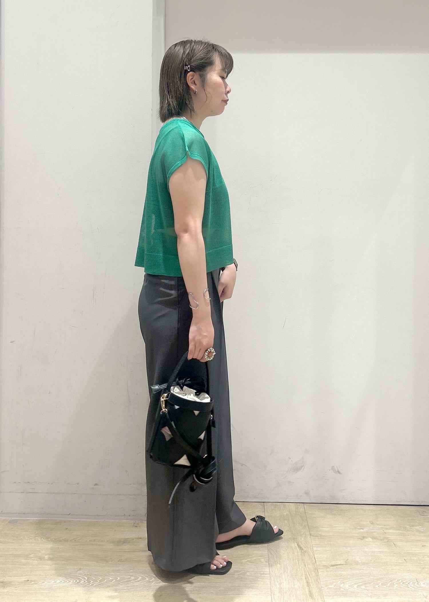 163cmでMサイズ着用で、足の甲にかかる着丈です。