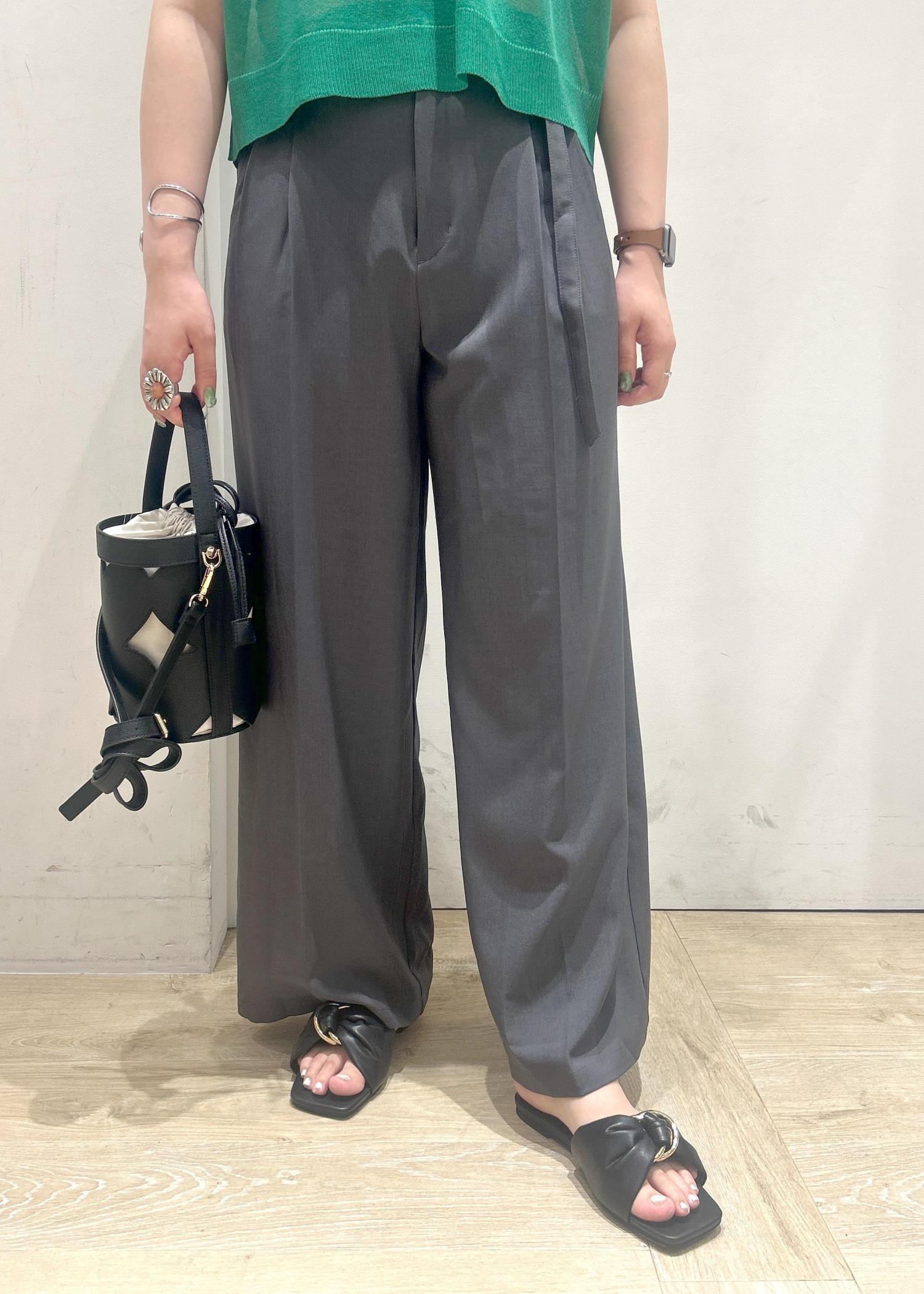 【新色追加】【防シワ/接触冷感】ベルトディテールタックワイドスラックスパンツ