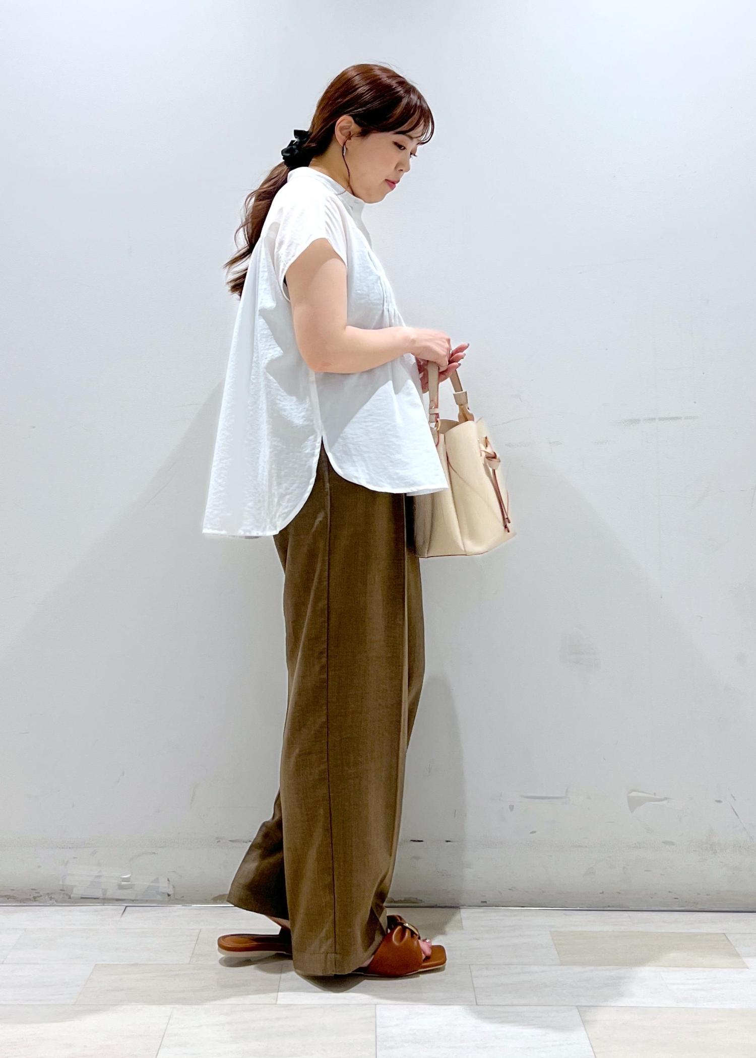 私は身長155㎝で今回Mサイズの着用で、少し着丈は長めですがこなれ感を出すためにこちらを着用しています。 -