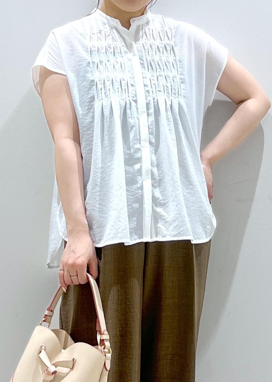 アウトレットVIS【接触冷感/洗える】気流染めスモッキングブラウスオフホワイト / F¥3,457レビューさらさらっと清涼感のある、VIS定番のおすすめブラウスです。
