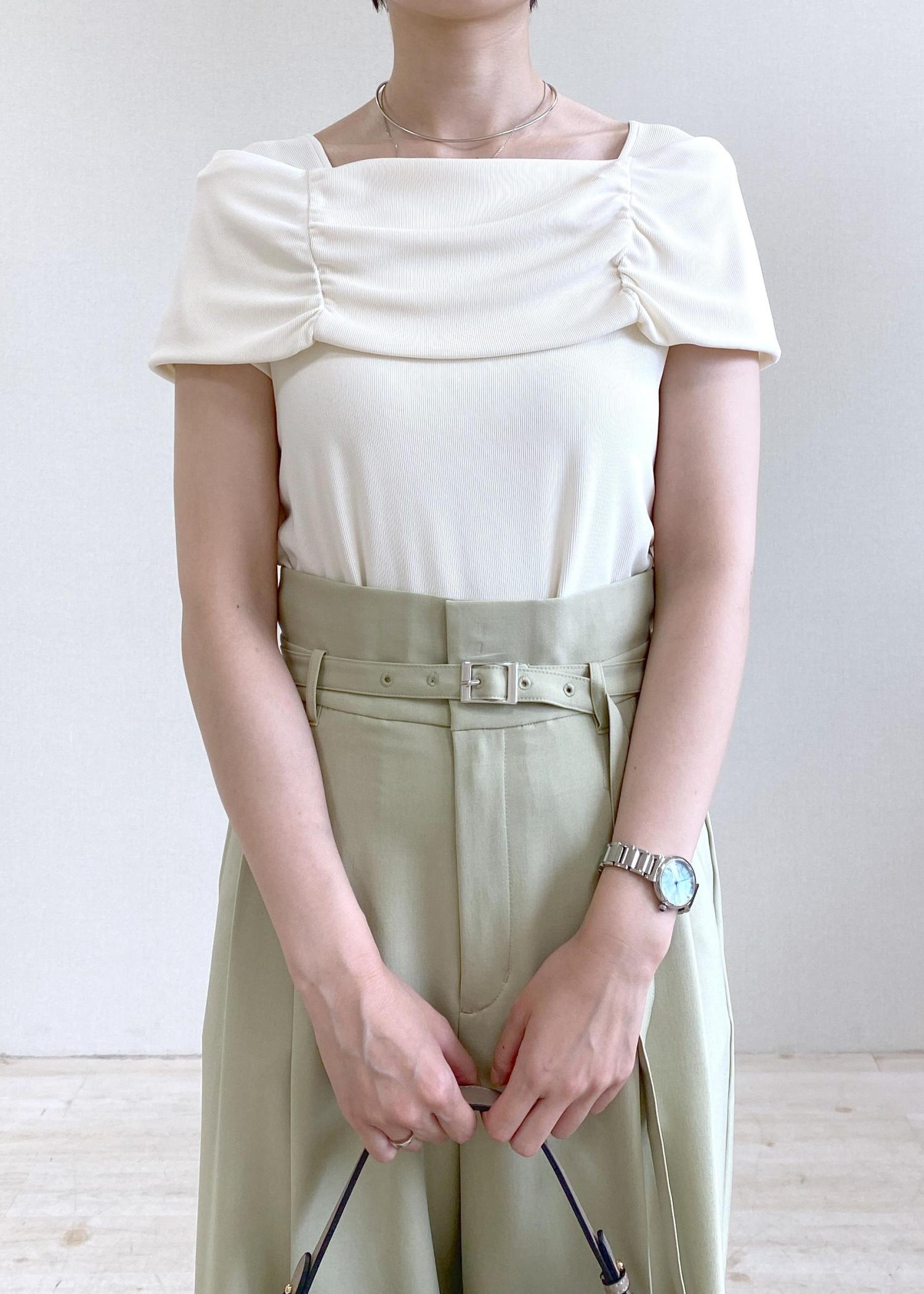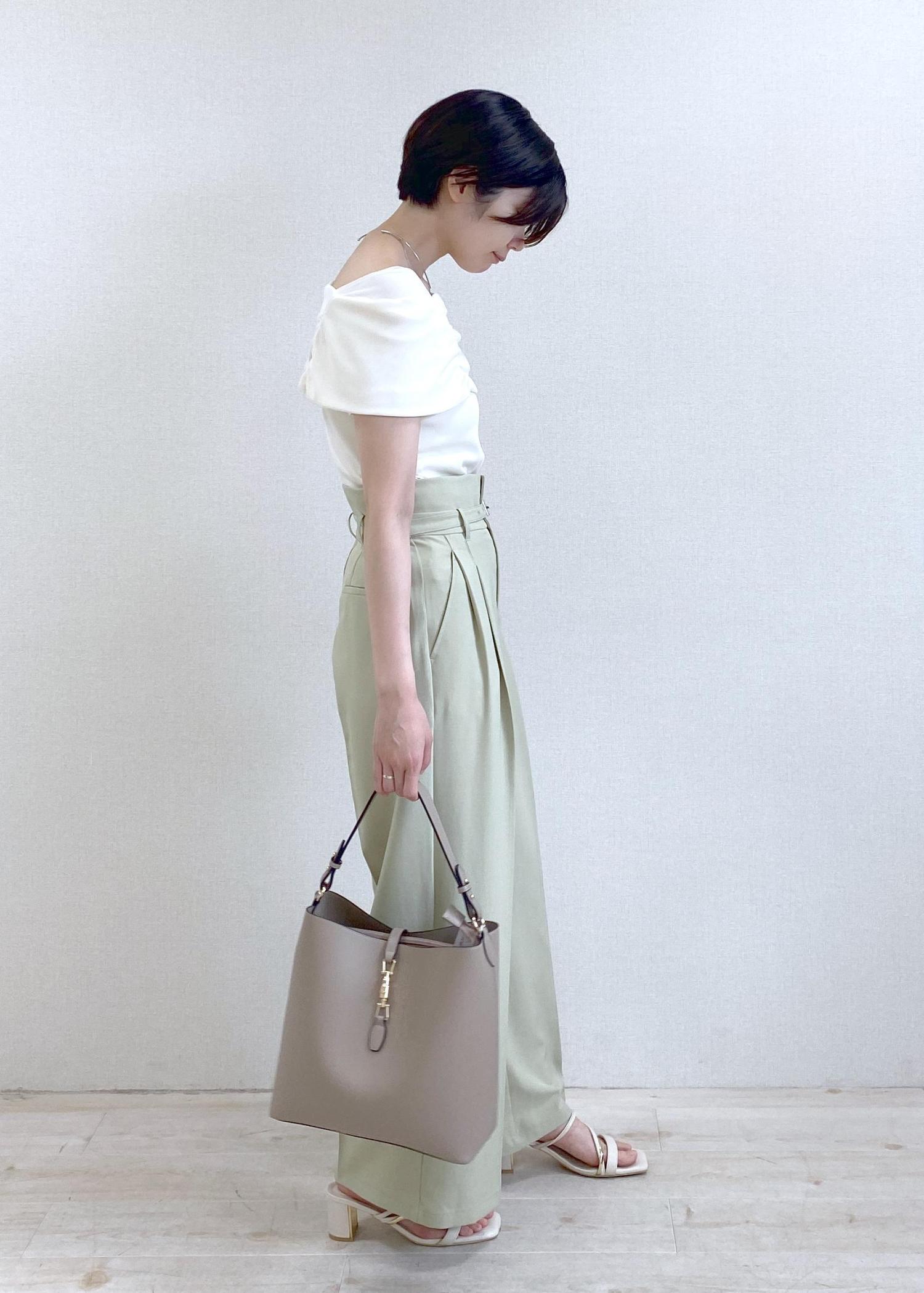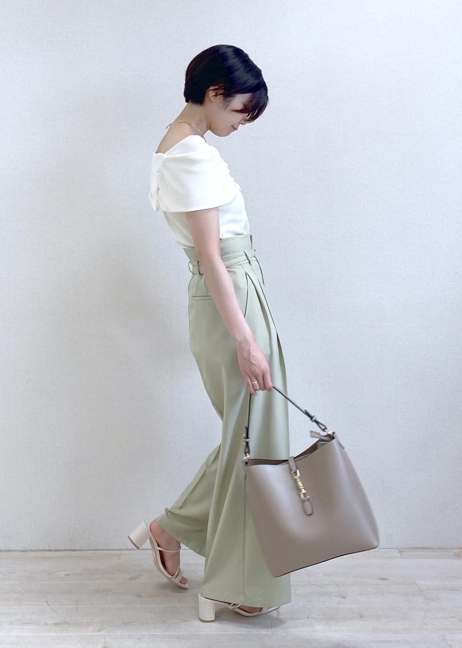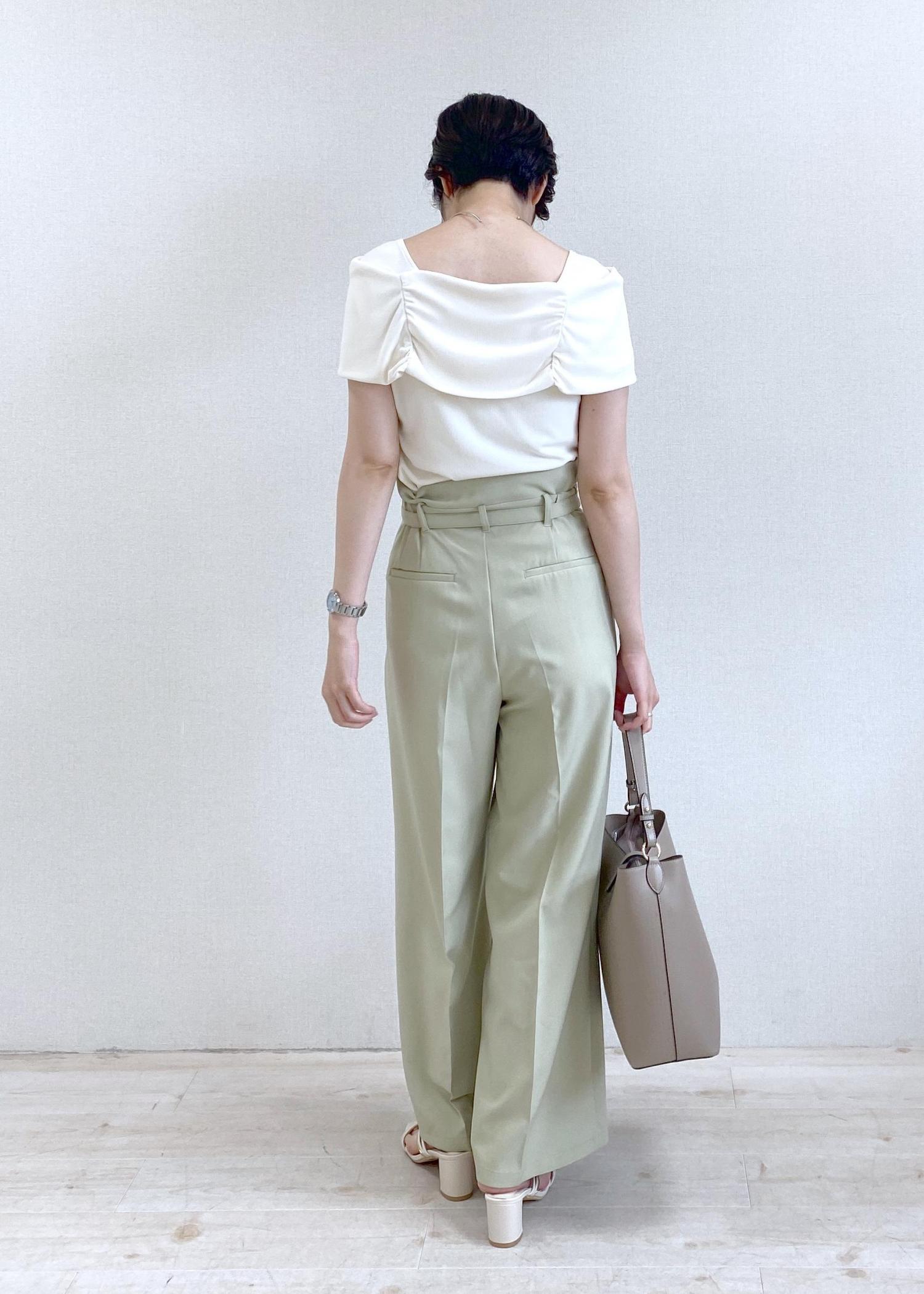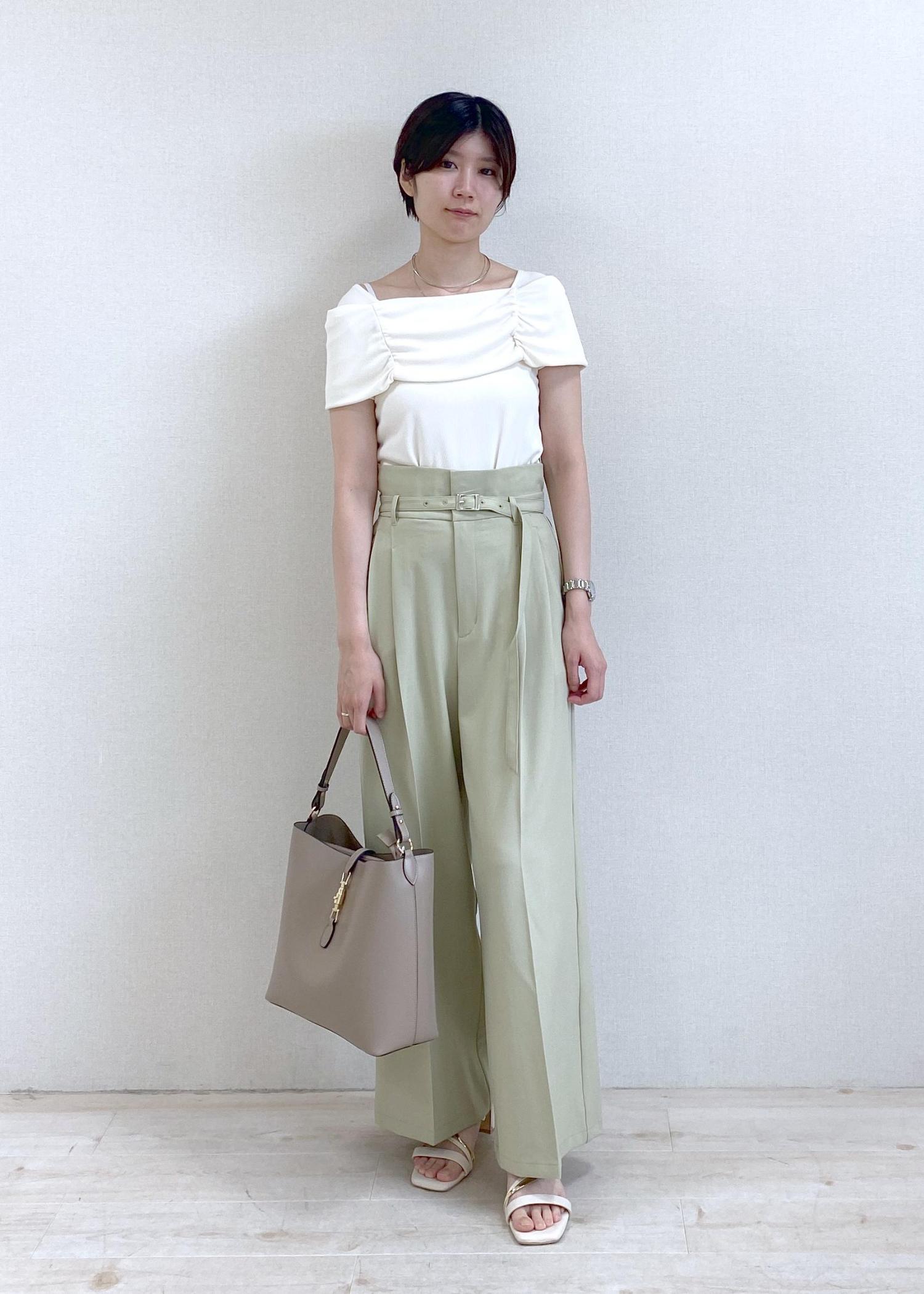 VIS【新色追加】【防シワ/接触冷感】ベルトディテールタックワイドスラックスパンツライトグリーン / S¥6,589レビューハイウエストでタックもあり美脚見えします。