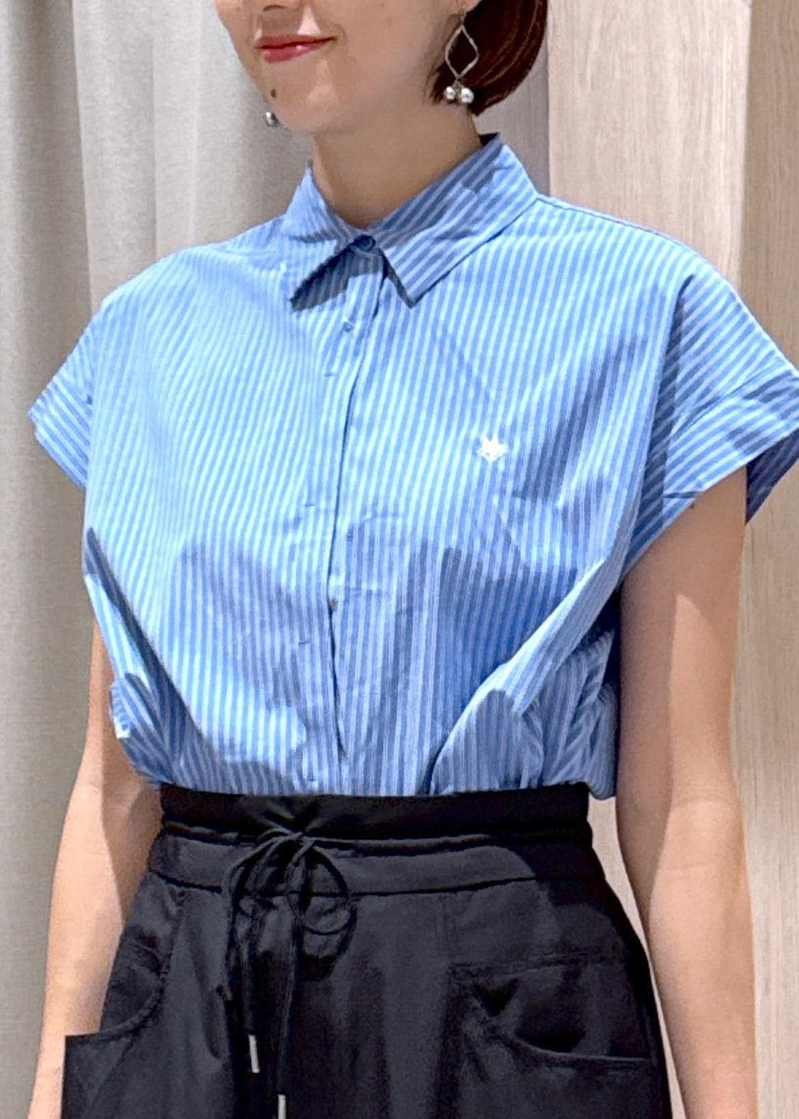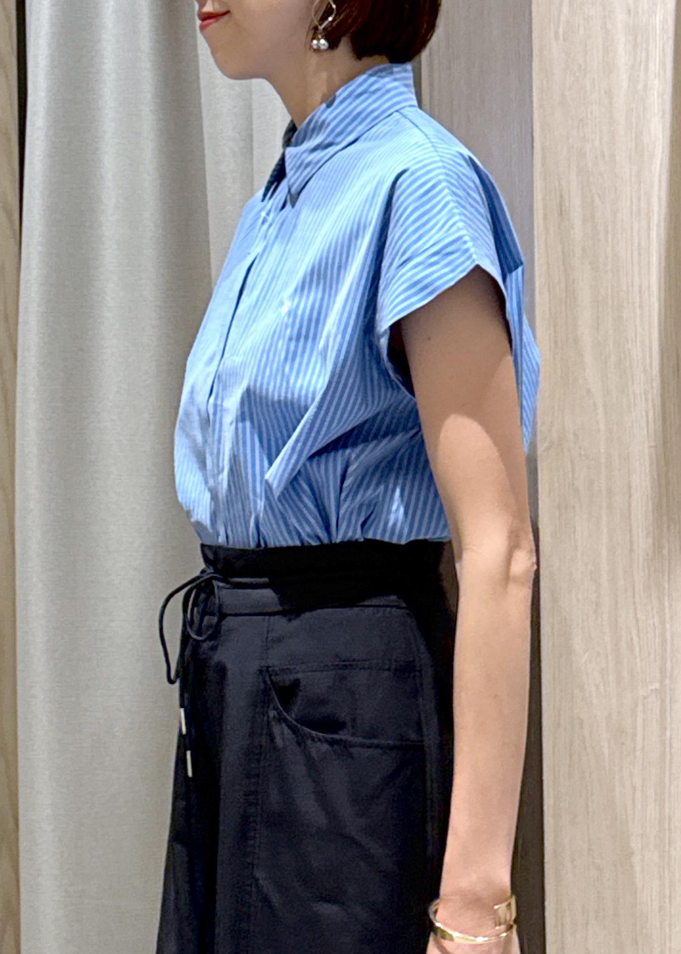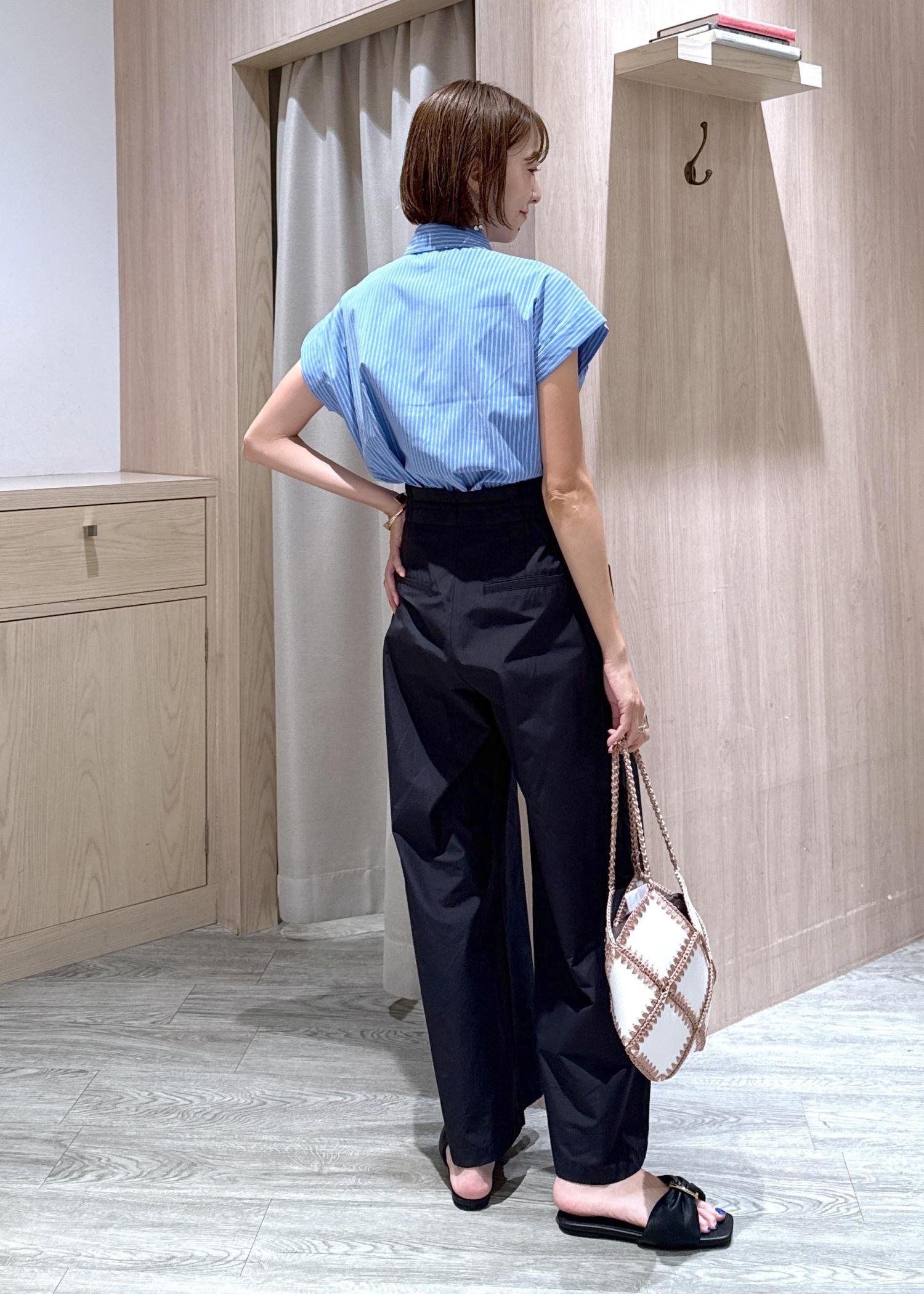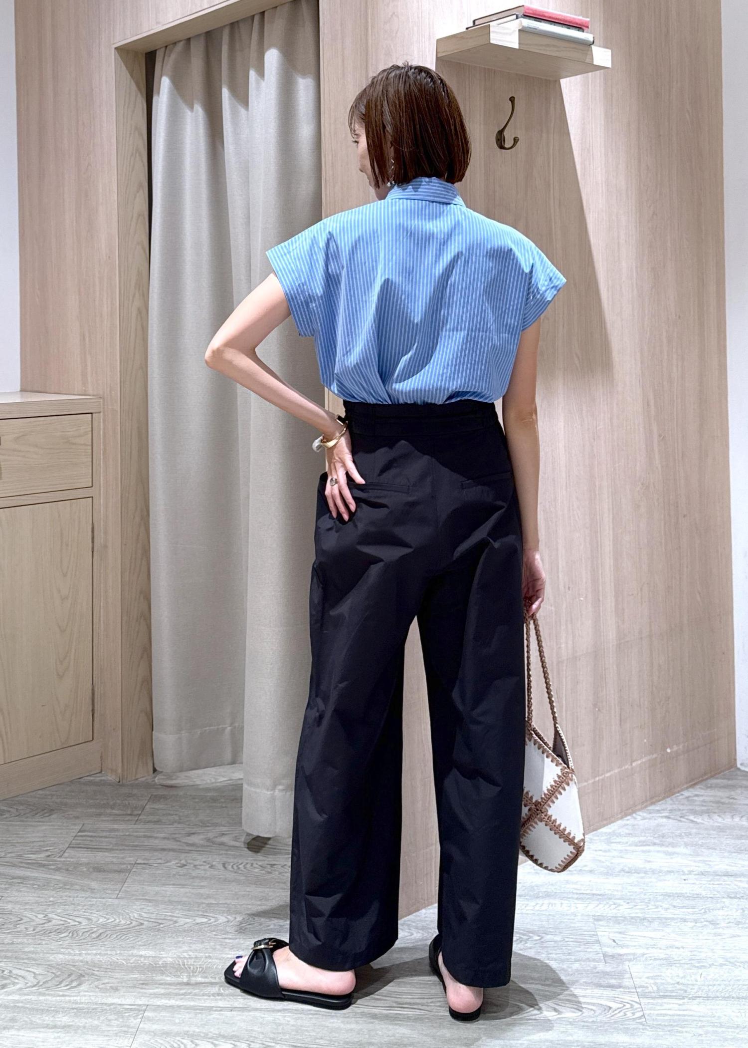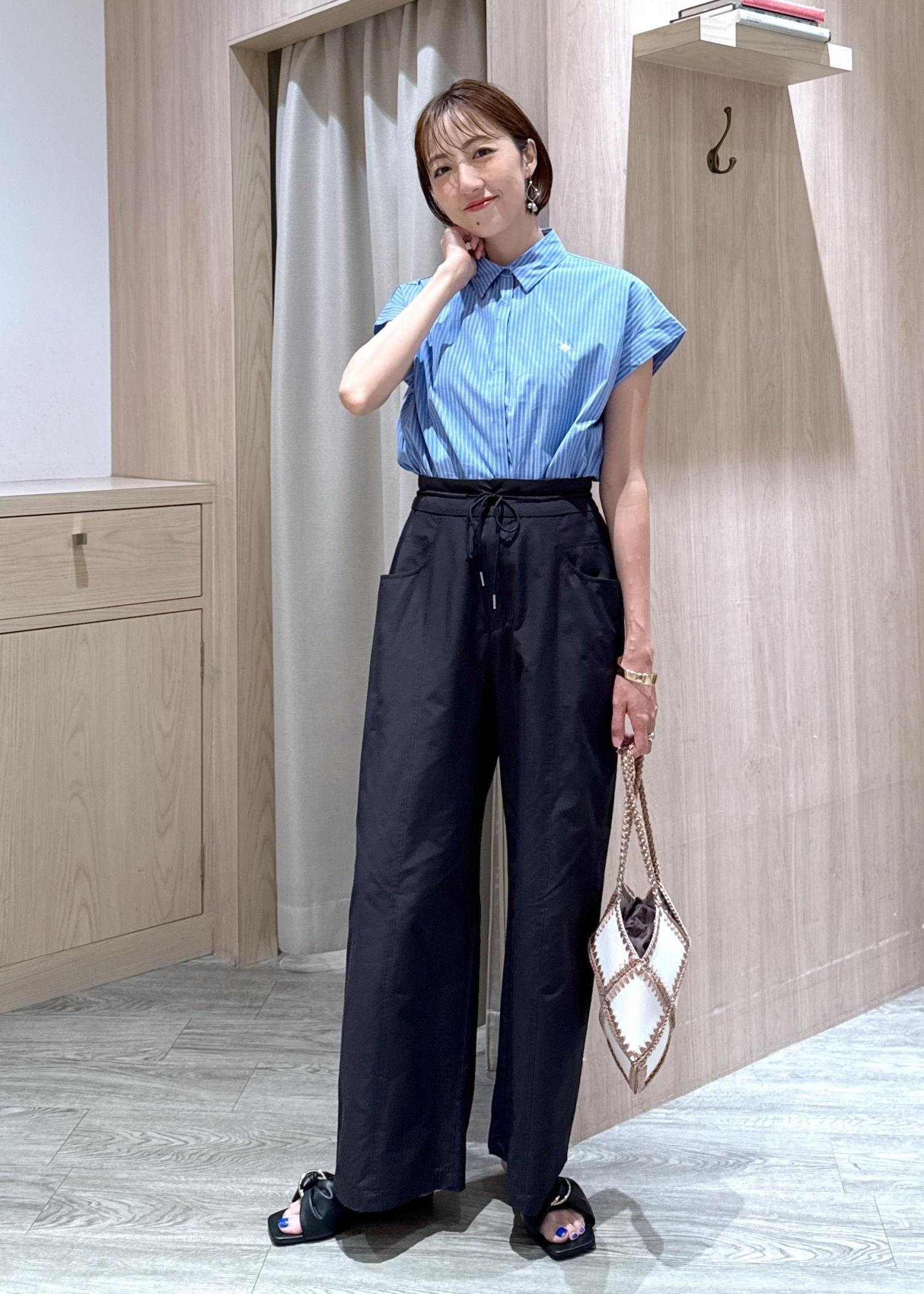 POLO別注のコンパクトブラウスに、チノライクなワイドパンツを合わせて大人カジュアルにスタイリングしました♪