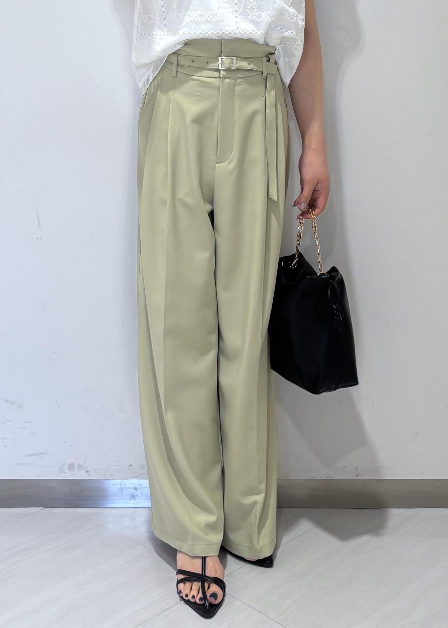 【新色追加】【防シワ/接触冷感】ベルトディテールタックワイドスラックスパンツ