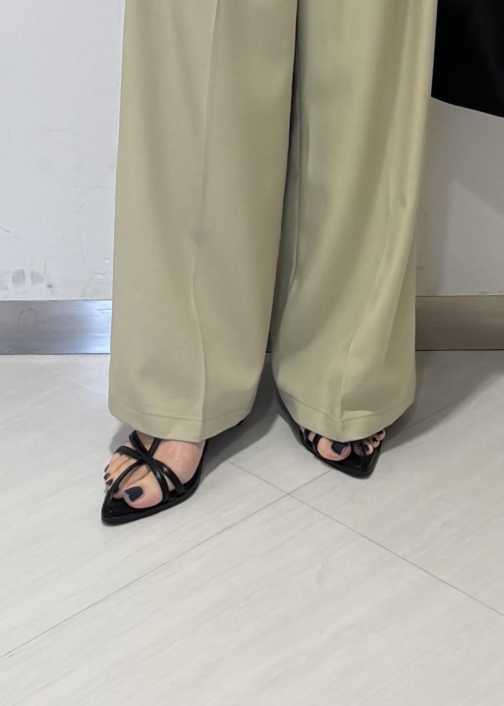 フラットシューズでもギリギリ床を擦らない長さですが、ヒール合わせだとよりスッキリシルエットでした◎