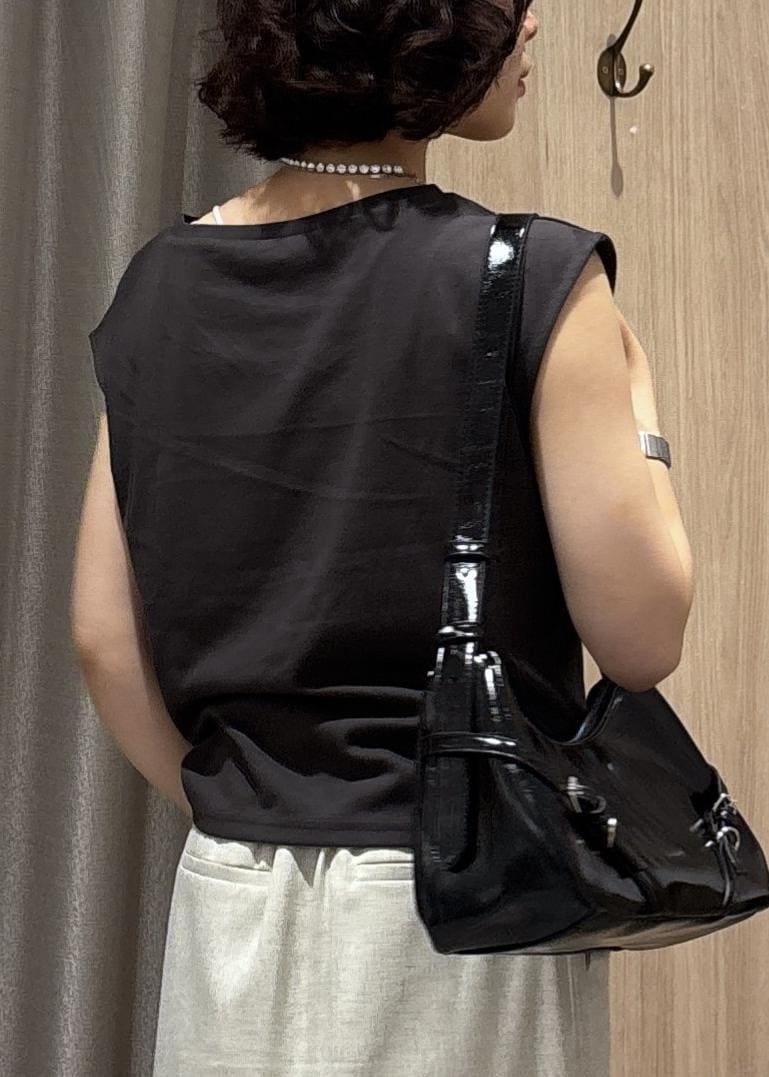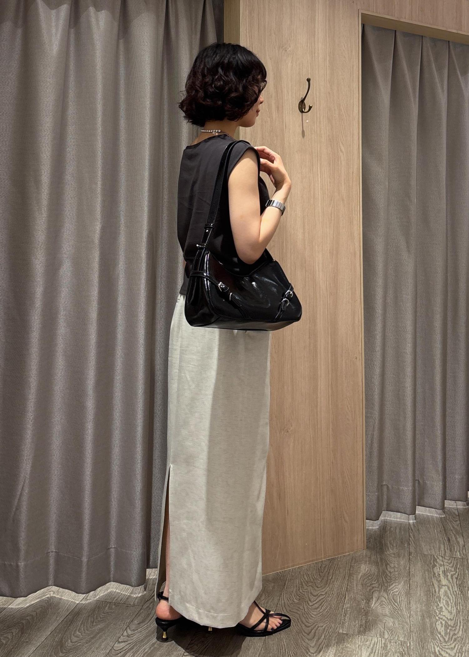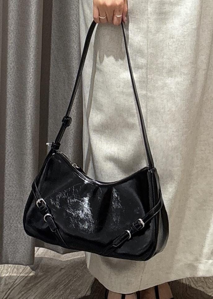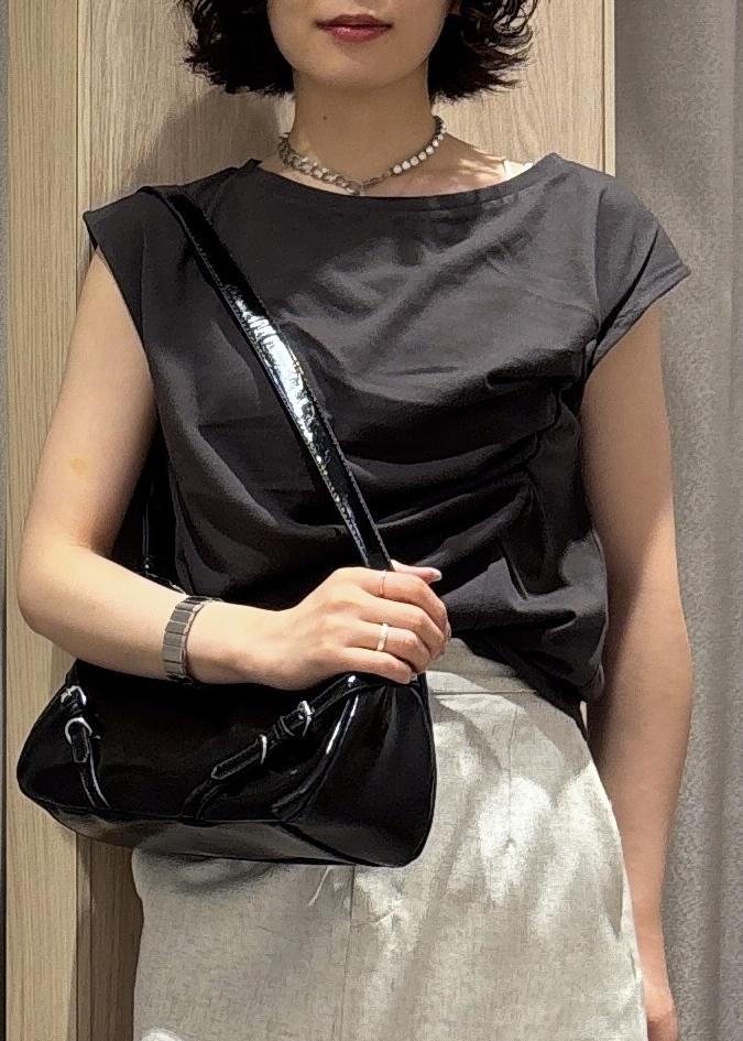 シボ感のあるエナメル素材がギラギラしすぎず使いやすいです◎