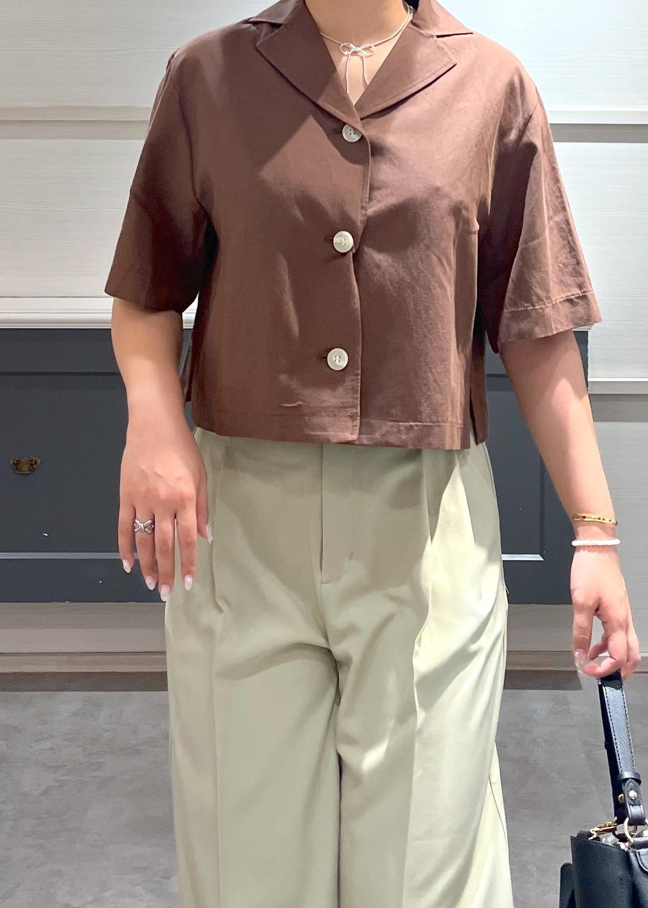アウトレットVIS開襟リネンライクシャツブラウン / F¥3,511レビュー軽やかに着れるので