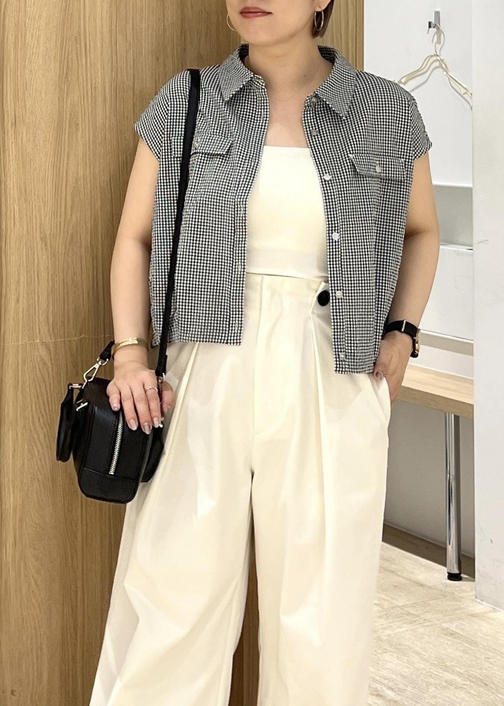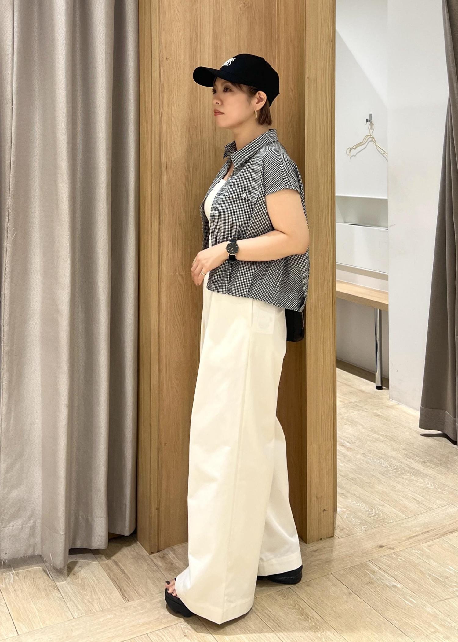 長めのフレンチスリーブで肩のラインが隠れるので大人女子も安心◎
