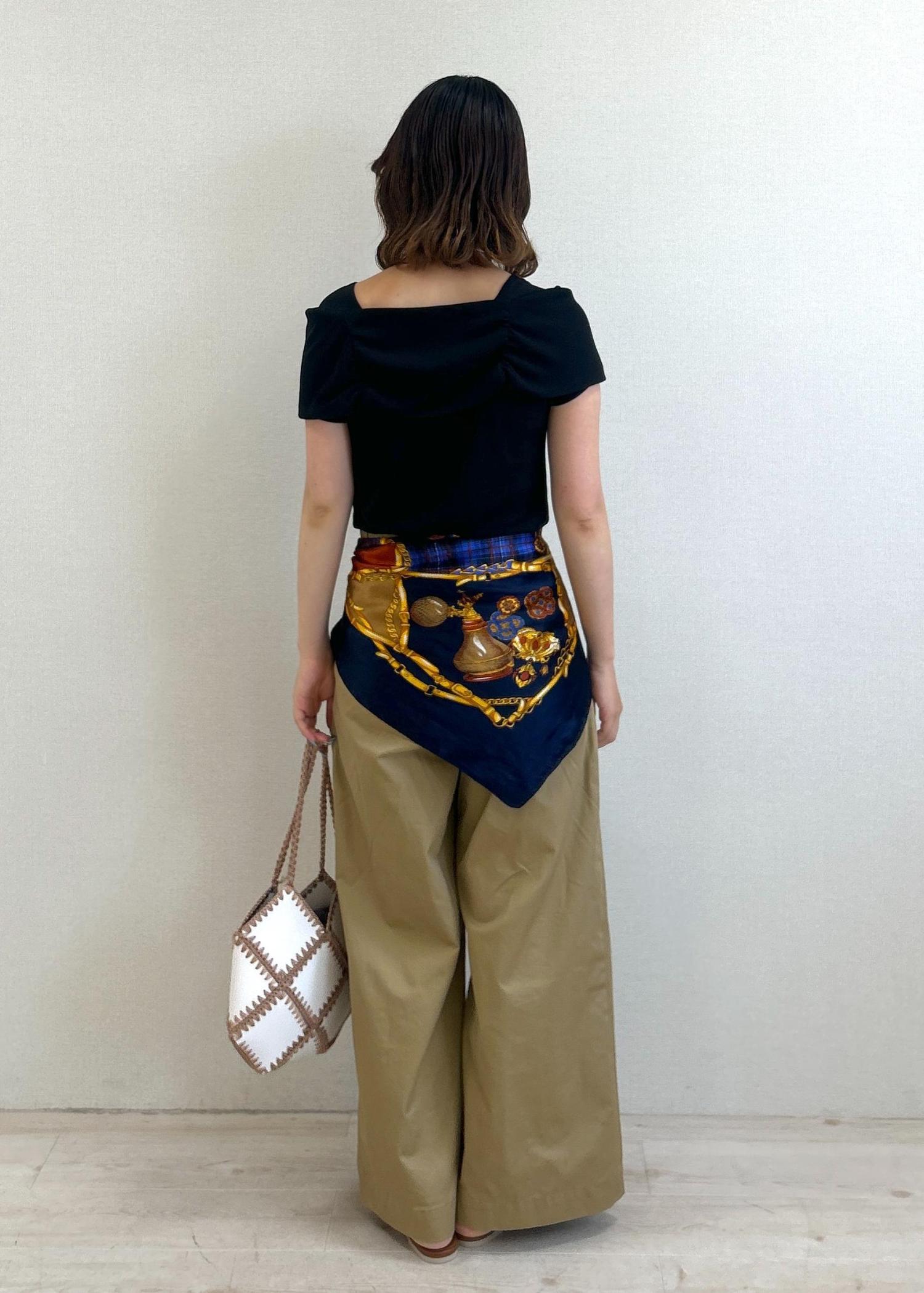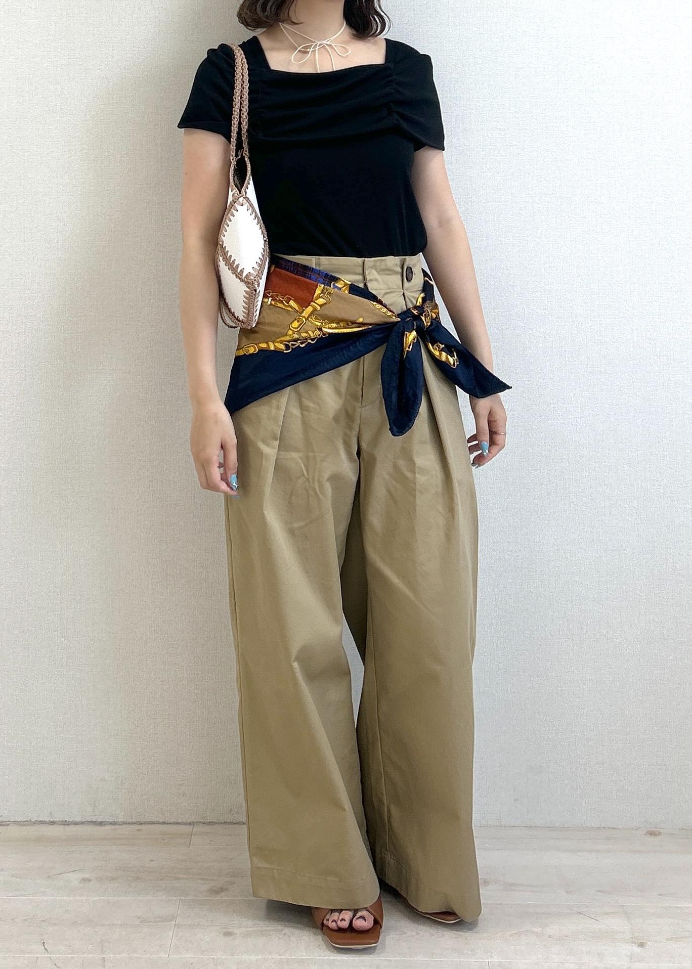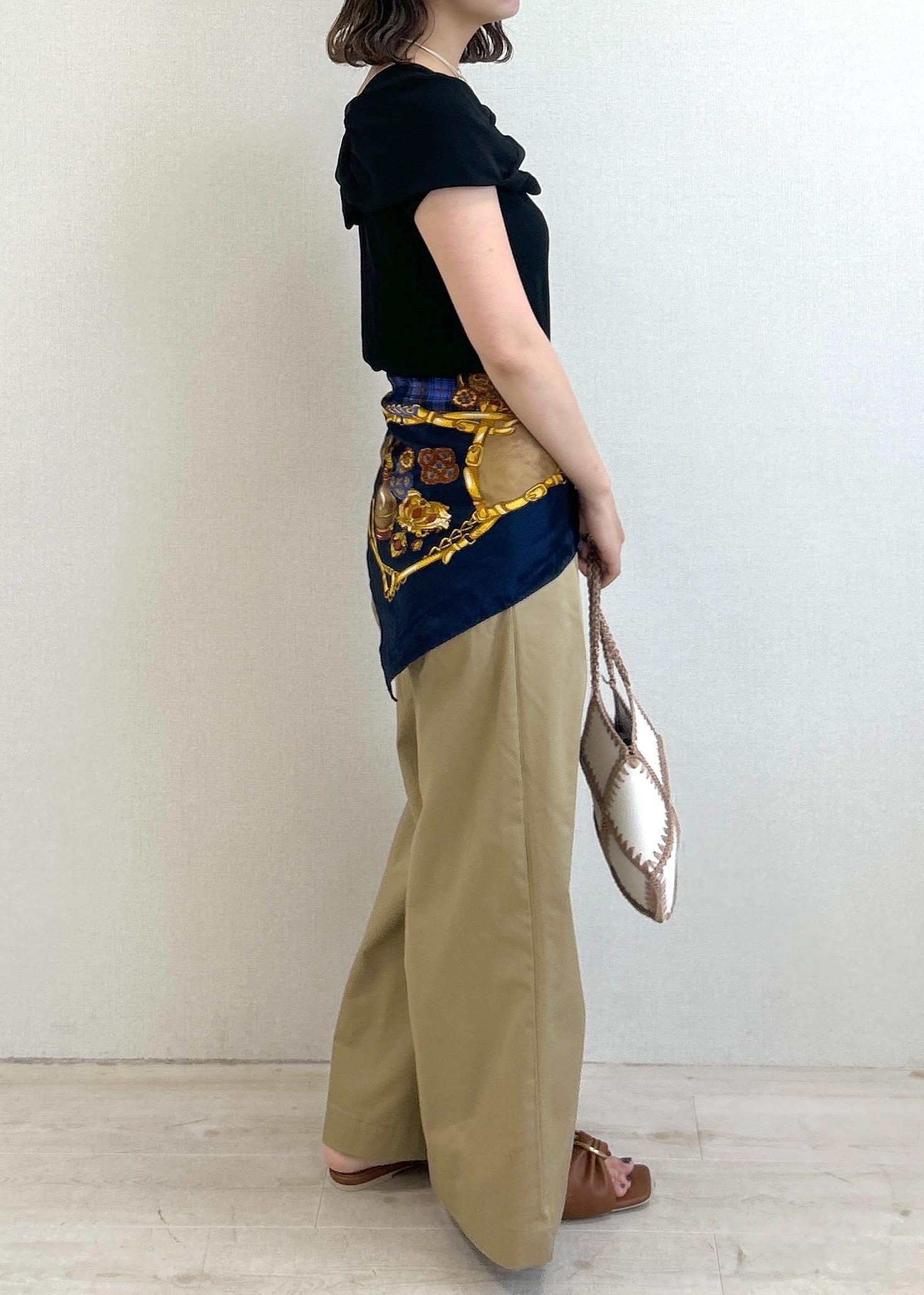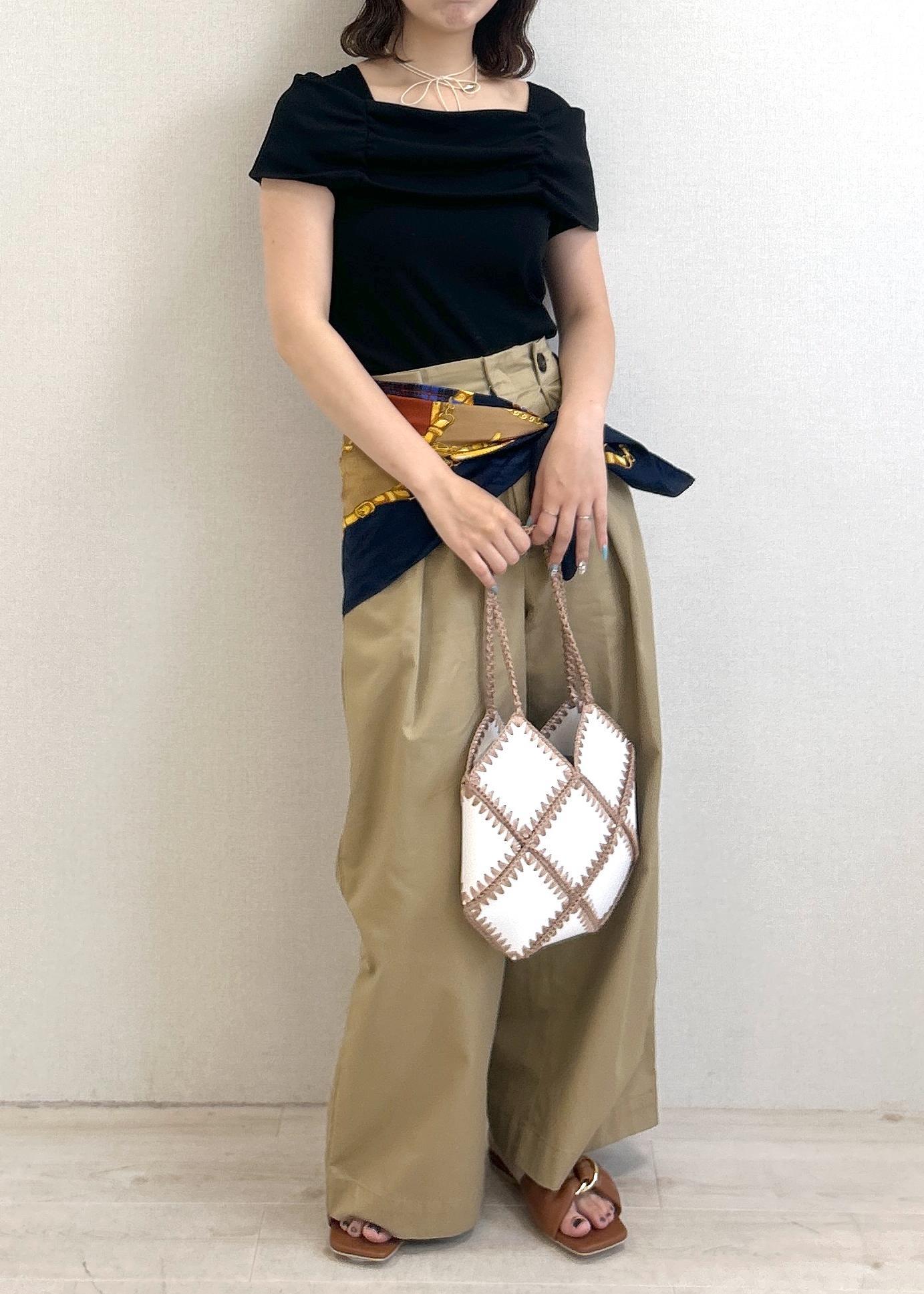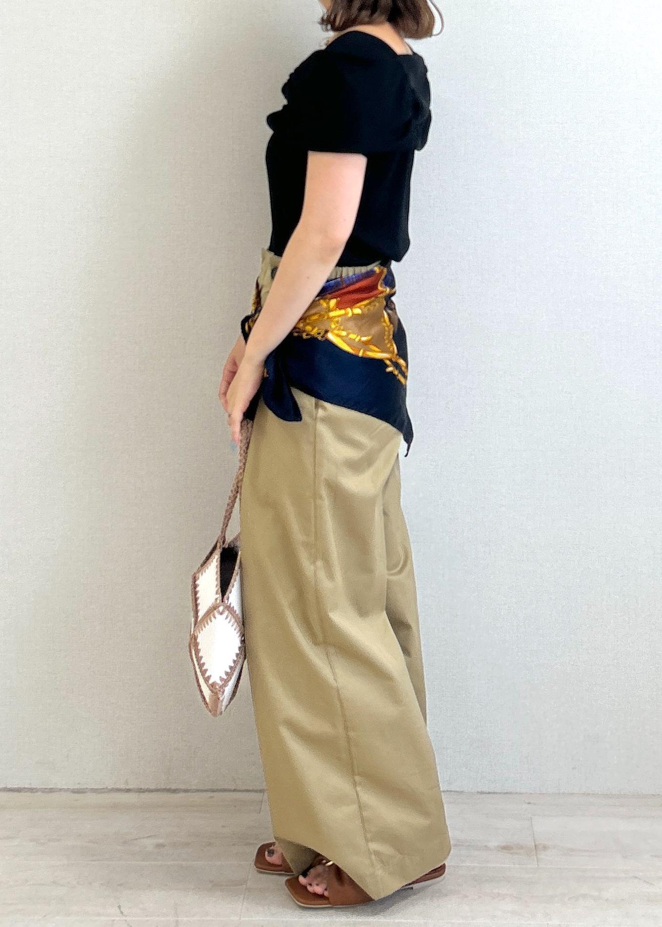 丸みのあるシルエットや硬めの素材感など、骨格ストレートの方に合いやすい要素もありつつ、ハイウエストなシルエットはウェーブの方との相性もいいので、どなたでも使いやすいです◎ -