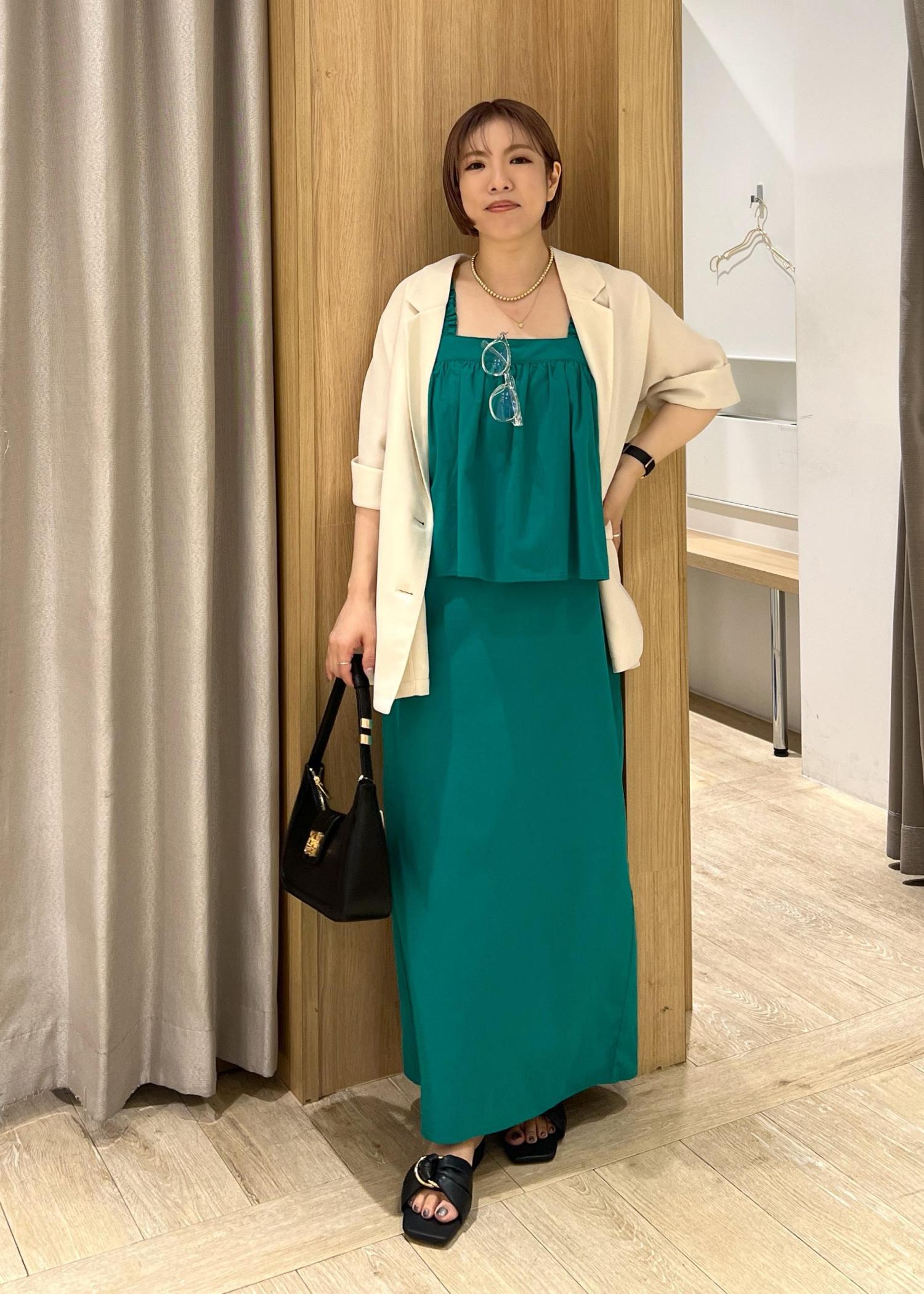 レイヤード風のIラインシルエットはボディラインを拾いにくいのも嬉しいポイントです◎