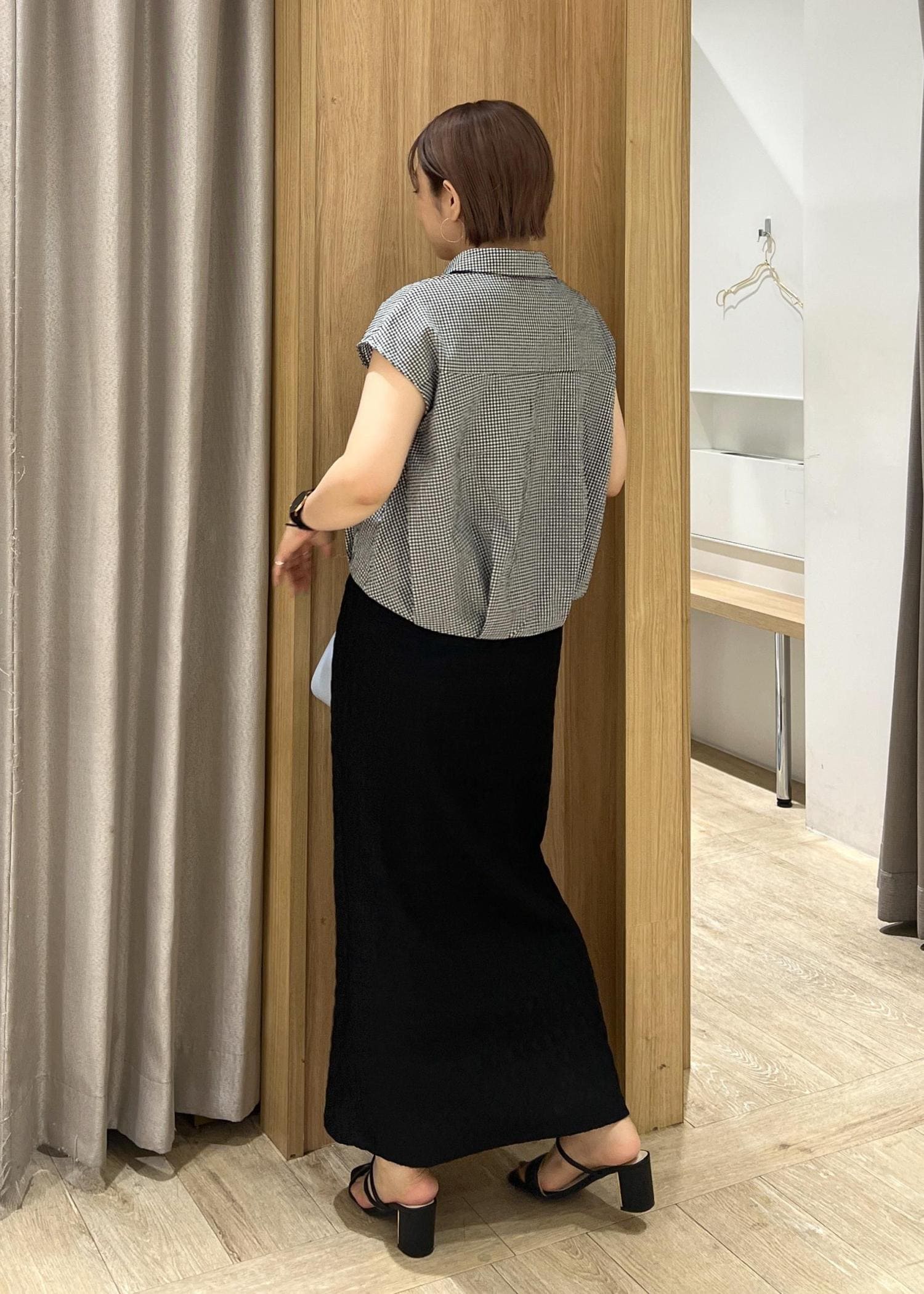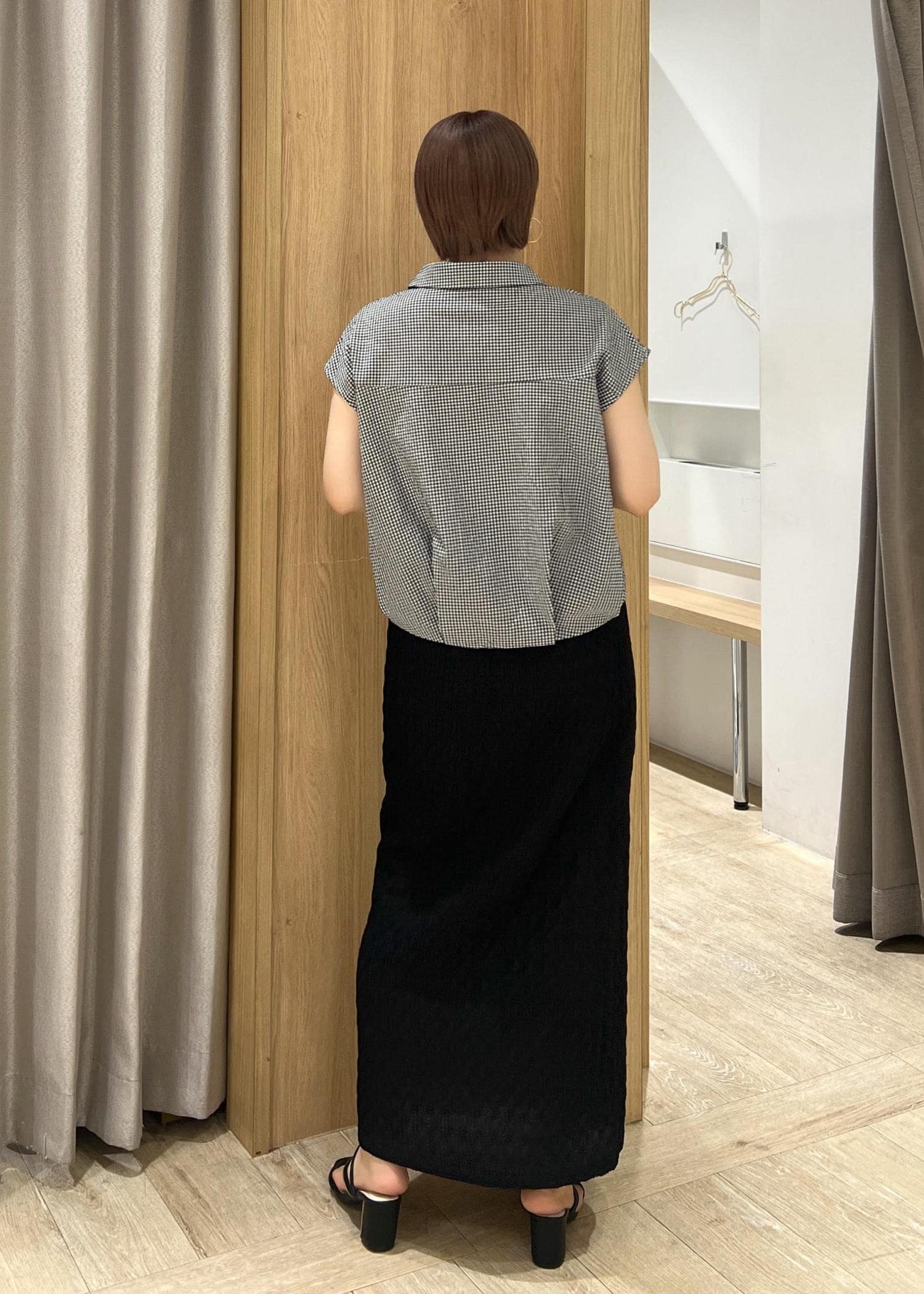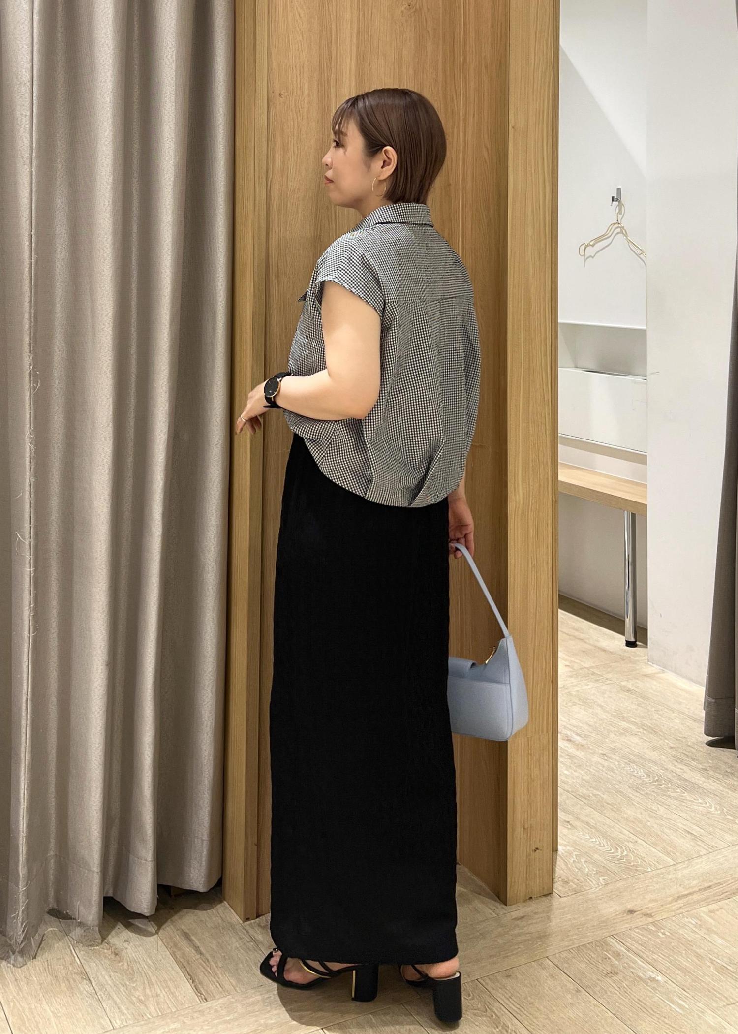 アウトレットVIS【新色追加】【接触冷感】膨れジャガードナロースカートブラック / F¥3,293レビュー身長152cmで踝が隠れる長めの丈感。
