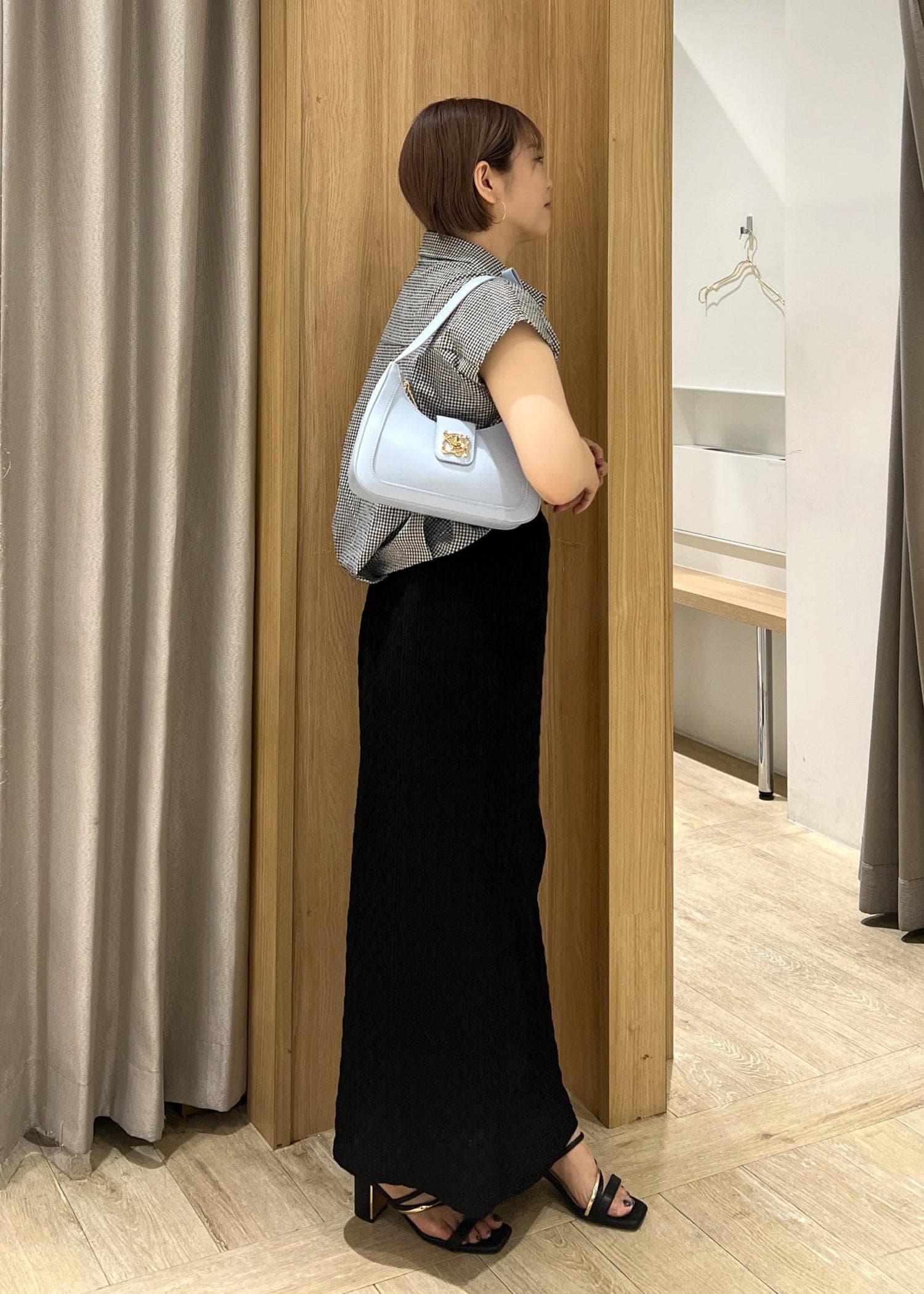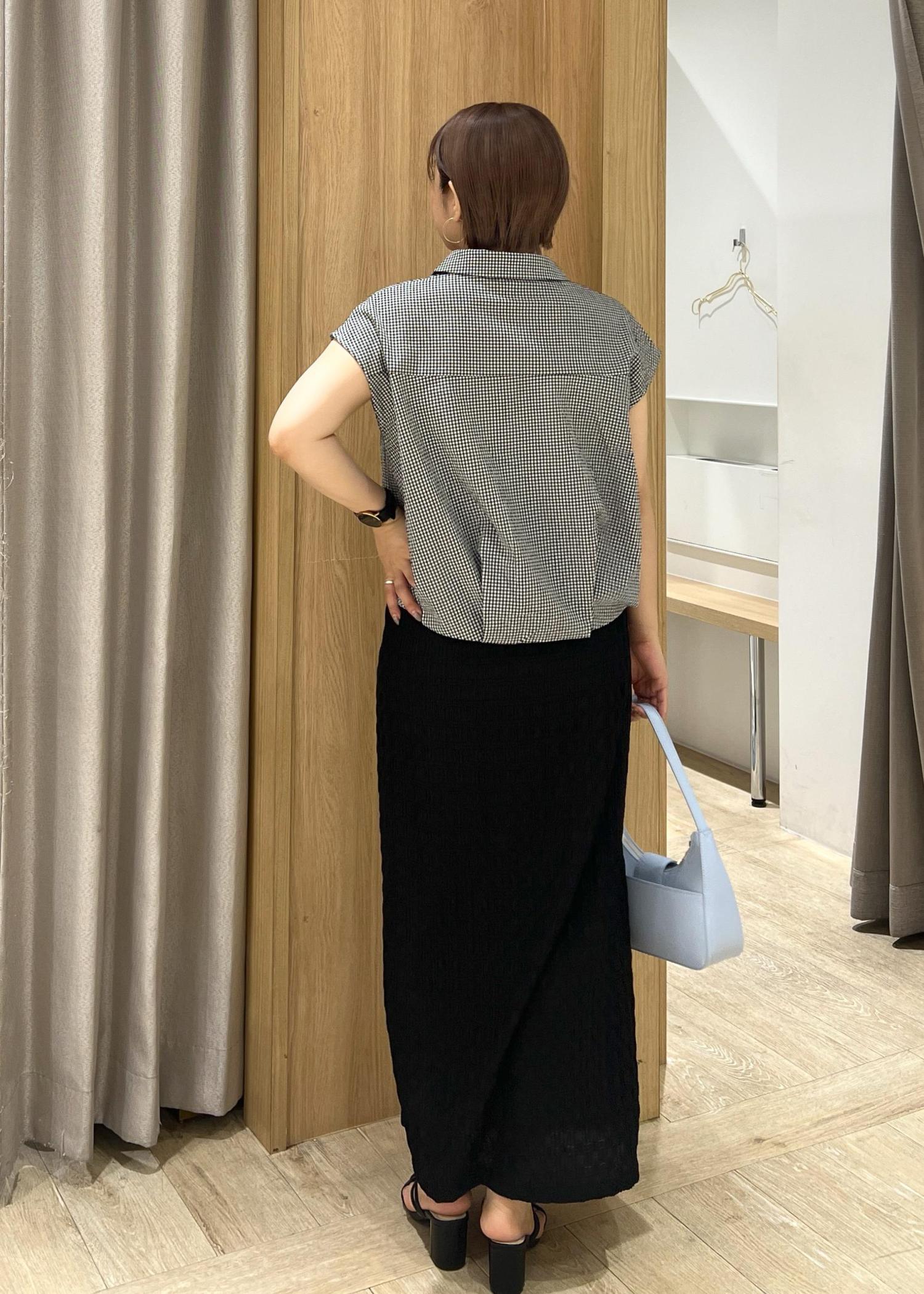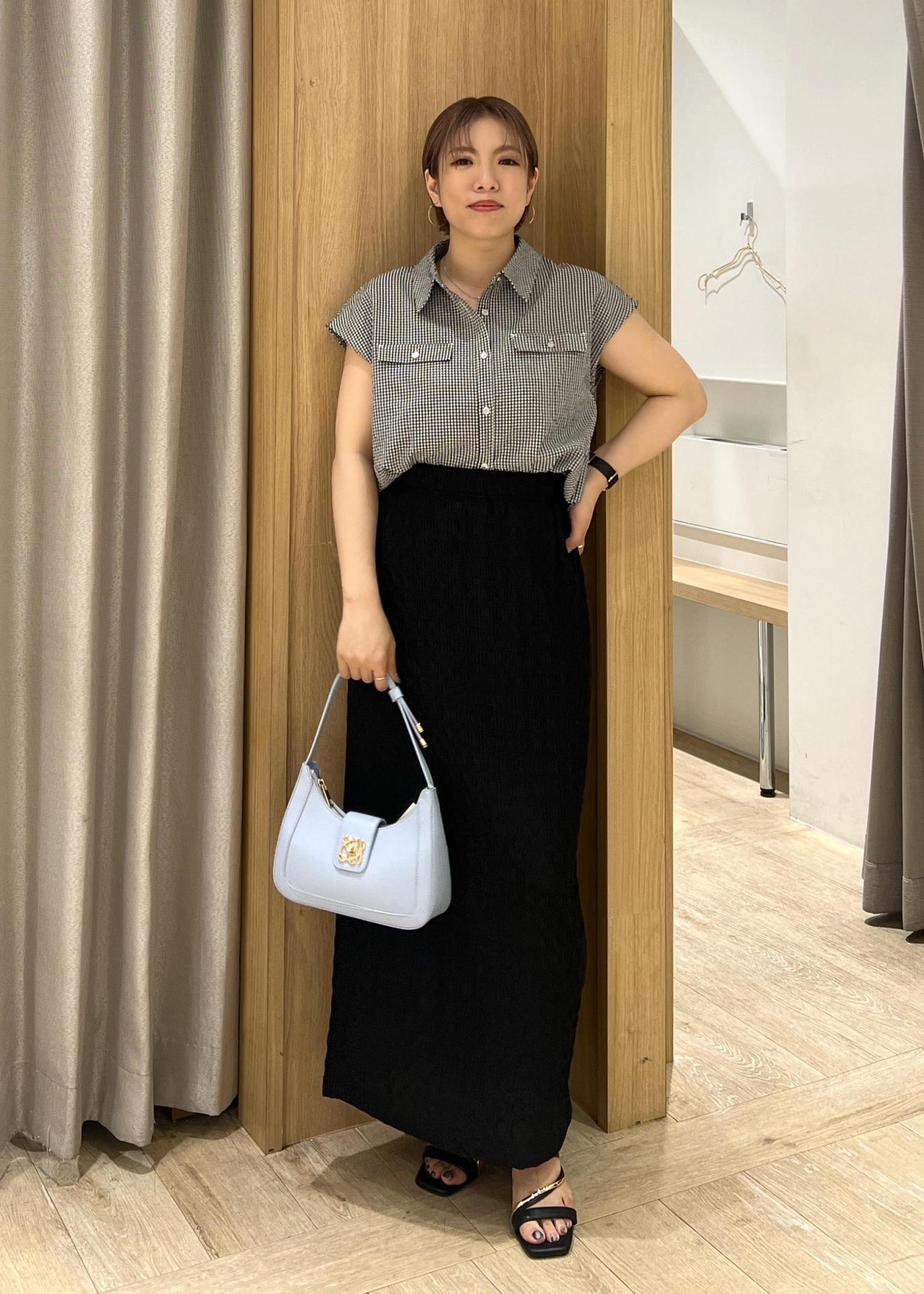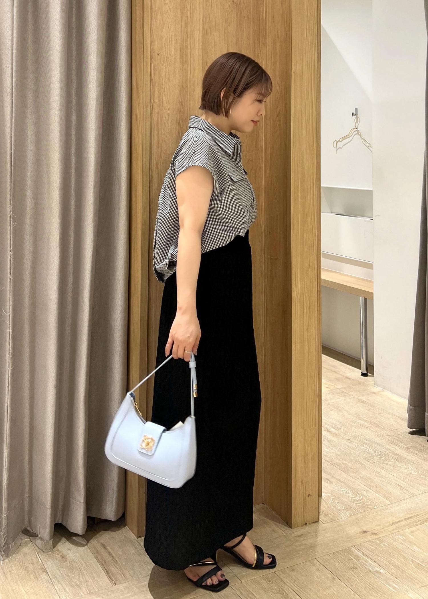 アウトレットVIS【新色追加】【接触冷感】膨れジャガードナロースカートブラック / F¥3,293レビュー身長152cmで踝が隠れる長めの丈感。