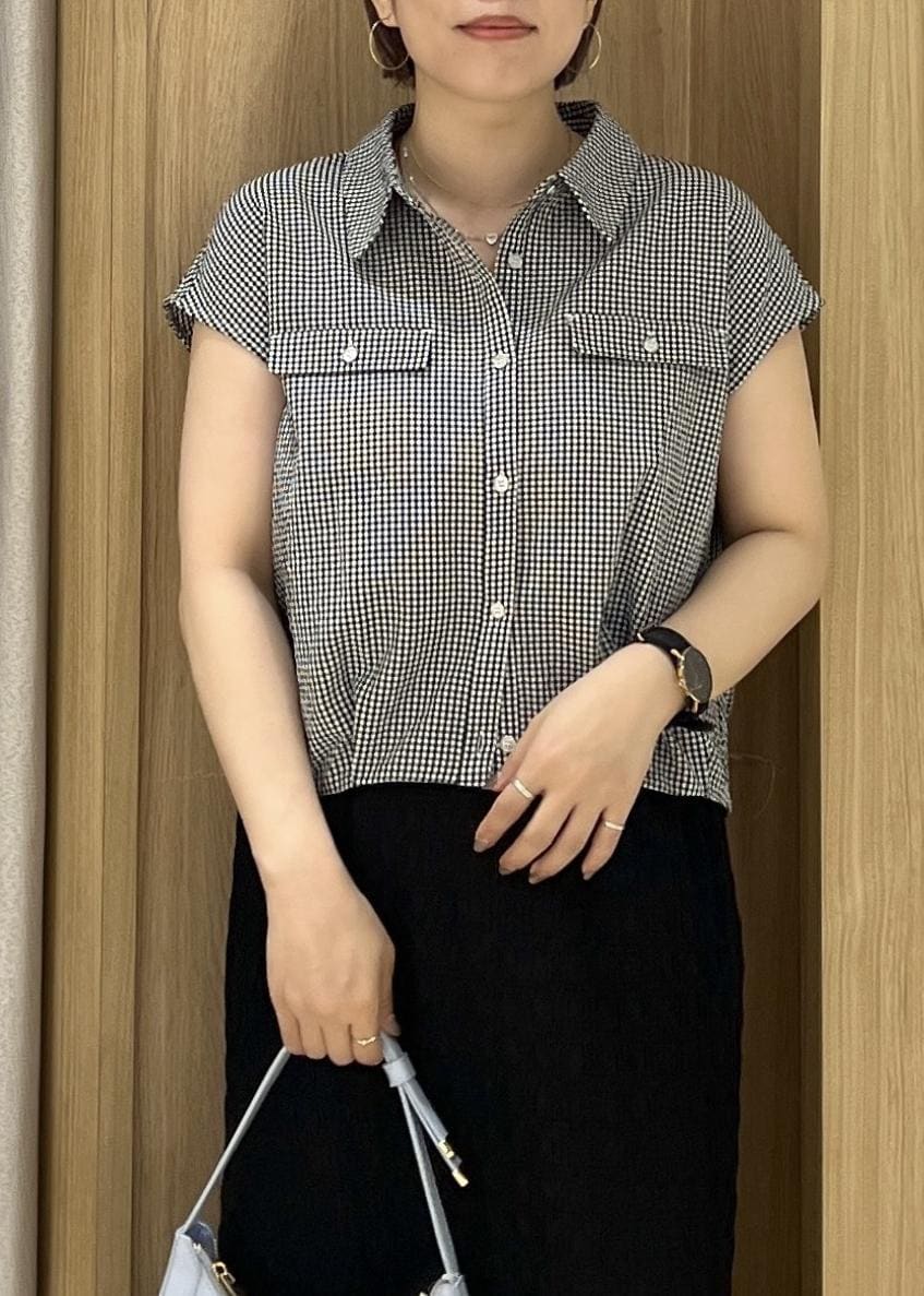 VIS【UVケア/洗える】フレンチスリーブサッカーブラウスブラック系 / F¥4,389レビュードライタッチなサッカー素材でとても軽く、サラッと涼しく着られます!
