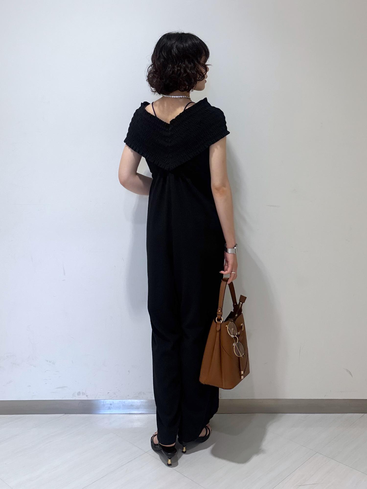 シャーリングオフショルダーオールインワン