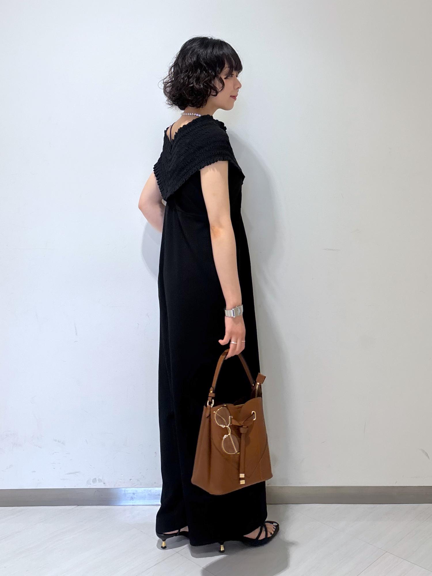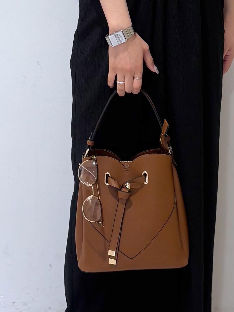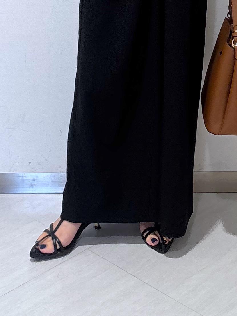 ブラックのワントーンなので、小物でブラウンを取り入れて抜け感をプラスしました◎