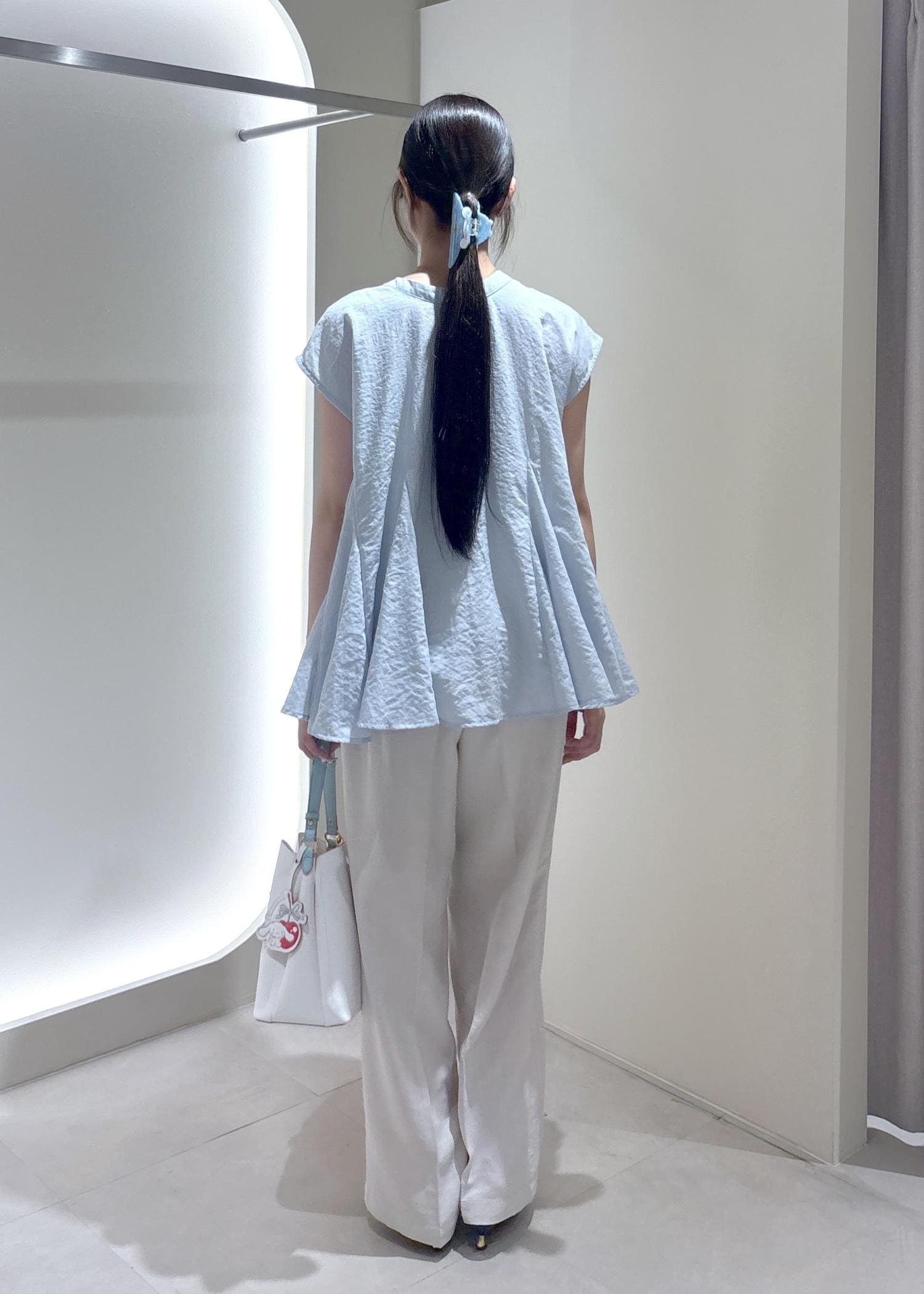 アウトレットVIS【防シワ/洗える】スキッパーフレアブラウスサックス / F¥3,293レビュー身長155cmでお尻が完全に隠れる丈感です!