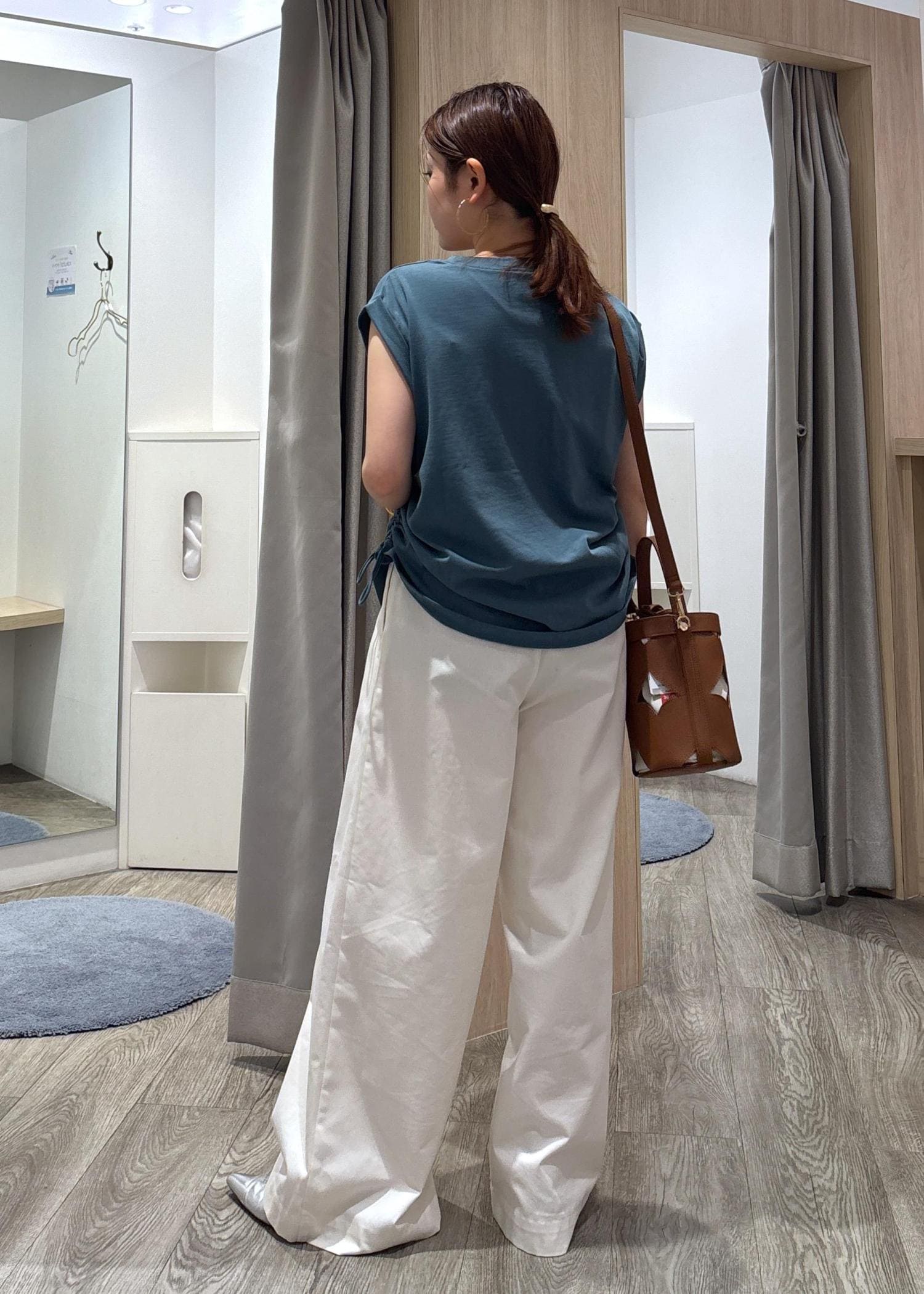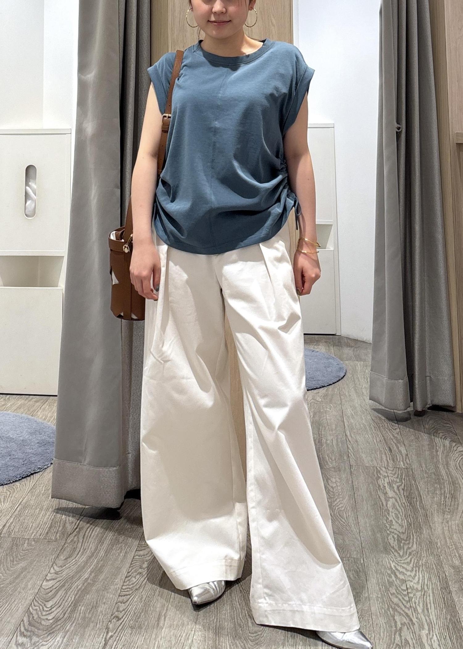 アウトレットVIS【WEB限定】サイドドロストシャーリングカットソーブルー系 / F¥1,580レビュー身長150センチで、お尻にかかるくらいの丈感