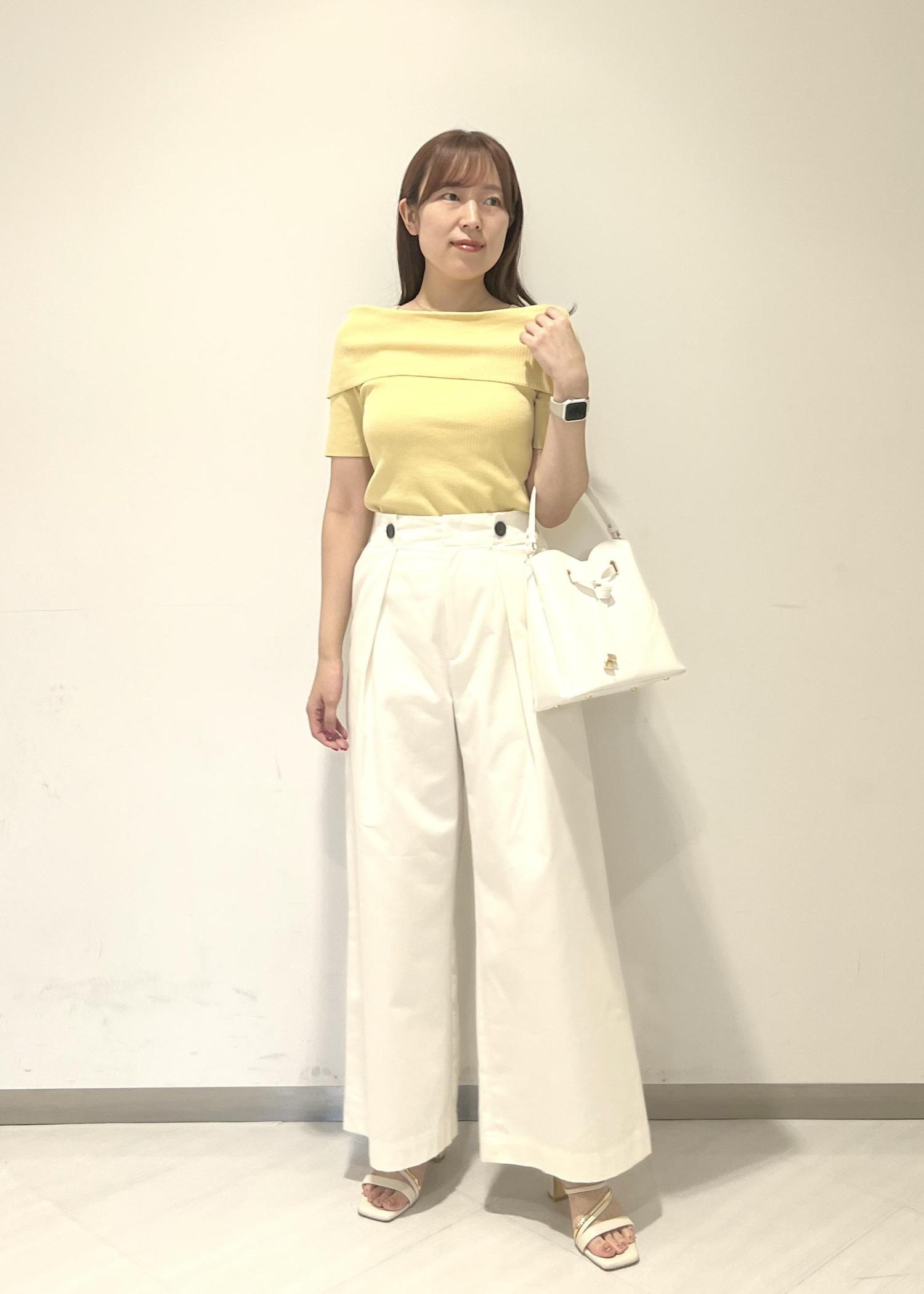 VIS【アンチピリング/UVケア/洗える】オフショルハーフスリーブニットイエロー系 / F¥4,939レビューオフショルですが落ちてこないようデザインされています!インナーの肩紐は気にならずに使えるのでストレスフリーです◎
