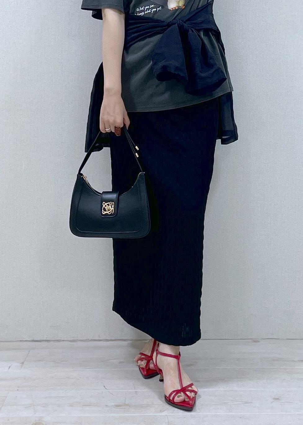 アウトレットVIS【新色追加】【接触冷感】膨れジャガードナロースカートブラック / F¥3,293レビューウエストが総ゴムなので、とにかく楽な履き心地です。