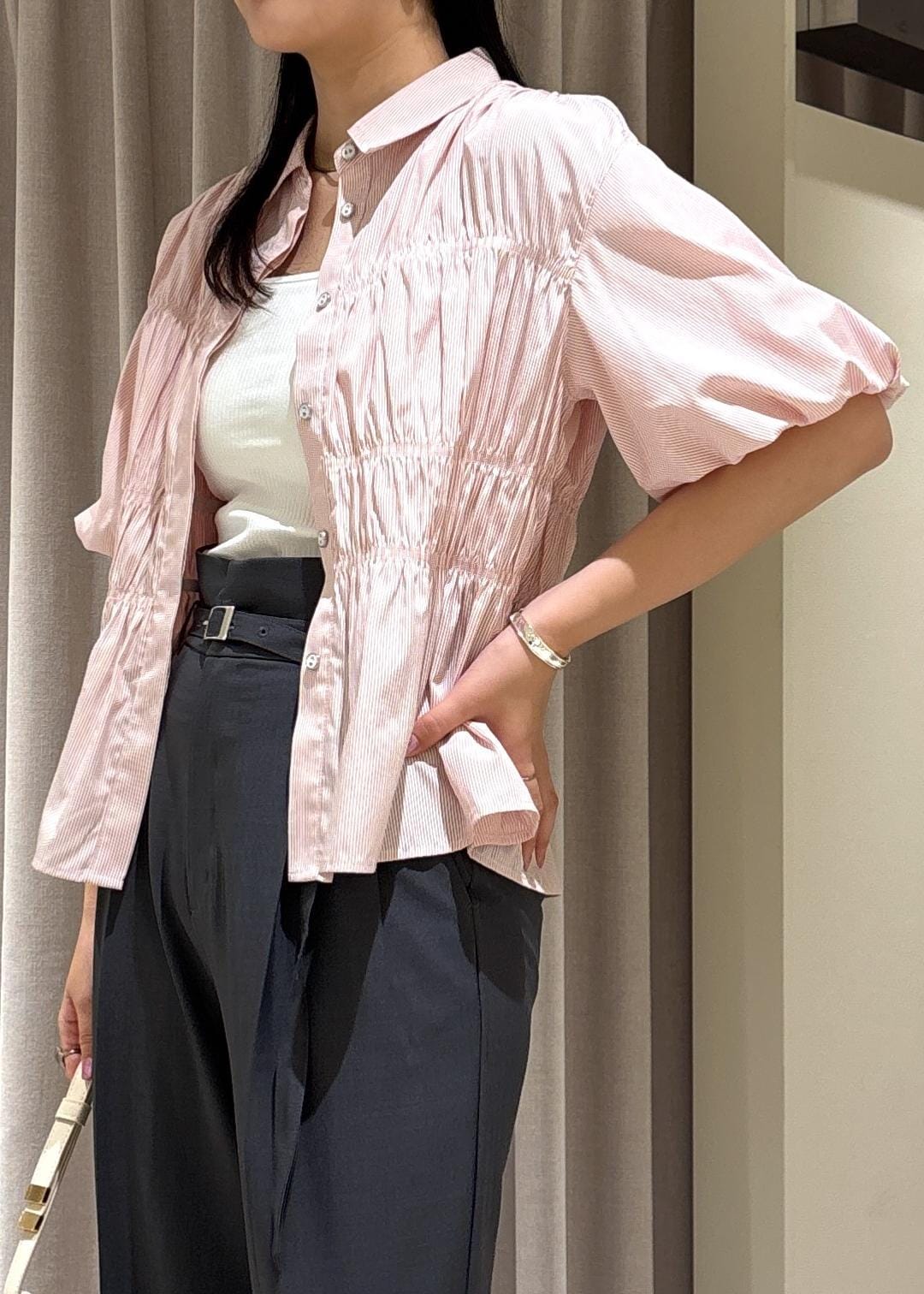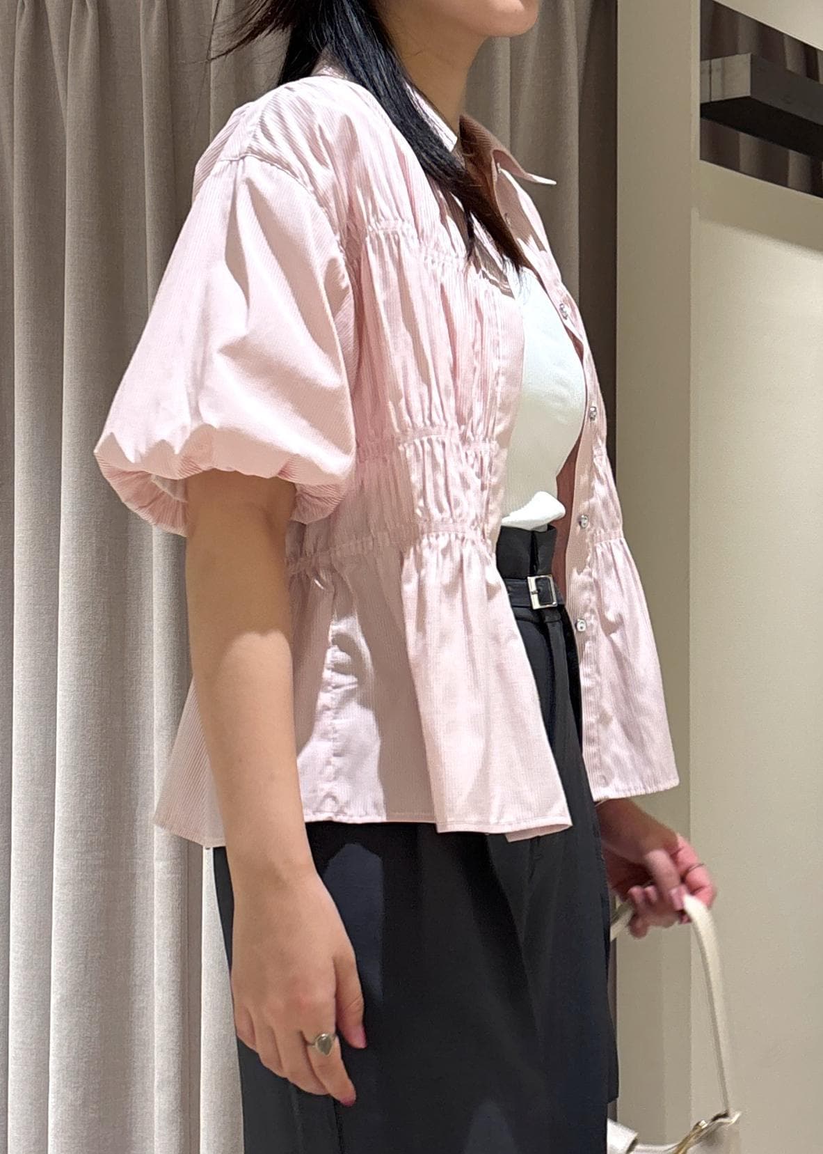 VIS【新色追加】【店頭人気】シャーリングバルーンシャツピンク系 / F¥5,489レビュー165cmで腰が隠れる丈感です!