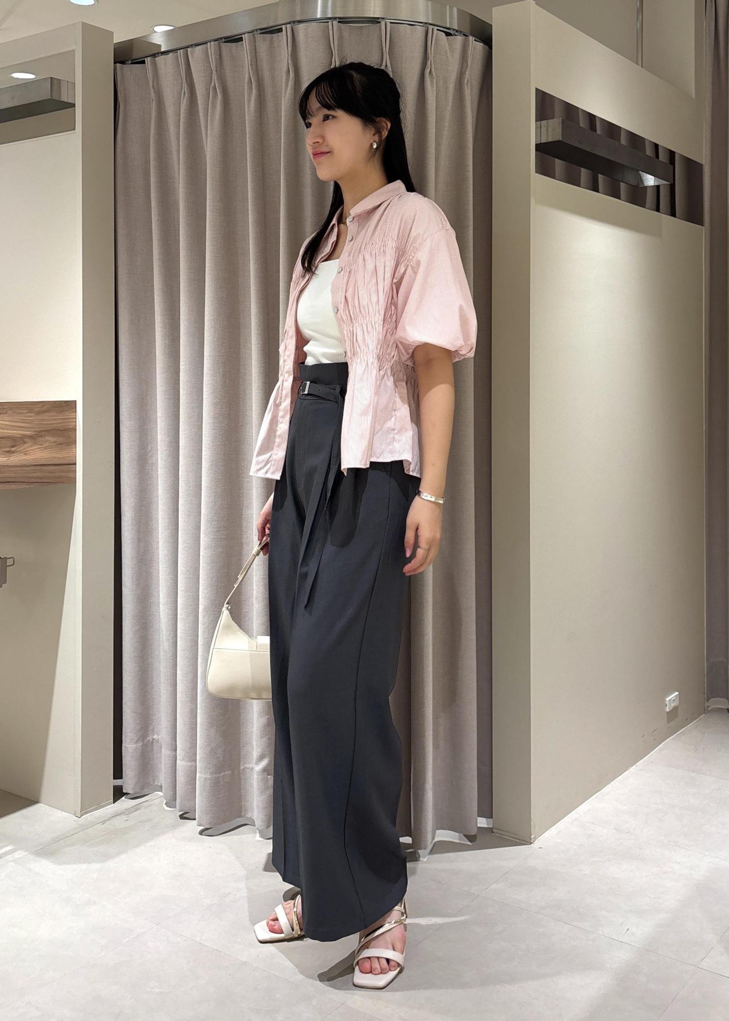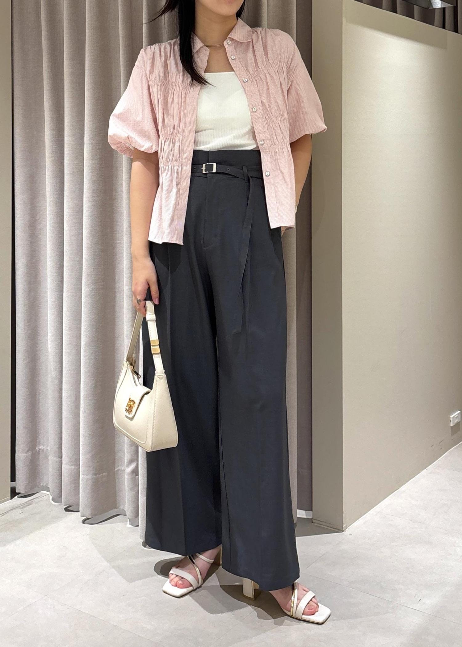 ワイドシルエットですが、広すぎないラインとベルトで綺麗見えもします! -