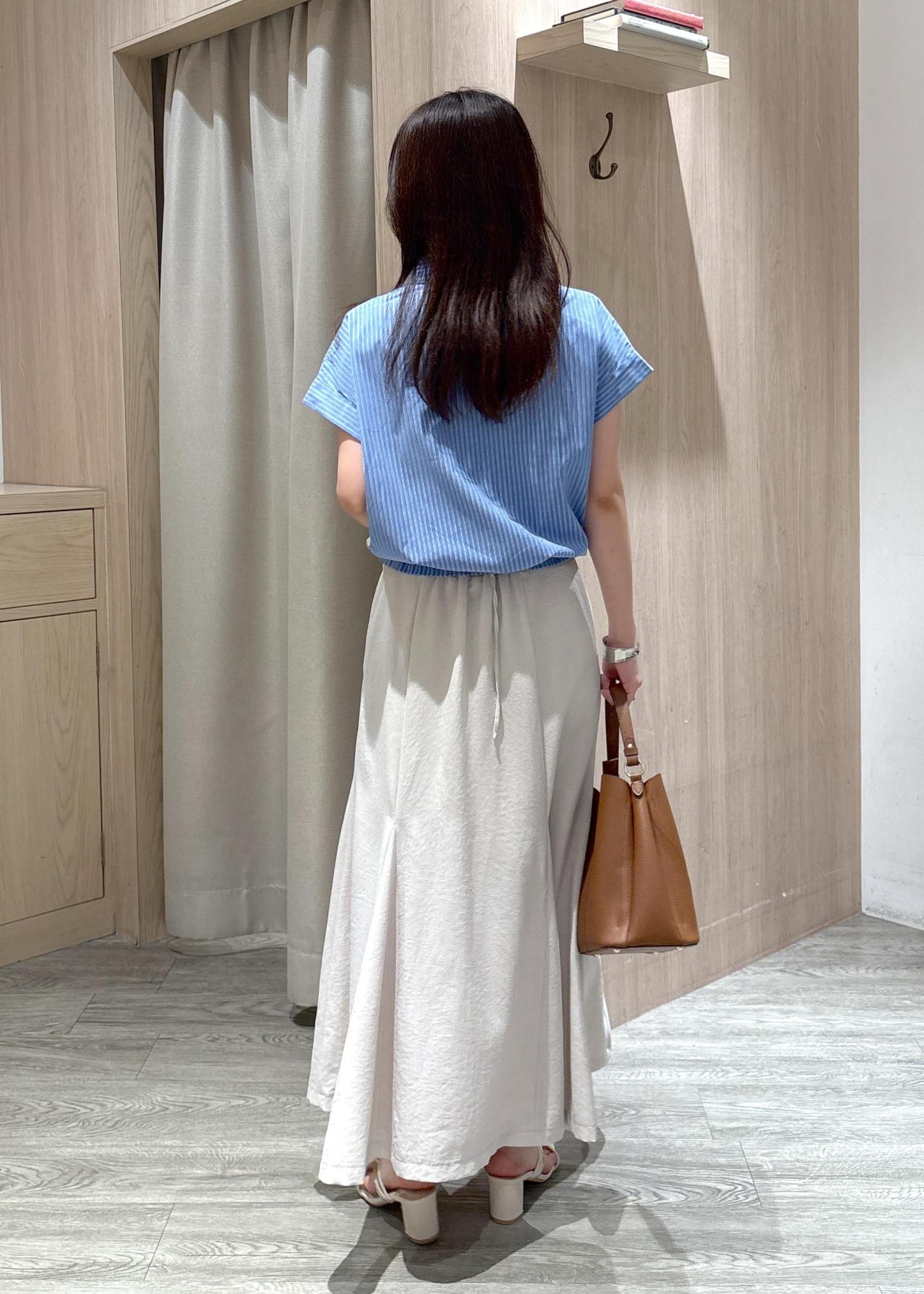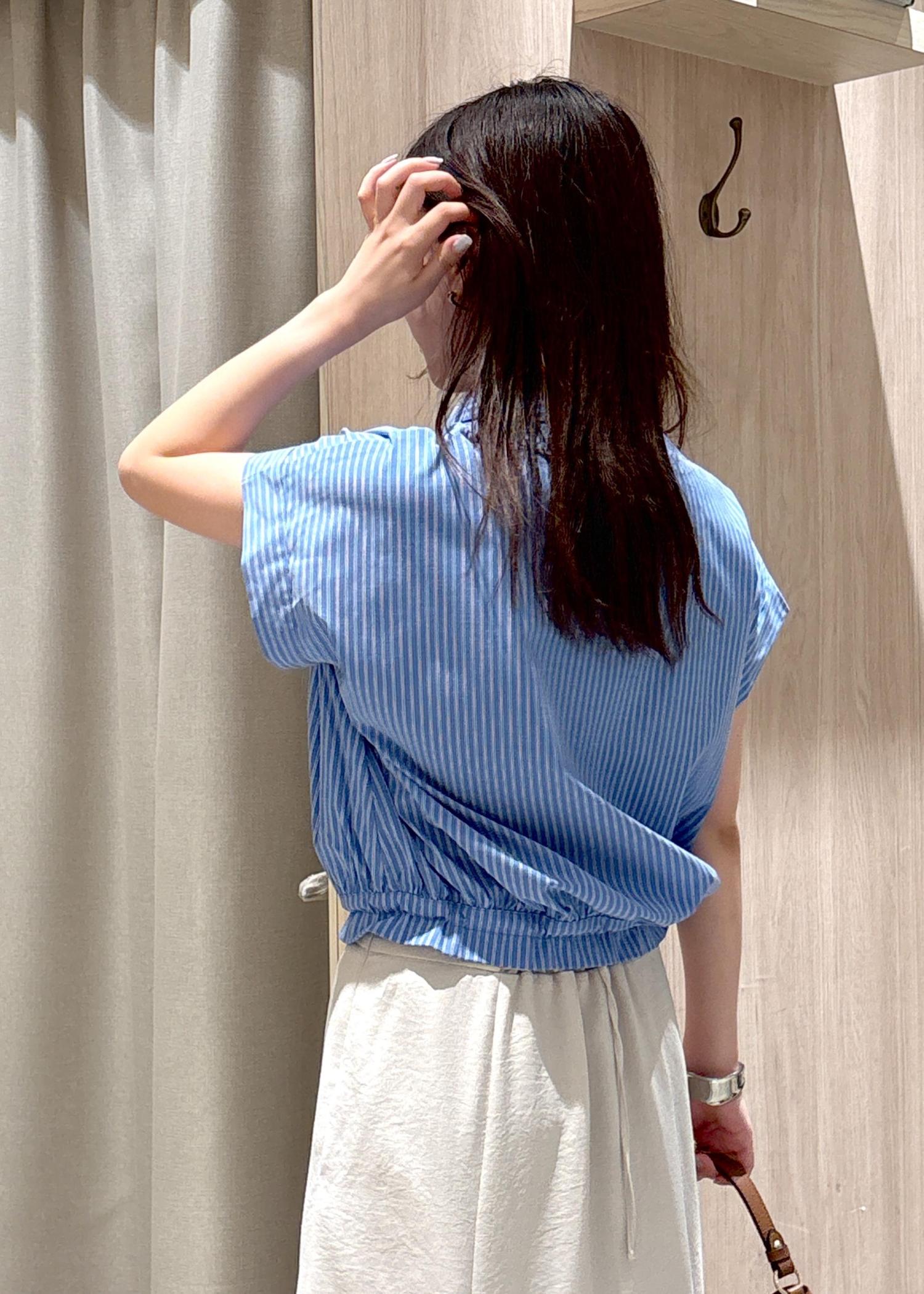 VIS【POLO BCS】VIS別注フレンチスリーブドローストリングシャツブルー / F¥6,050レビュー裾をドロストで絞るとフリルっぽくなり雰囲気変えて着用できます◎