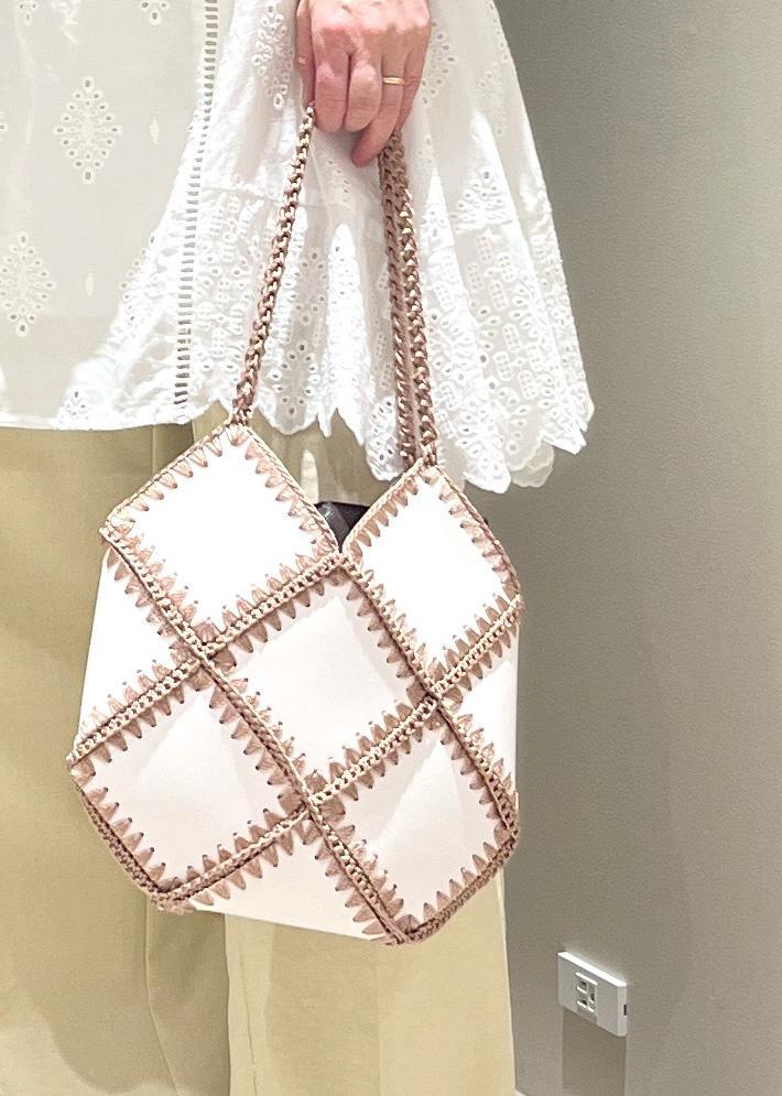 アウトレットVISパッチワークバッグキナリ系 / F¥2,372レビュークロシェ編みがポイントで季節感のあるバッグは夏コーデをよりオシャレに見せてくれます!