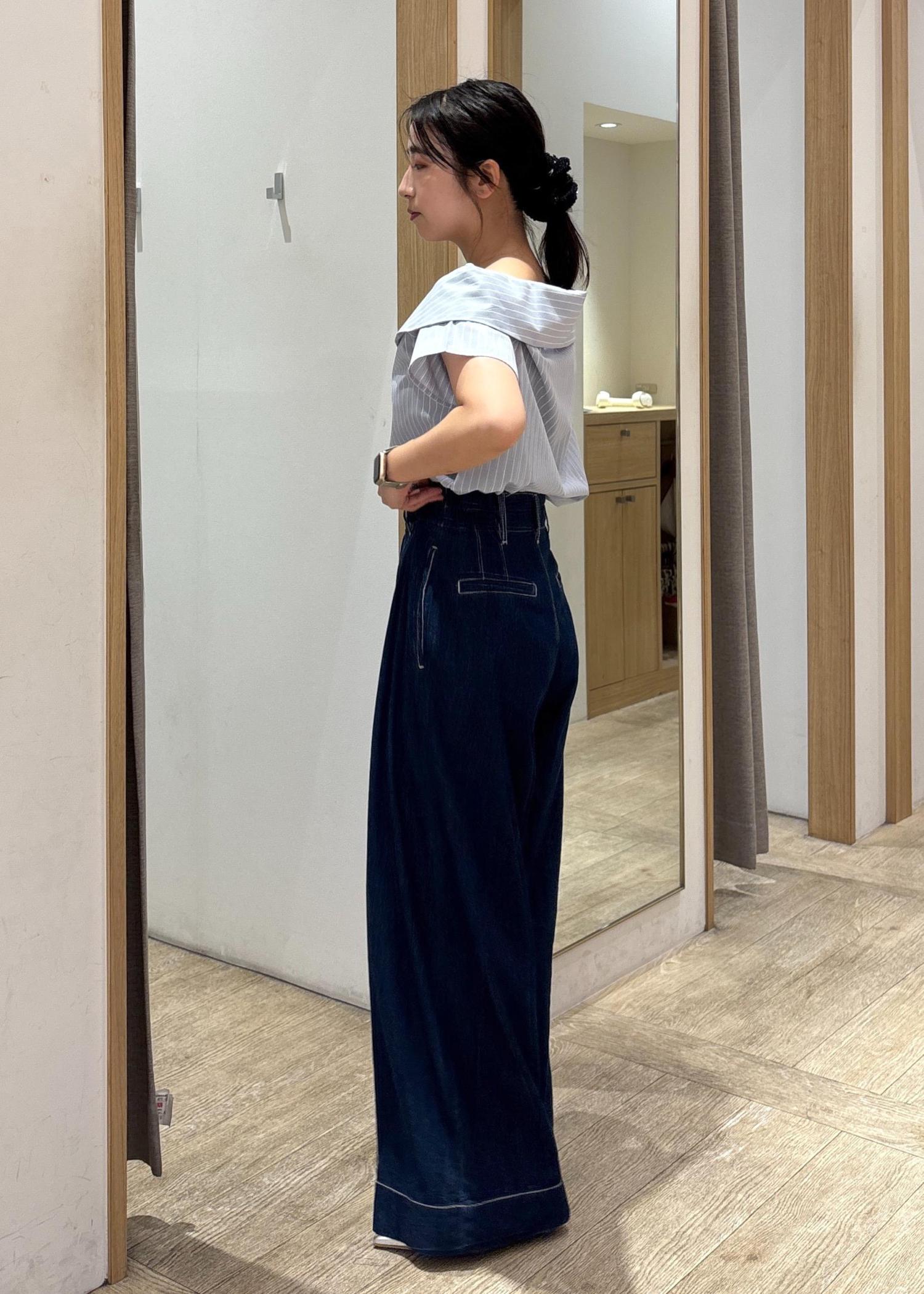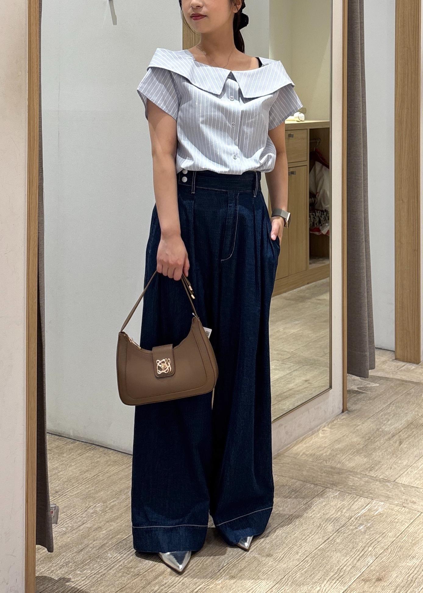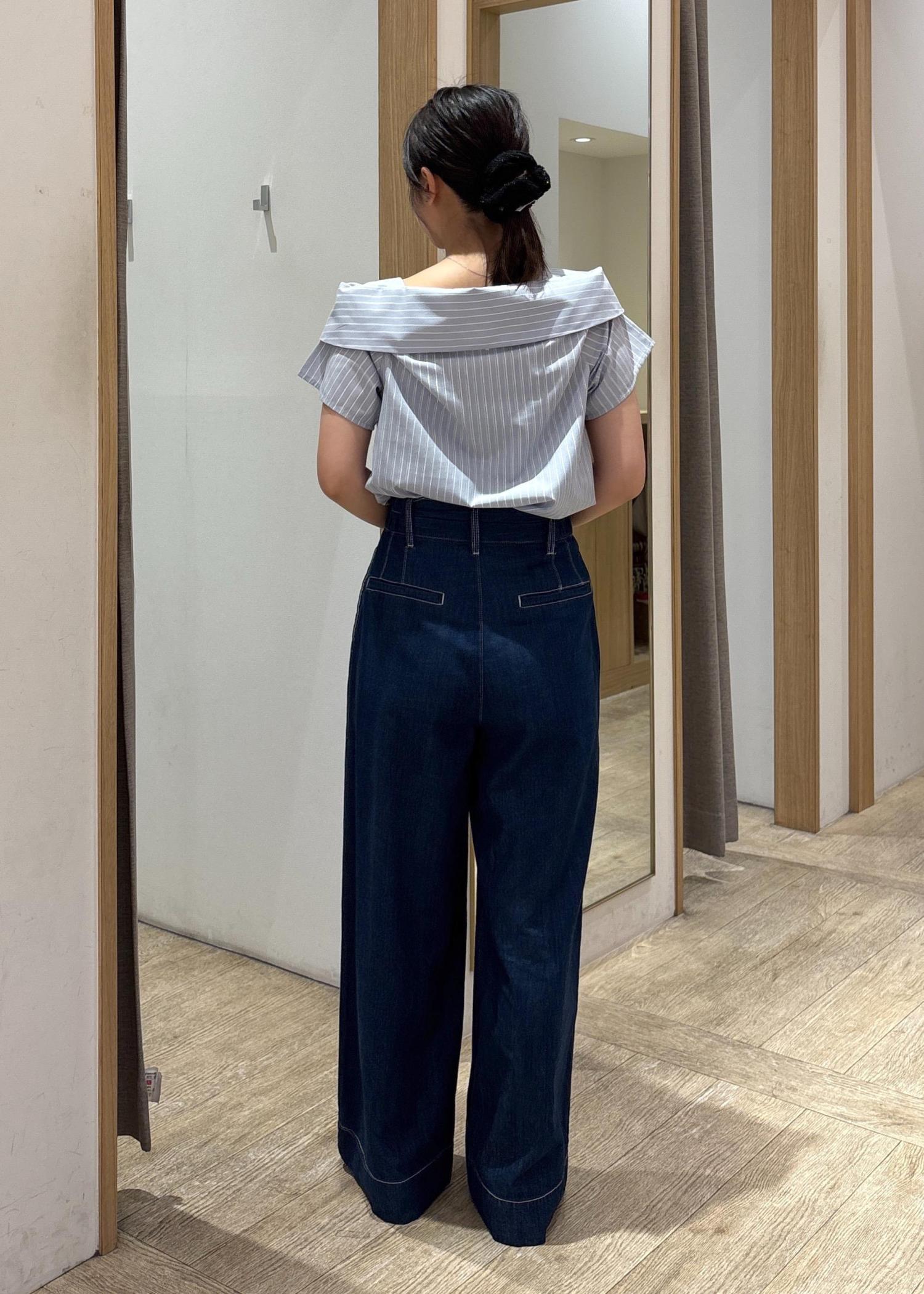 デニムは裾にボリュームがあるので、コンパクトなトップスと合わせると低身長もバランスがとりやすいです☺︎