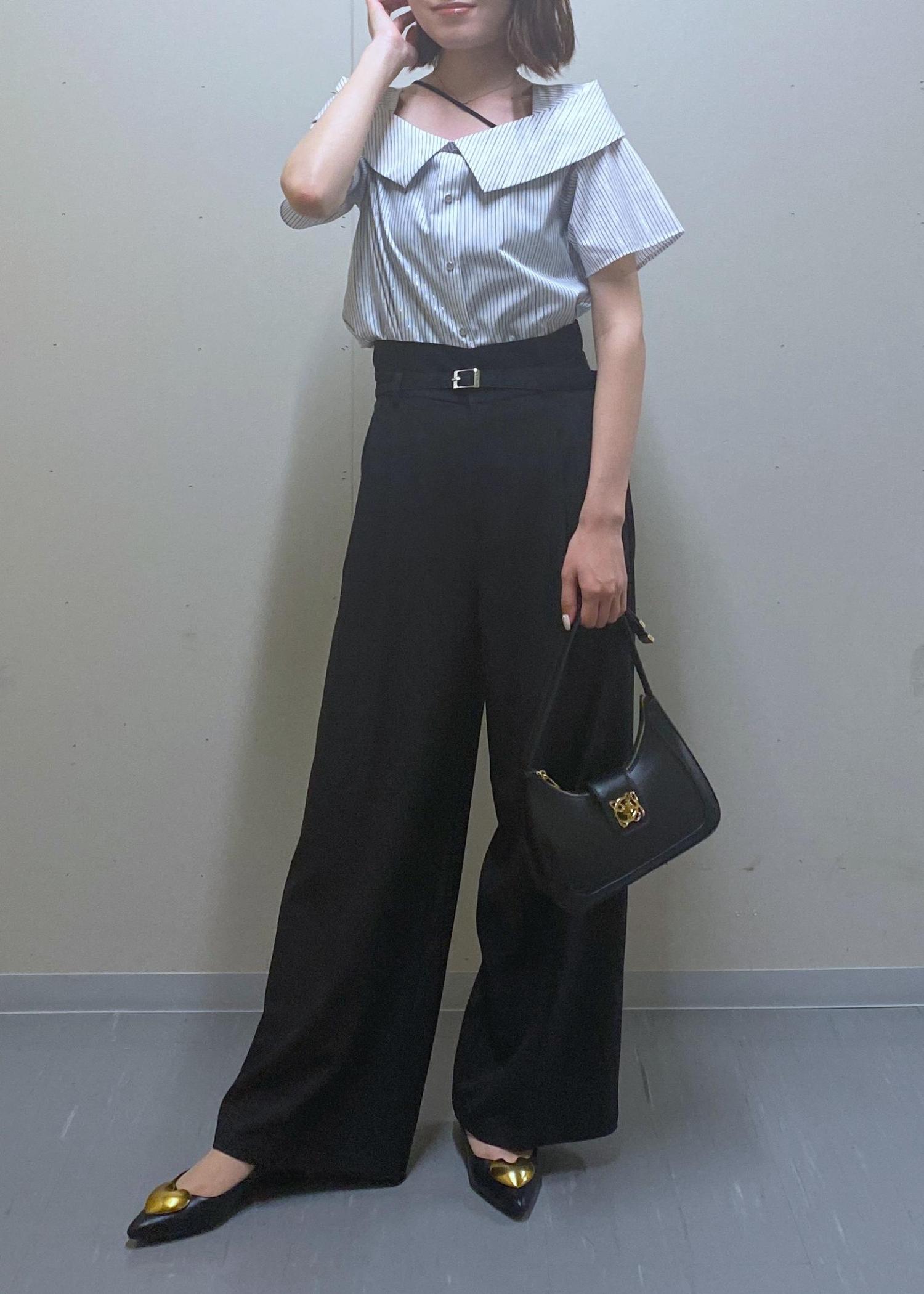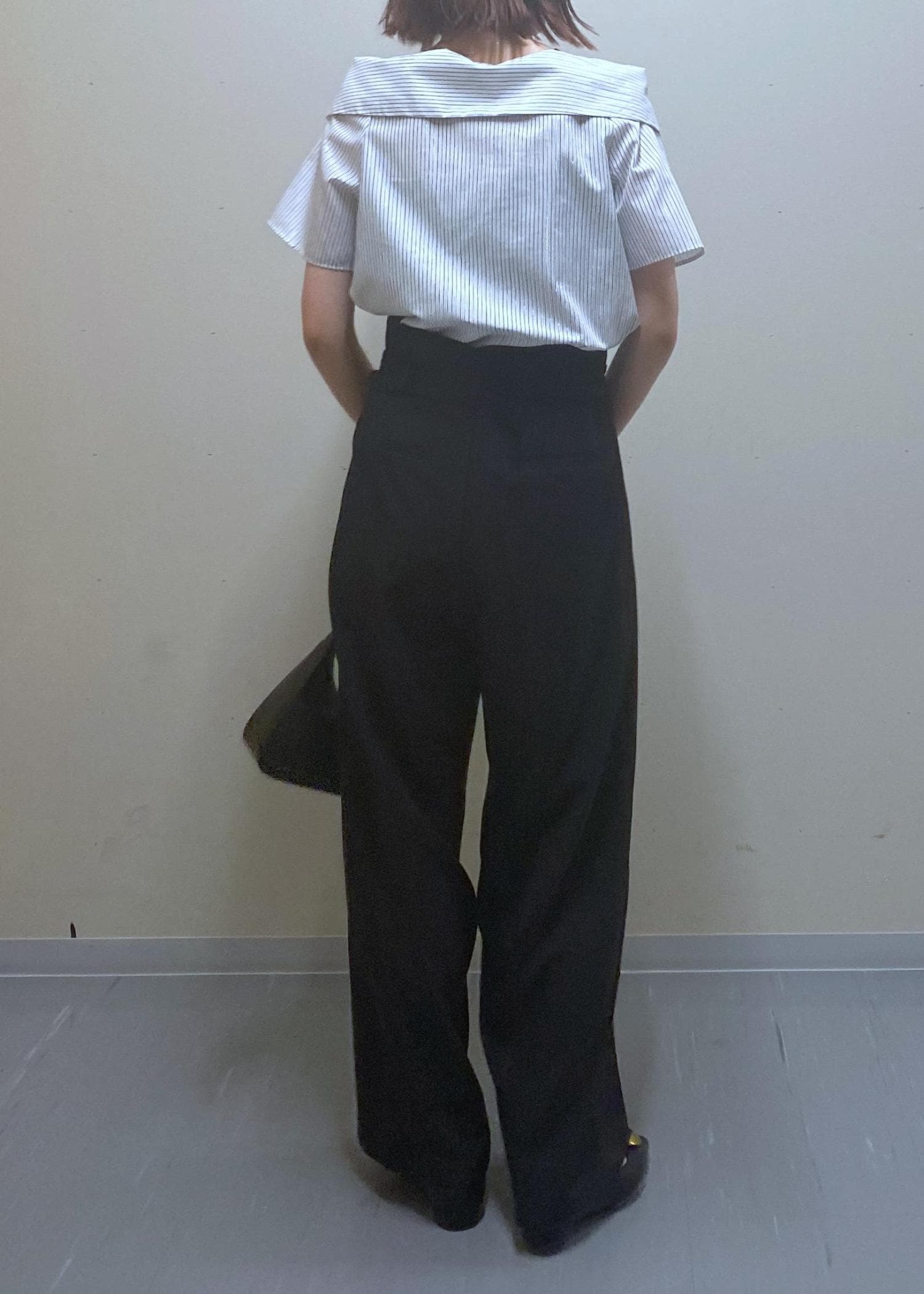 ハイウエストデザインのため、トップスをインすると決まりやすいです◎