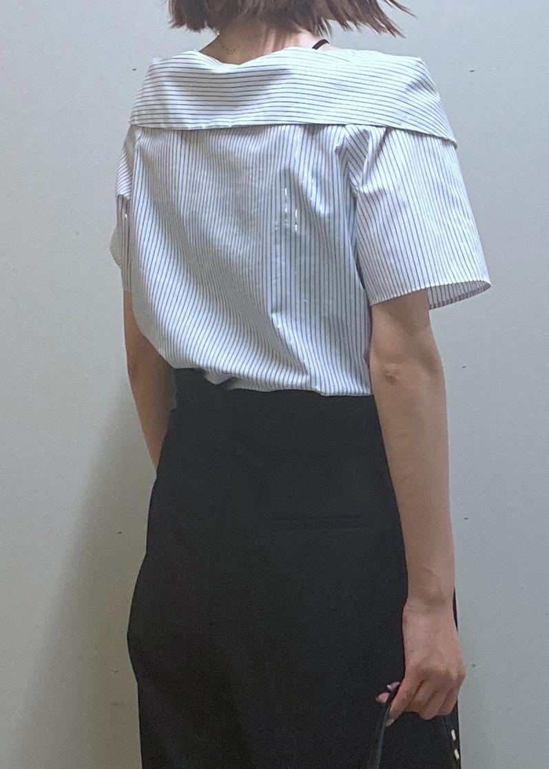 VIS【新色追加】【防シワ】ラメミックスオフショルダー風ストライプシャツホワイト系 / F¥5,489レビューオフショル風のシャツでマチが付いているため、インナーを気にせずに着用できます!