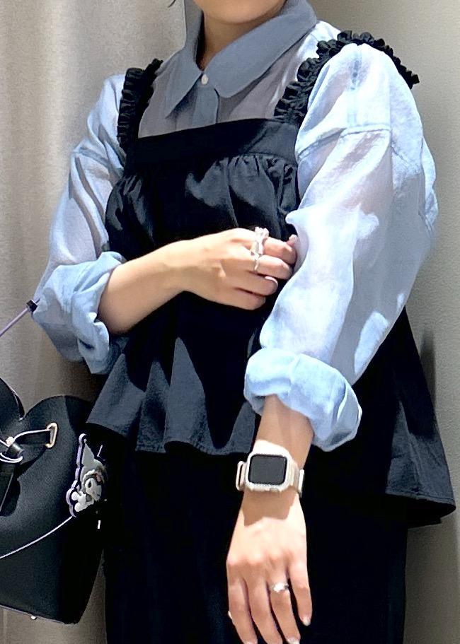 アウトレットVISシアー&チェックショート丈シャツブルー系 / F¥3,293レビュー154センチ着用でゆったりしたシルエットでした◎