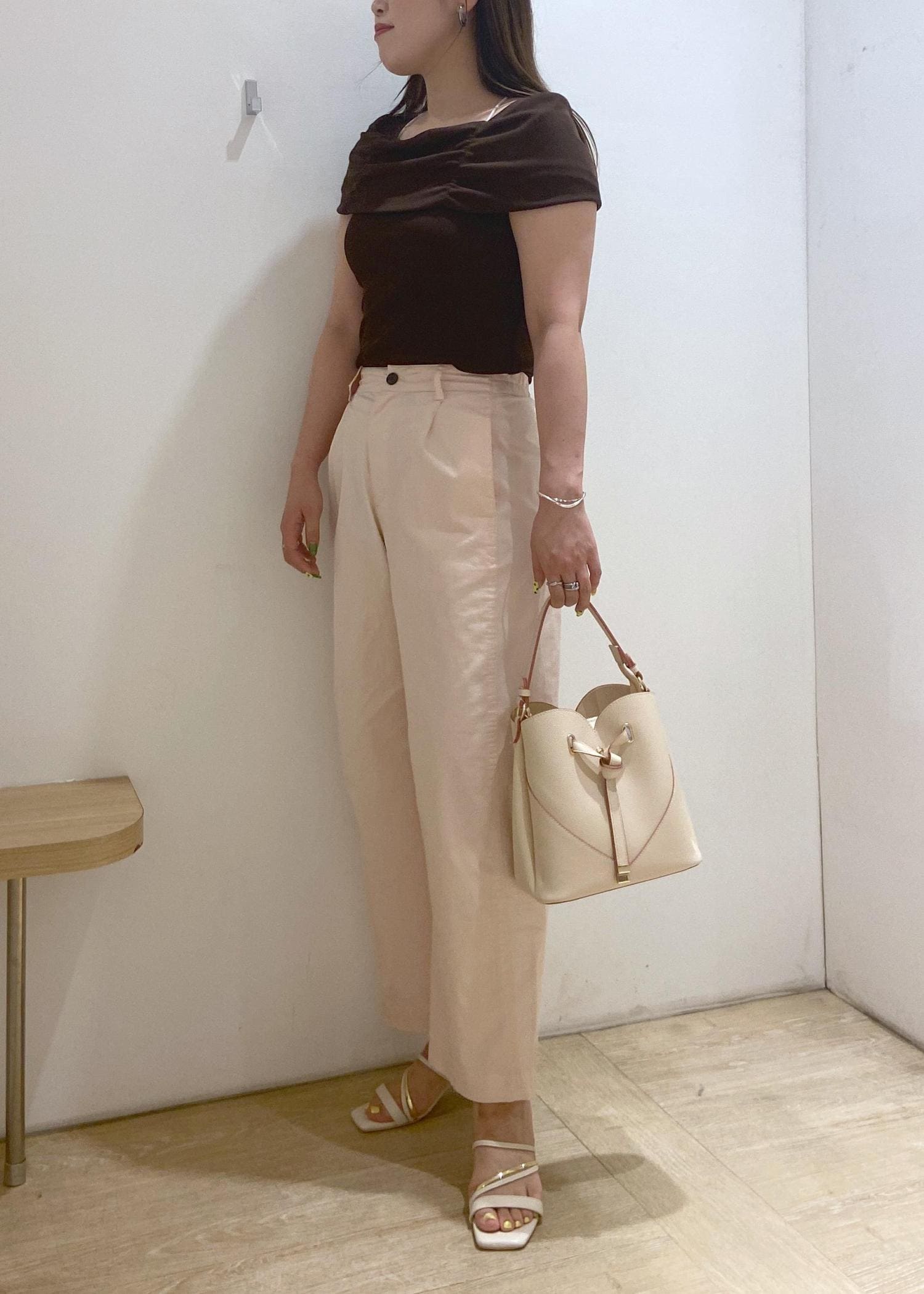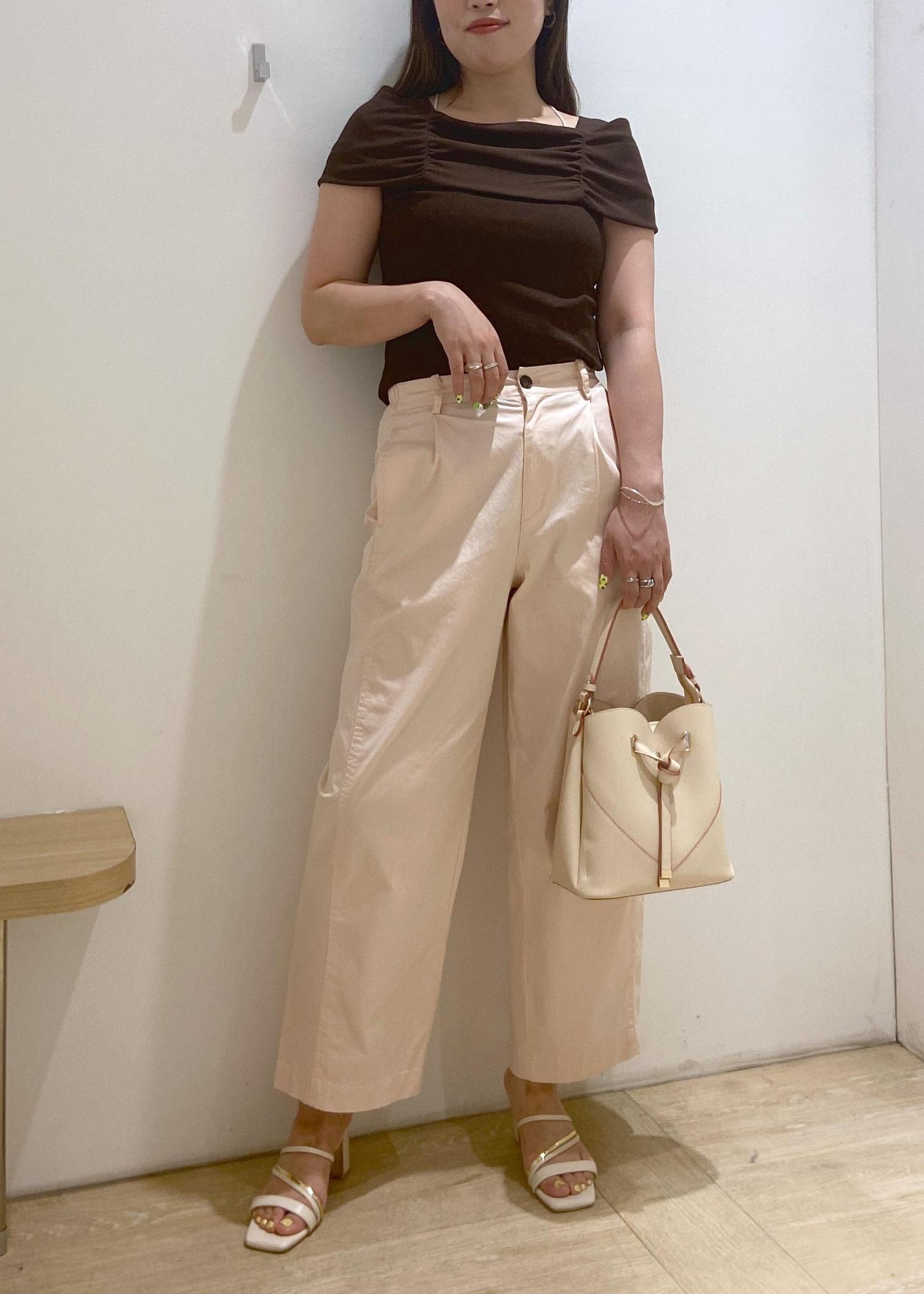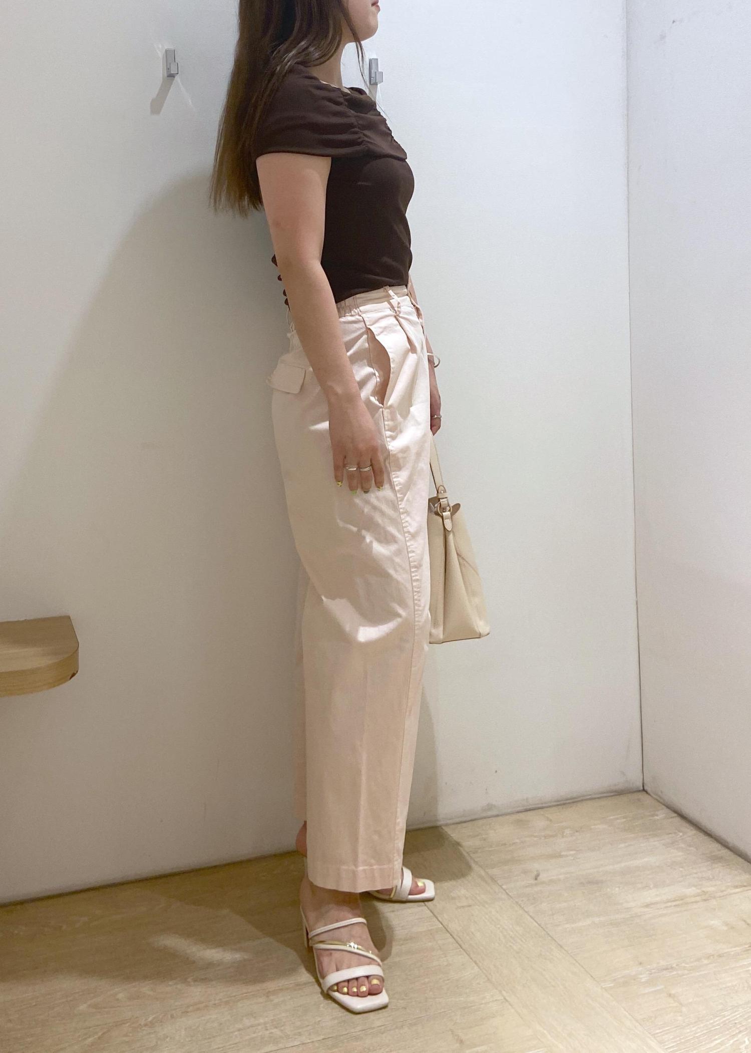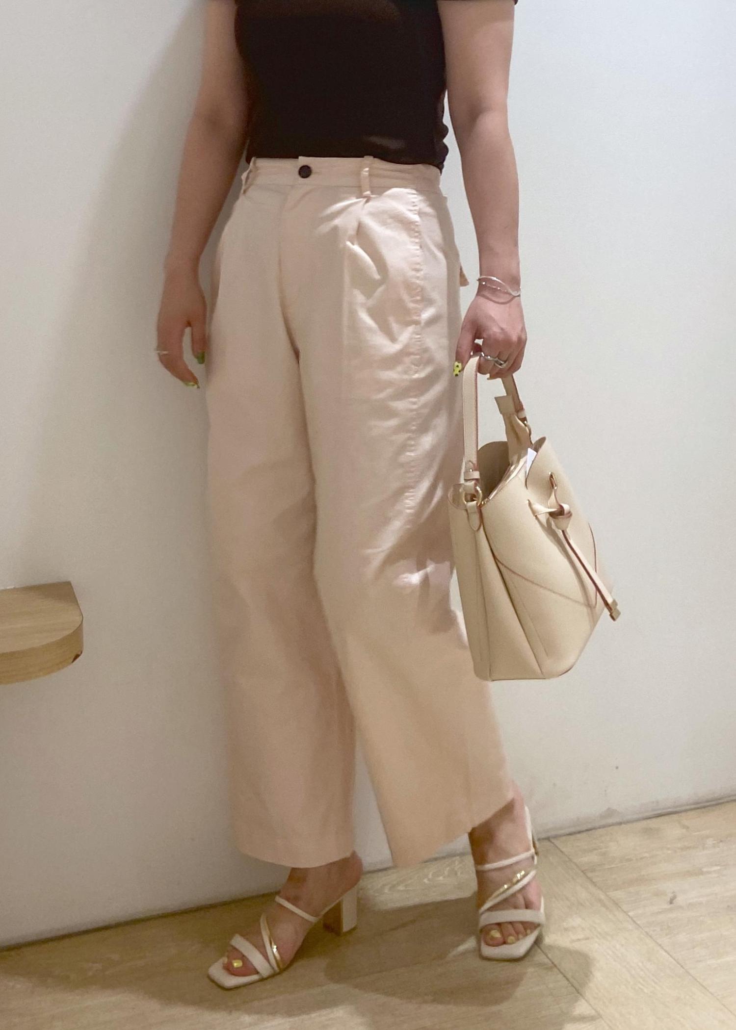 アウトレットVISバレルシルエットコットンパンツピンク / F¥3,460レビューハリのある素材感で、脚のラインを拾いにくいシルエットです。