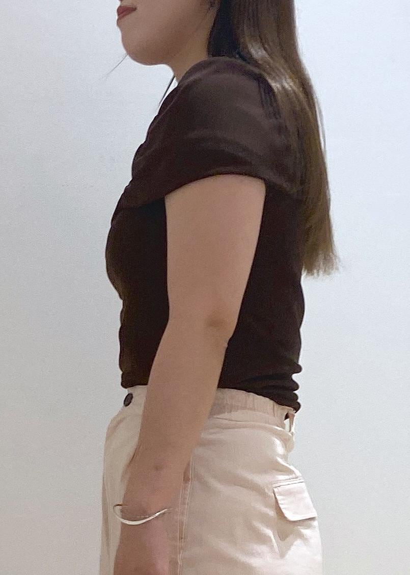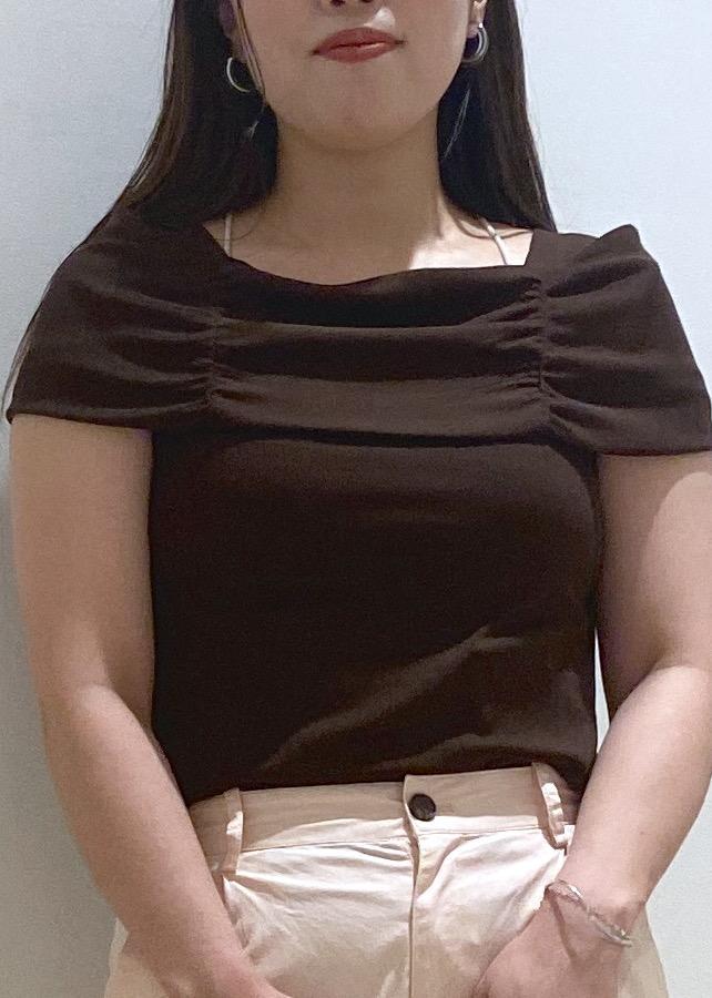 腕を動かしてもオフショルがズレにくく、ストレスフリーな着心地です。 -