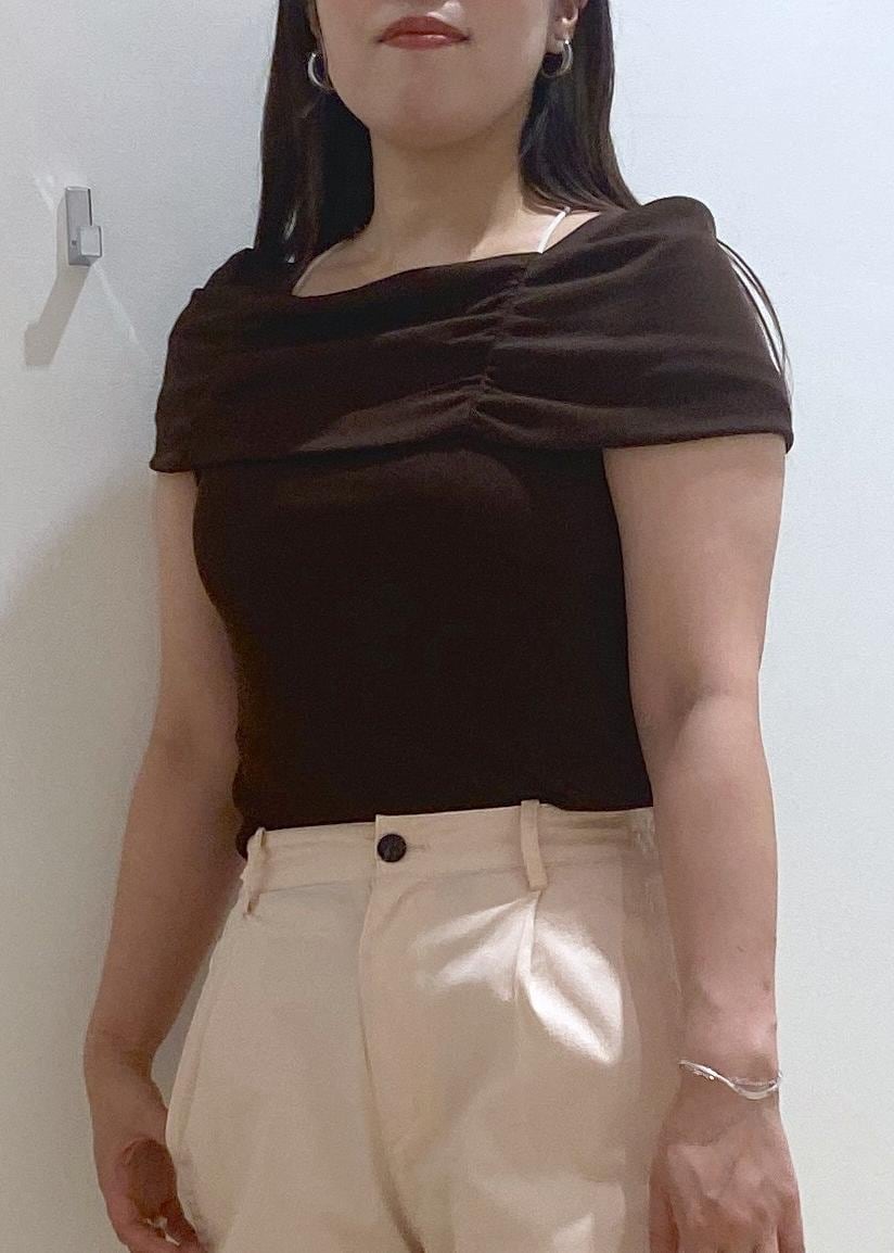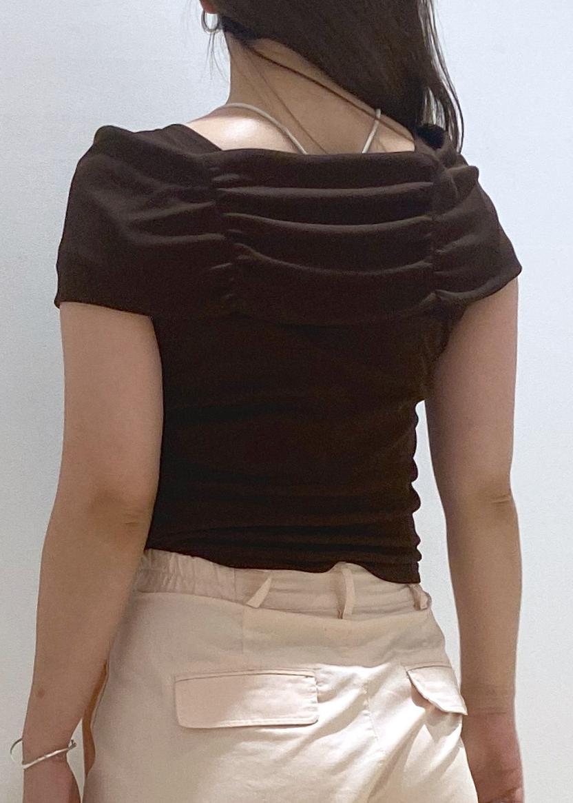 VISオフショルダーテレコカットソープルオーバーダークブラウン / F¥4,389レビュー下着の紐が見えにくいオフショルデザイントップスです。