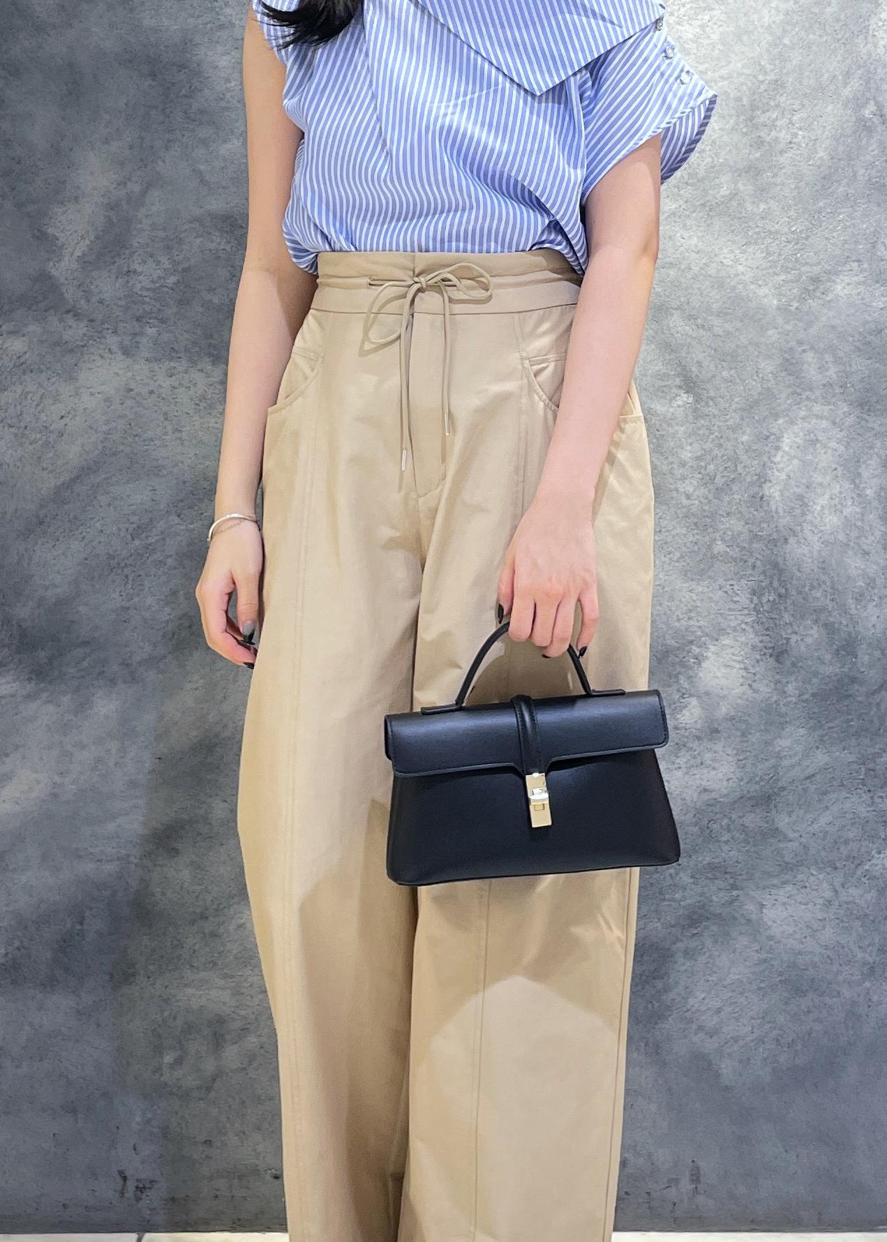 小物は黒で統一し女性らしいコンパクトなアイテムで揃えました。