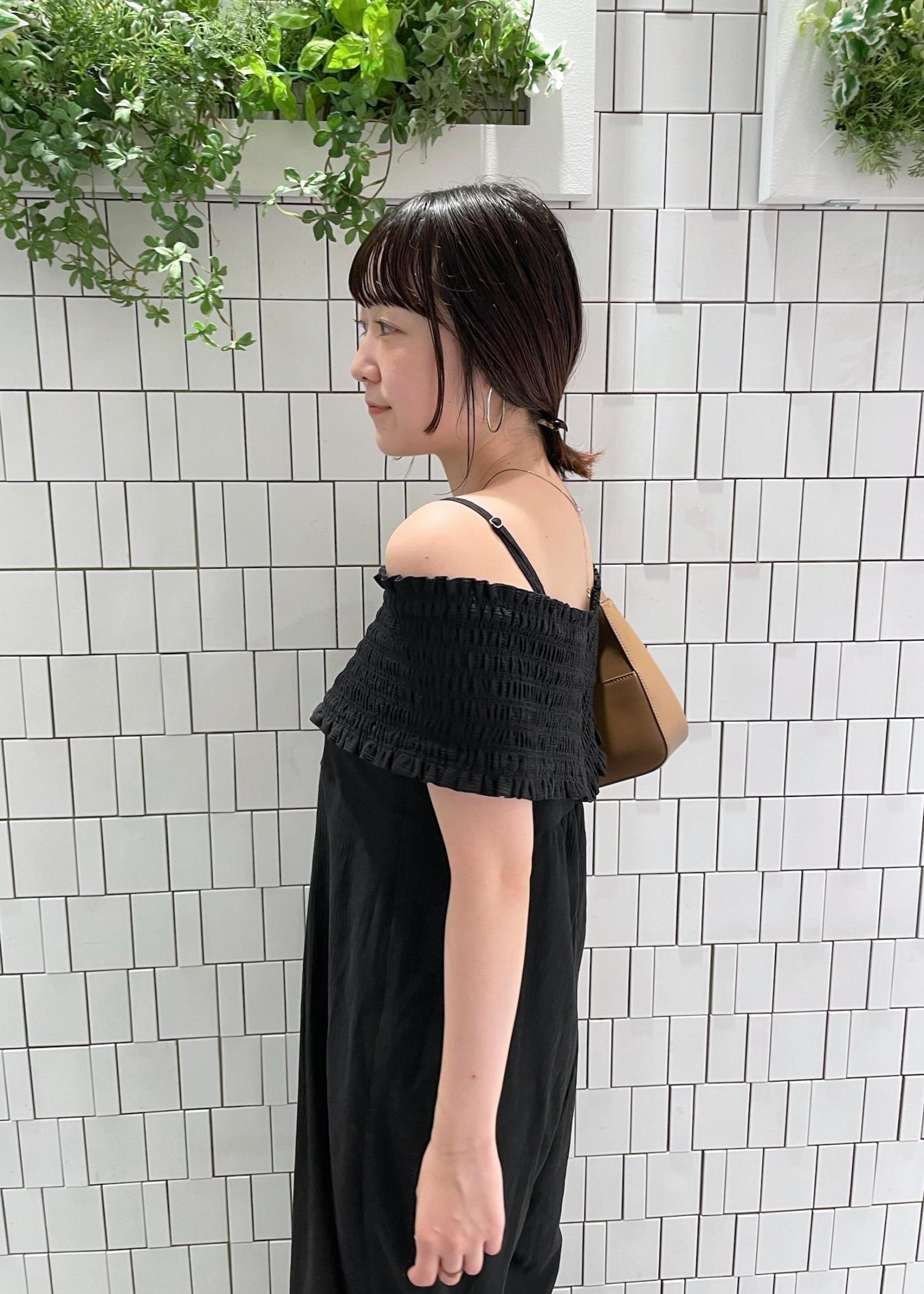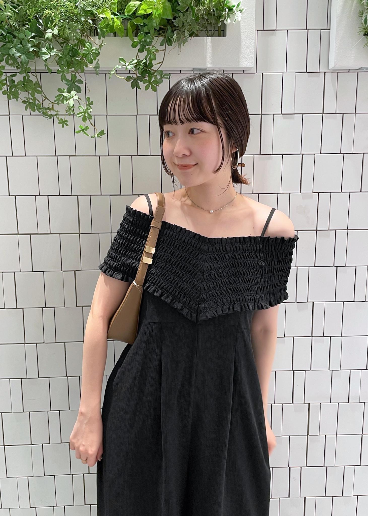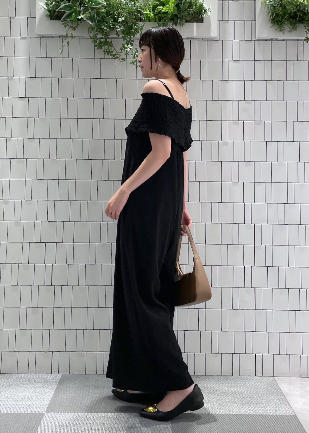 1枚でキマるオールインワン♡体型を拾わないリラックス感ありながら、オフショルにもできてトレンド感もあるデザインです!二の腕カバー&デコルテ見せができるので、骨ストさんは特に上半身の華奢見えが叶います◎