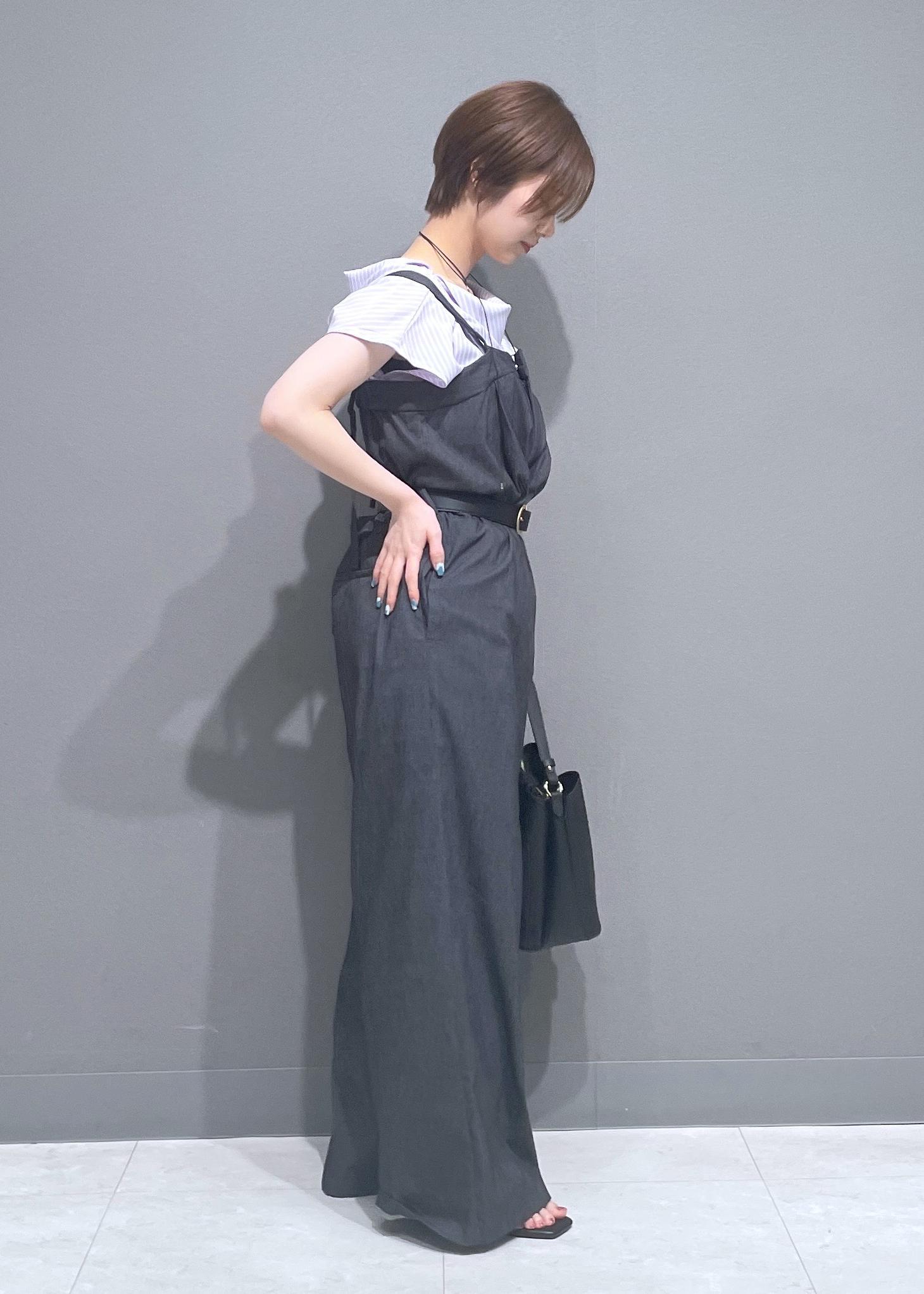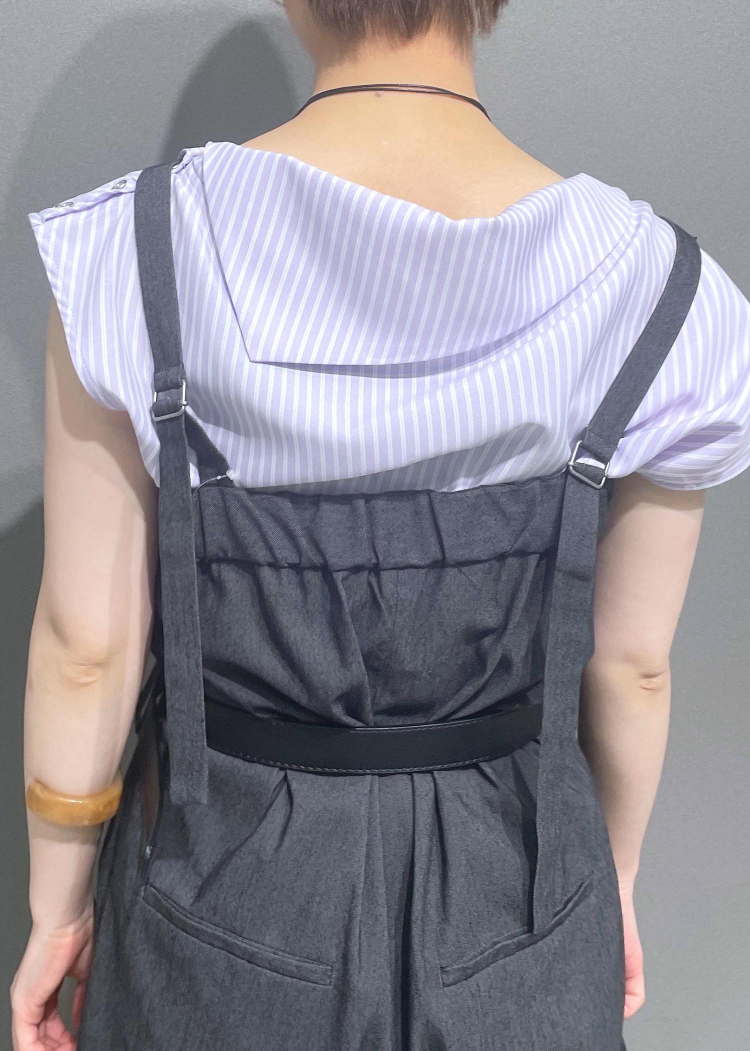 綺麗めなブラウスに敢えてサロペットと合わせて大人カジュアルにしてみました。