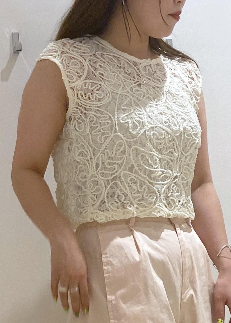 アウトレットVISコードレースシアーノースリーブプルオーバーオフホワイト / F¥4,391レビューアームが開き過ぎないので腕を上げた時も安心です。
