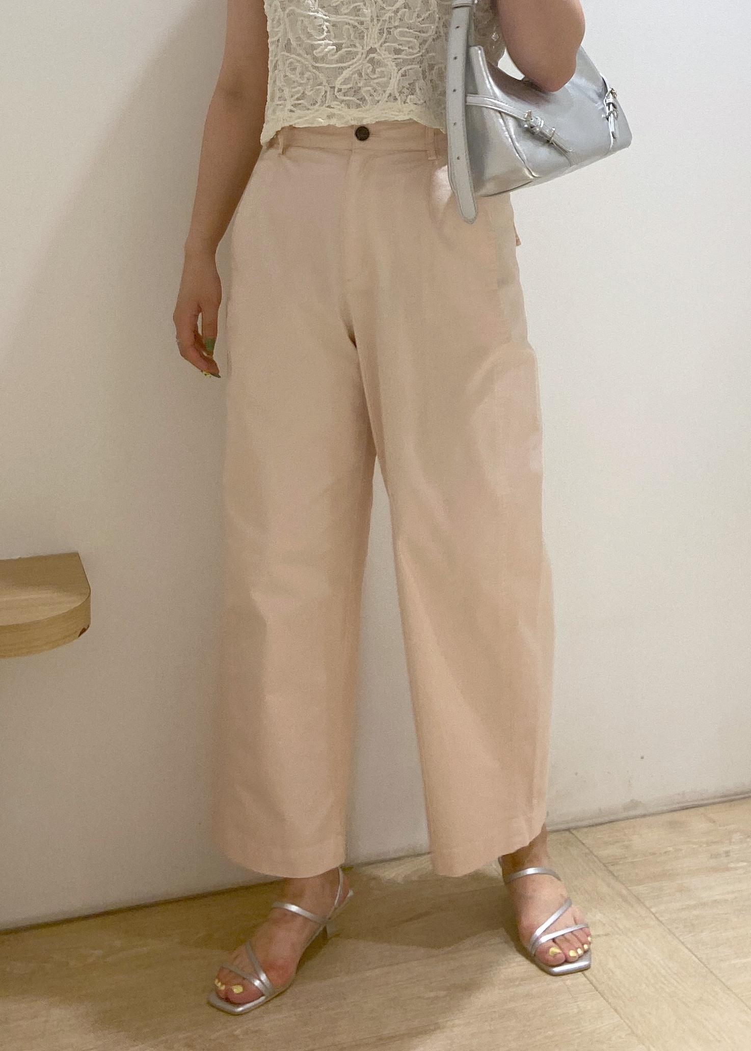 アウトレットVISバレルシルエットコットンパンツピンク / F¥3,460レビューハリのある素材感で、脚のラインを拾いにくいシルエットです。