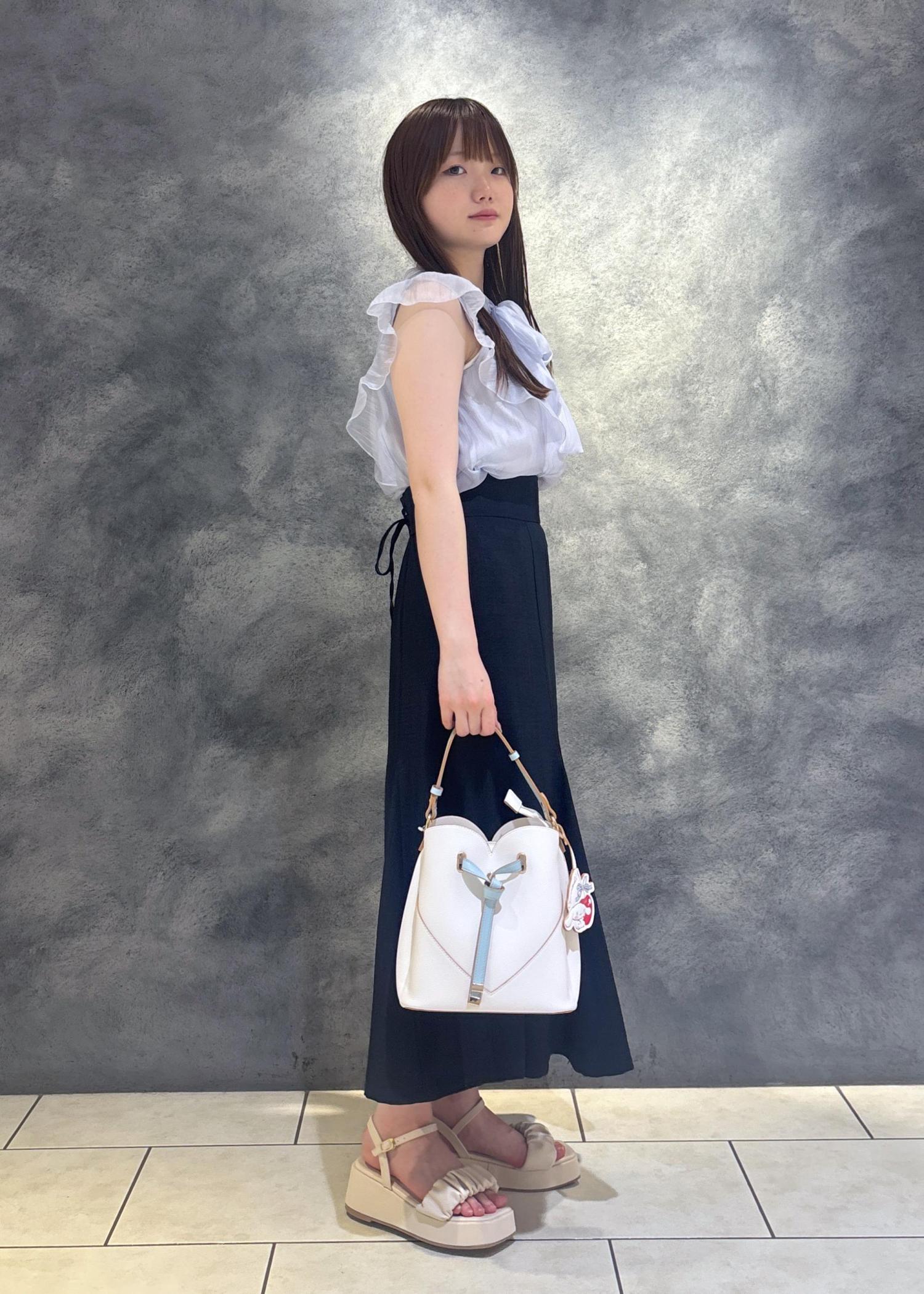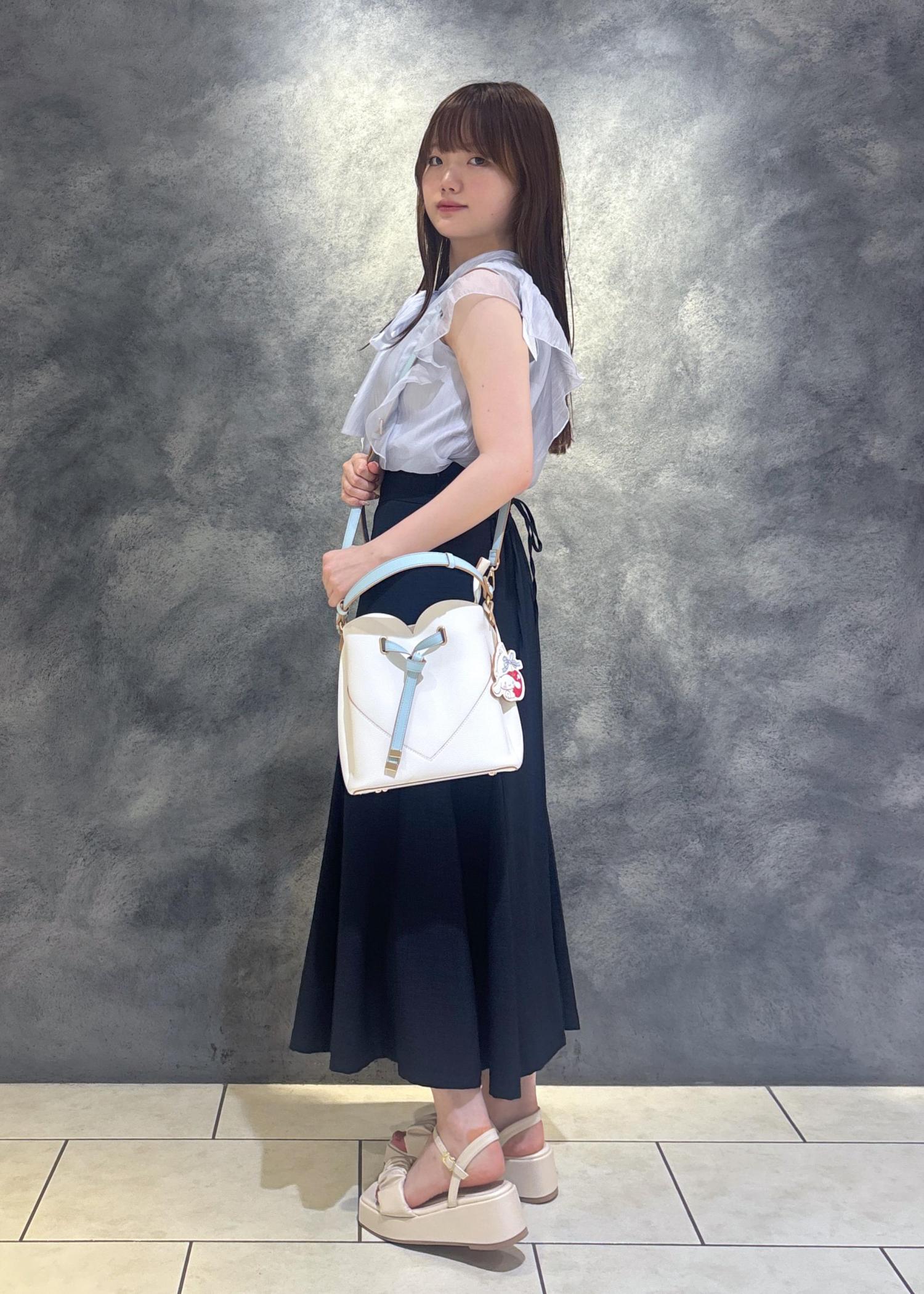 シナモロールのバッグを主役にしたフェミニンコーデを組みました!