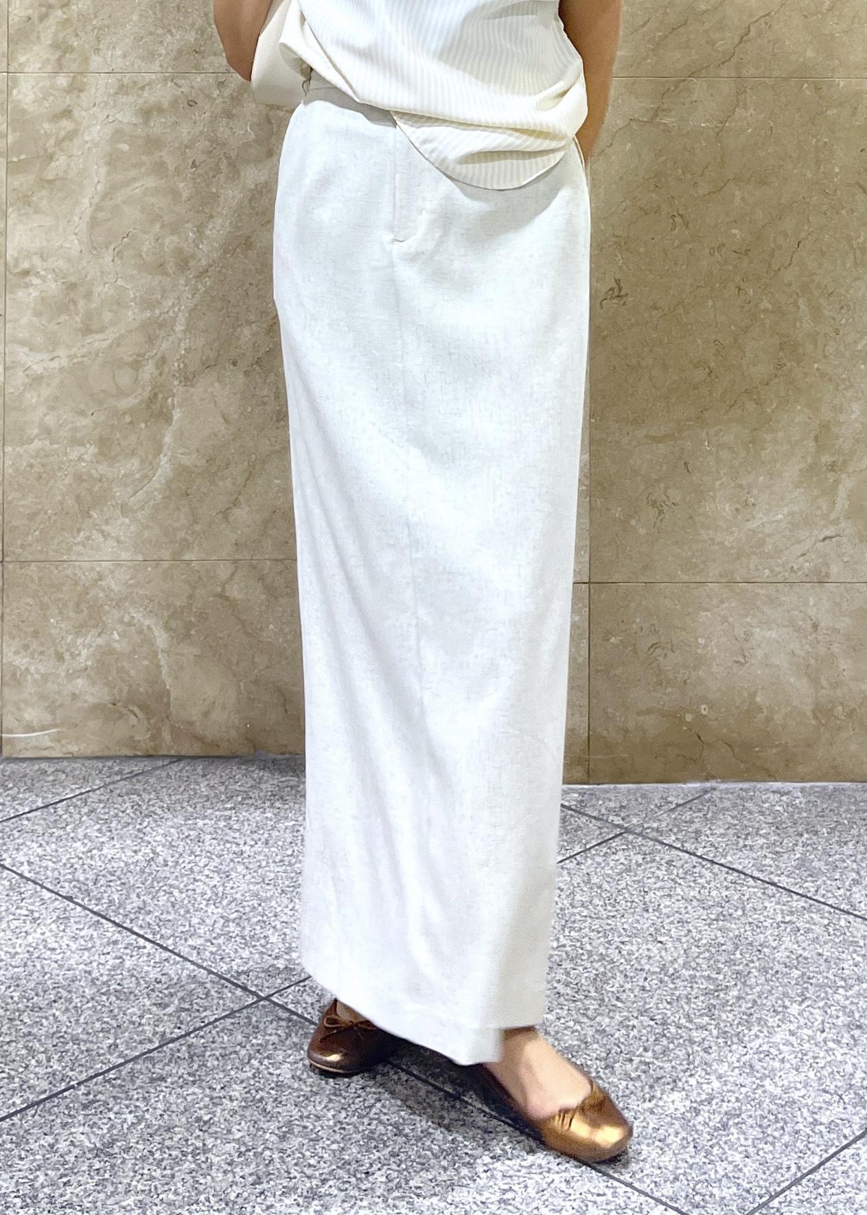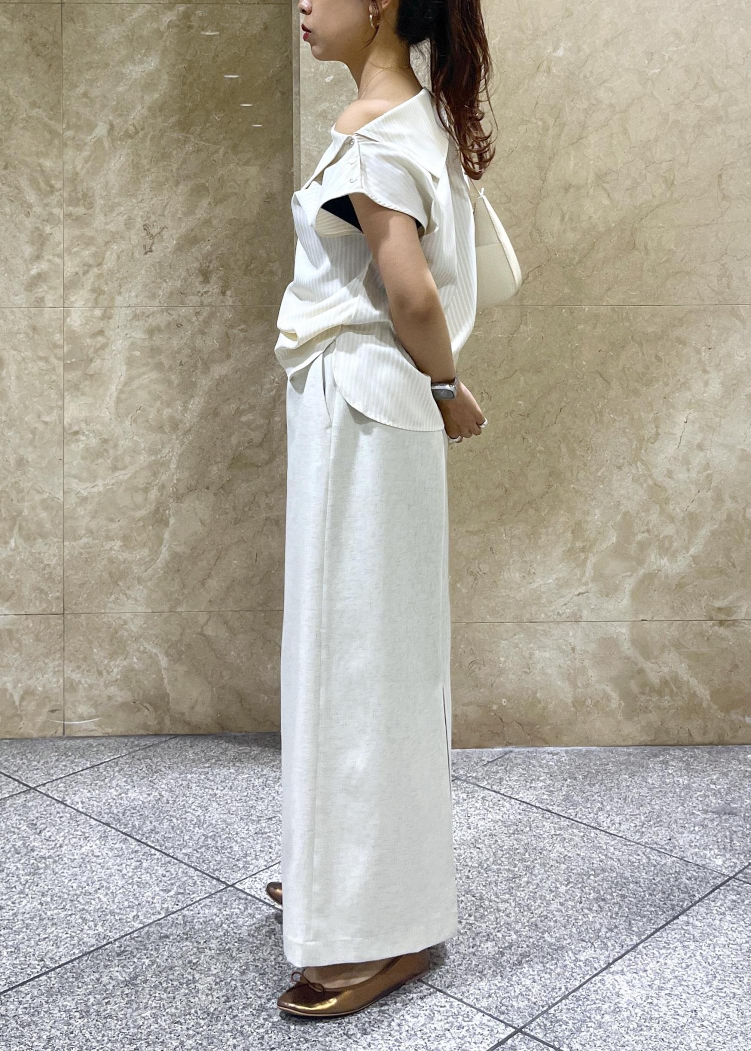 着丈はくるぶしが隠れるぐらいの大好物の長め丈で、後ろのスリットは膝裏あたりまで深めに入っています。夏はサンダルも履くため、脚が見えすぎないこの丈感が嬉しい!!