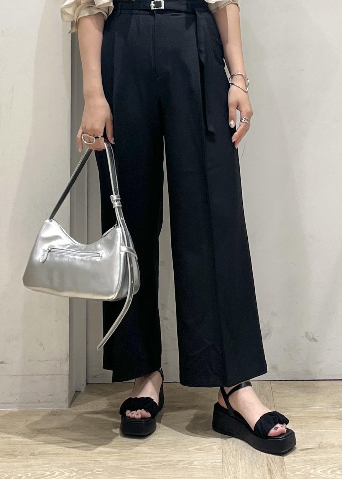 VIS【新色追加】【防シワ/接触冷感】ベルトディテールタックワイドスラックスパンツブラック / M¥6,589レビューハイウェストなので脚長効果もバッチリ!