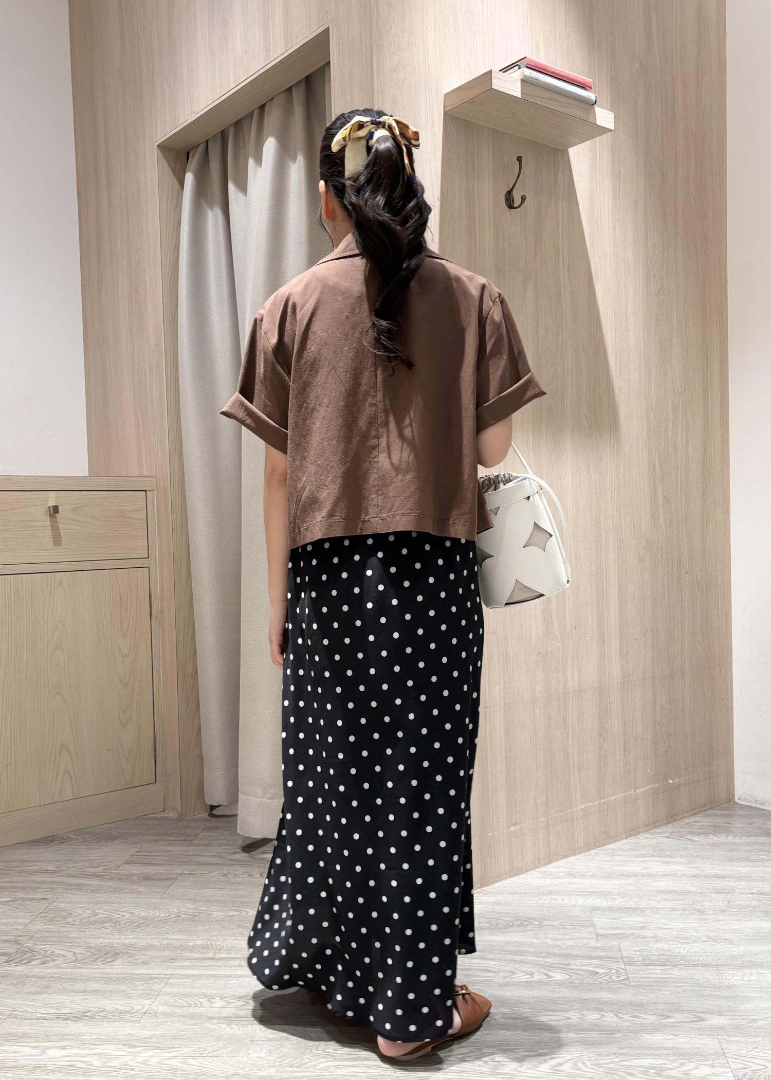 アウトレットVIS開襟リネンライクシャツブラウン / F¥3,511レビュー袖は五分丈くらいの長さになってます。