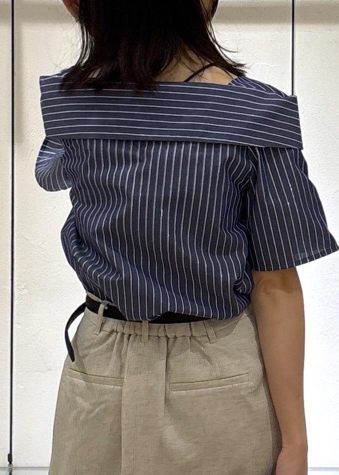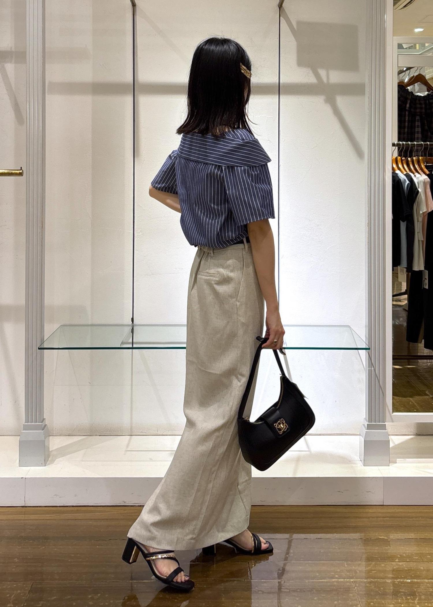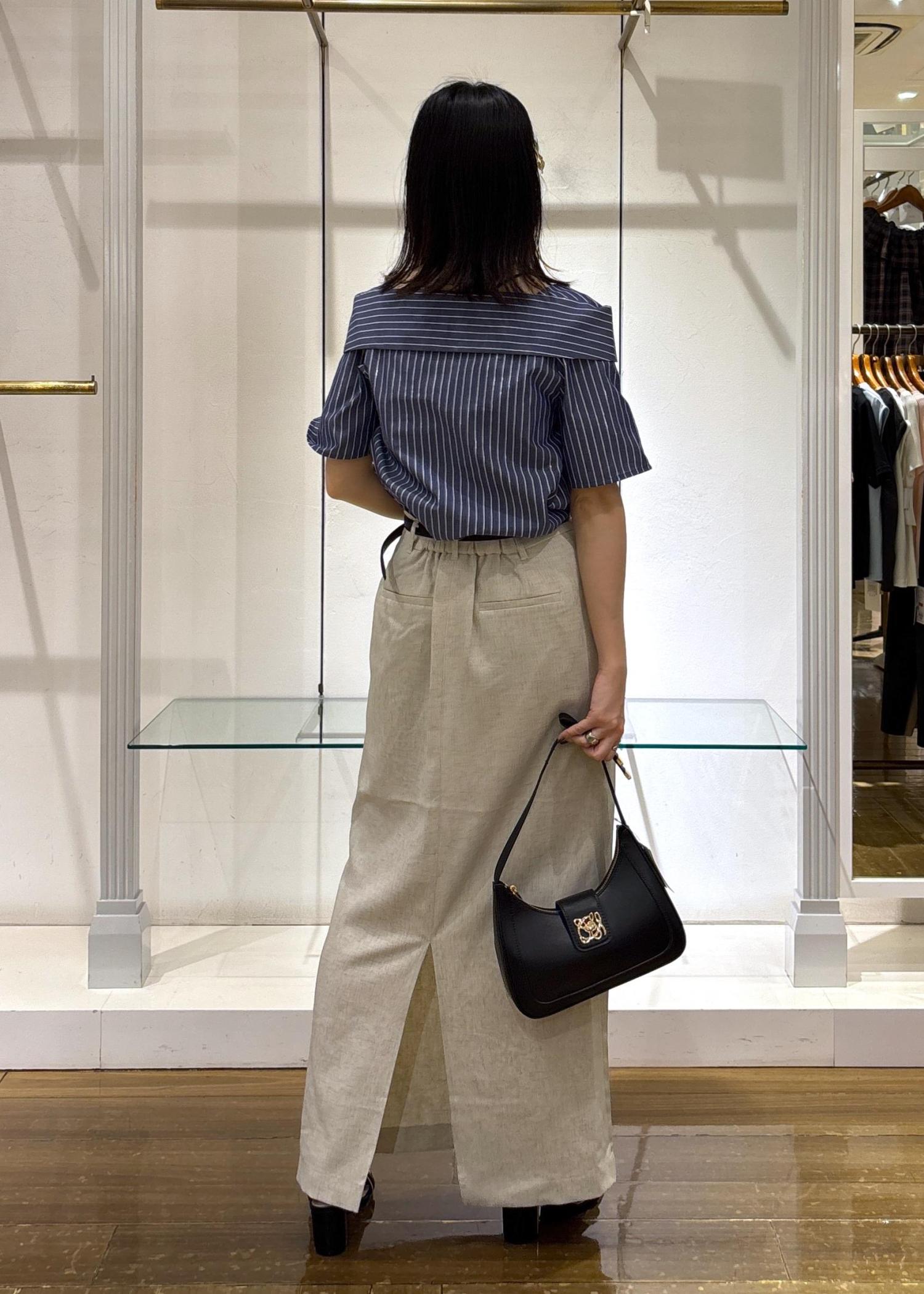 デザイン性のあるトップスなので、ボトムはスッキリスカートを合わせスタイリッシュな印象に✨