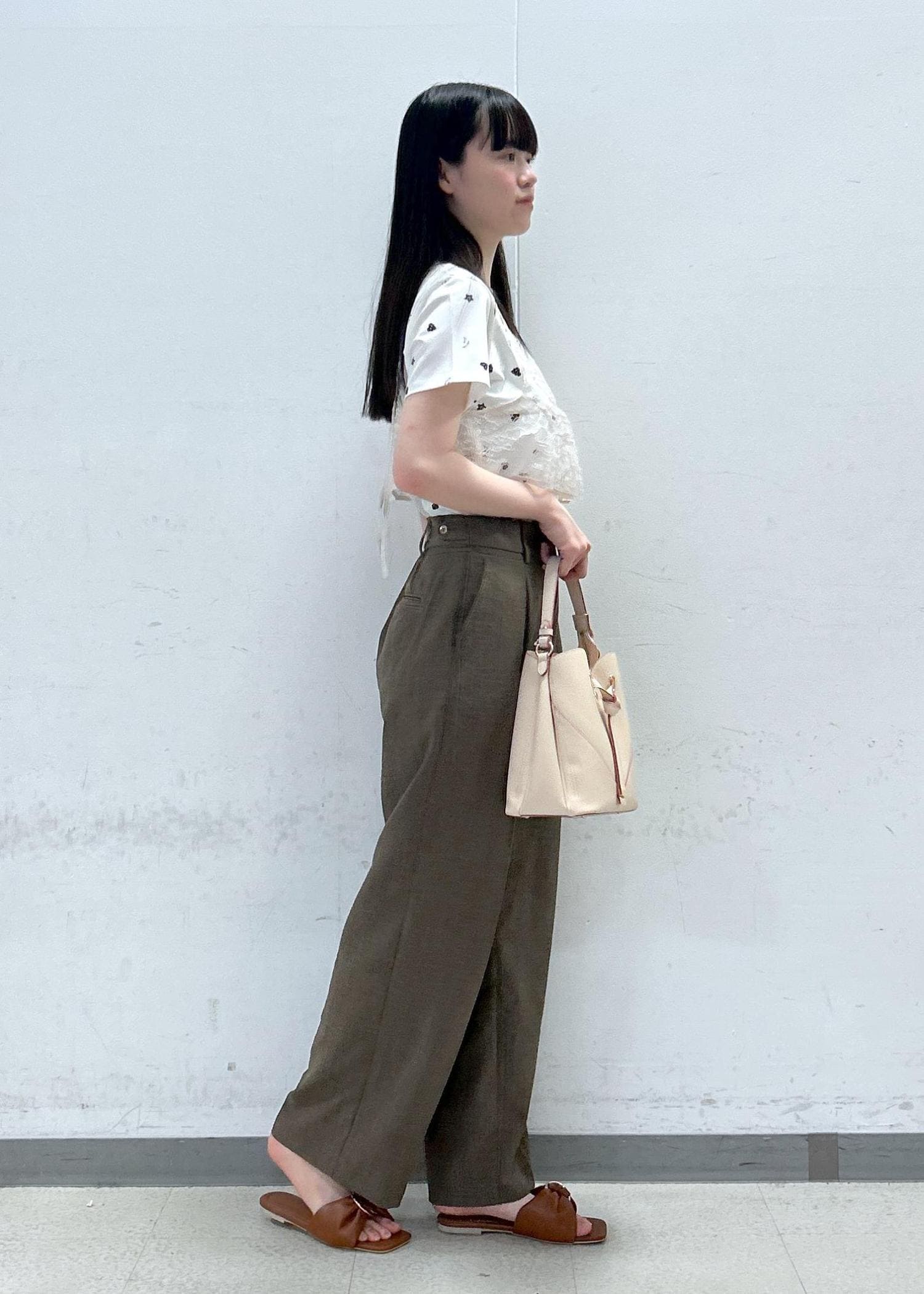 接触冷感のため肌触りも良く、サラッとした着用感です。身長166cmでくるぶしが隠れる丈感です。股上が深めで、ヒップをスッキリ見せてくれます!