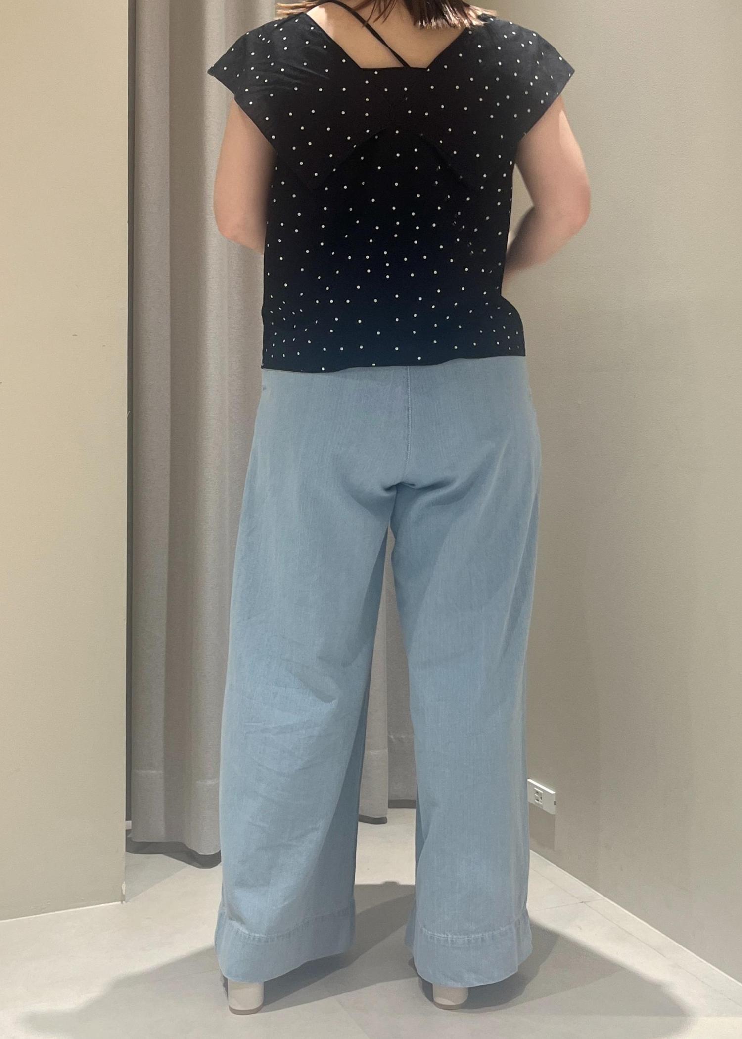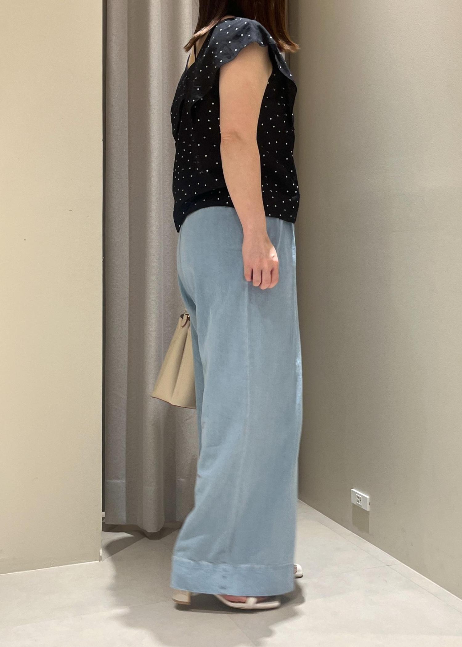 152センチで、そのままだとフラットな靴だと裾がついてしまいました。裾はステッチ分折り返しても可愛く履けそうです。