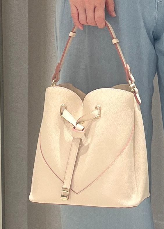 ベージュのハートカットバッグで少し甘さを足してみました。