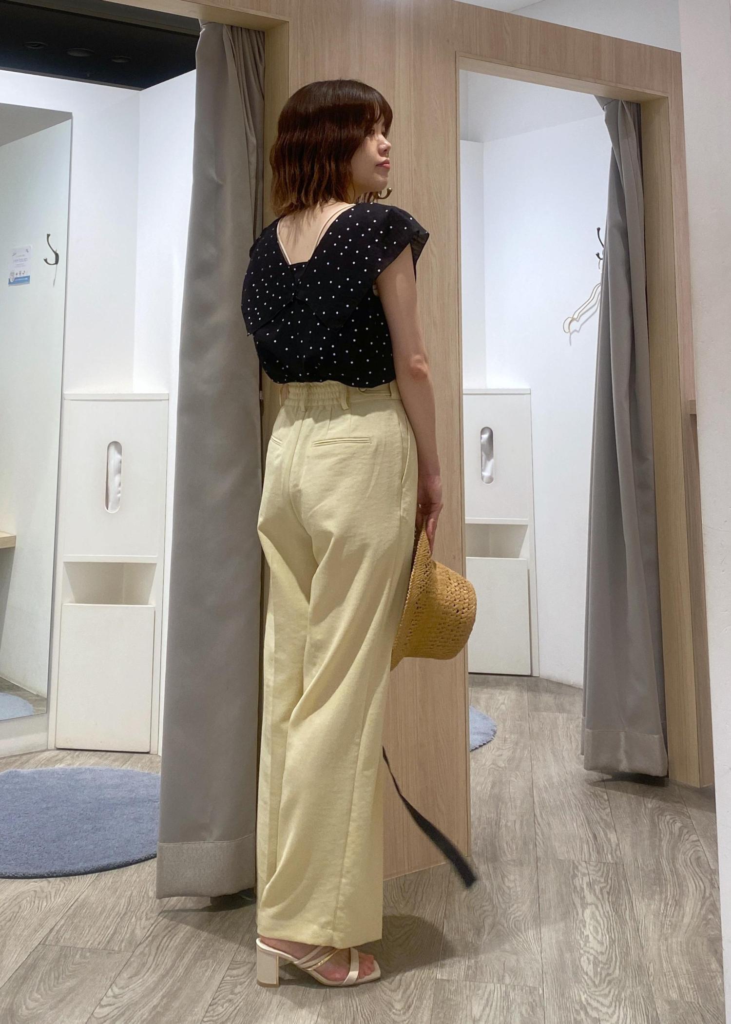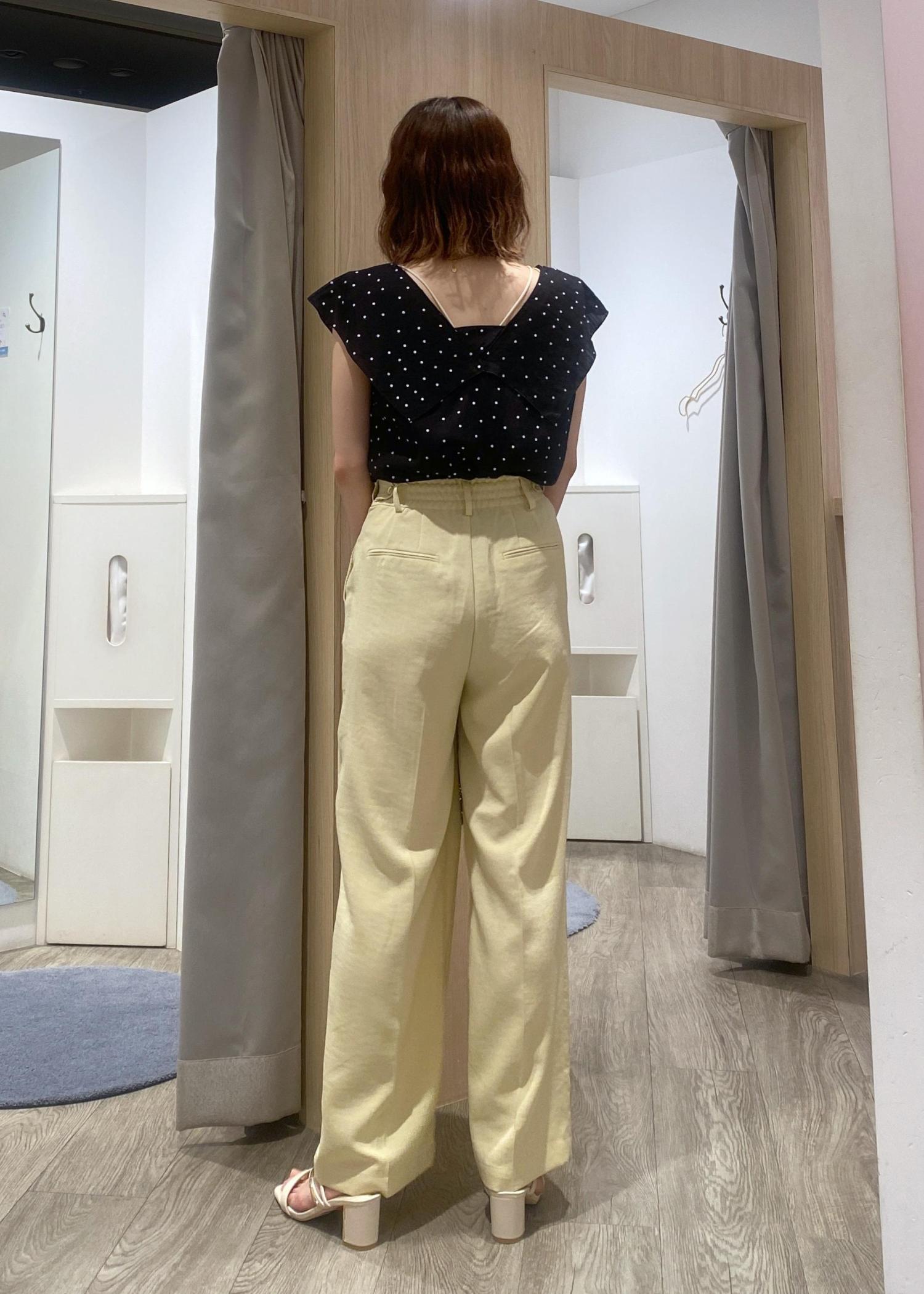 VIS【美easy】ワンタックワイドスラックスパンツ/洗えるイエロー系 / M¥5,489レビュー161cm/Mサイズ着用でくるぶしがしっかり隠れる長さでした。